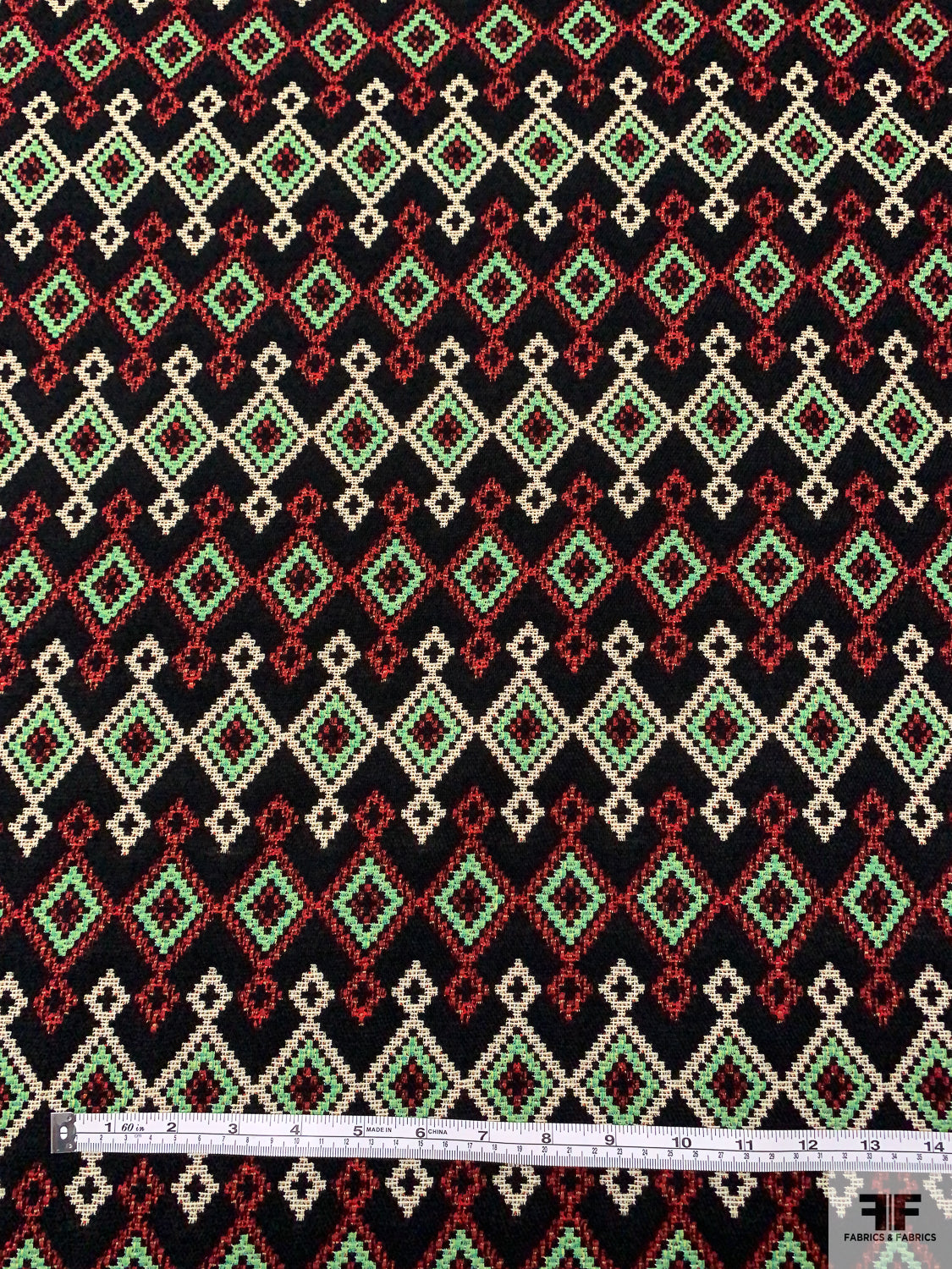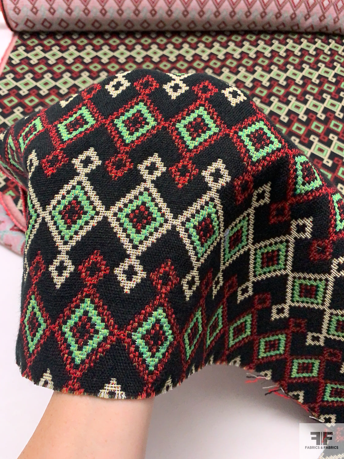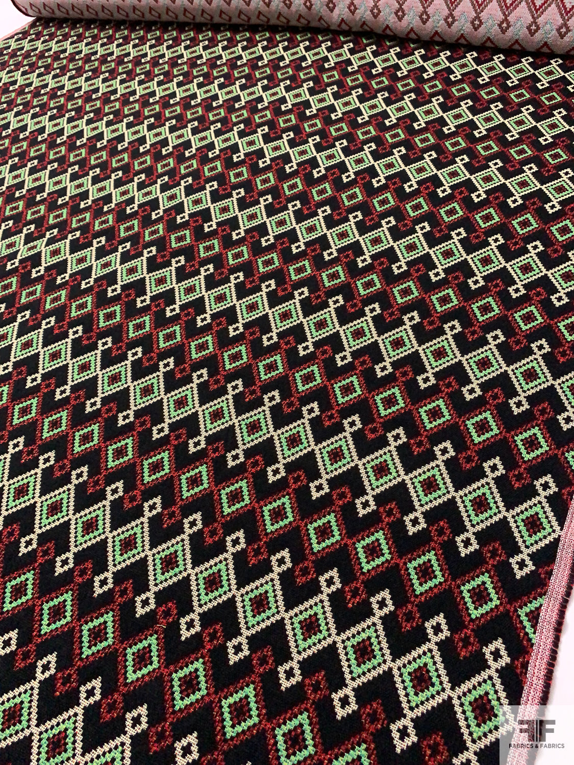 Italian Ethno-Geometric Woven Jacket Weight - Black / Green / Red / White
