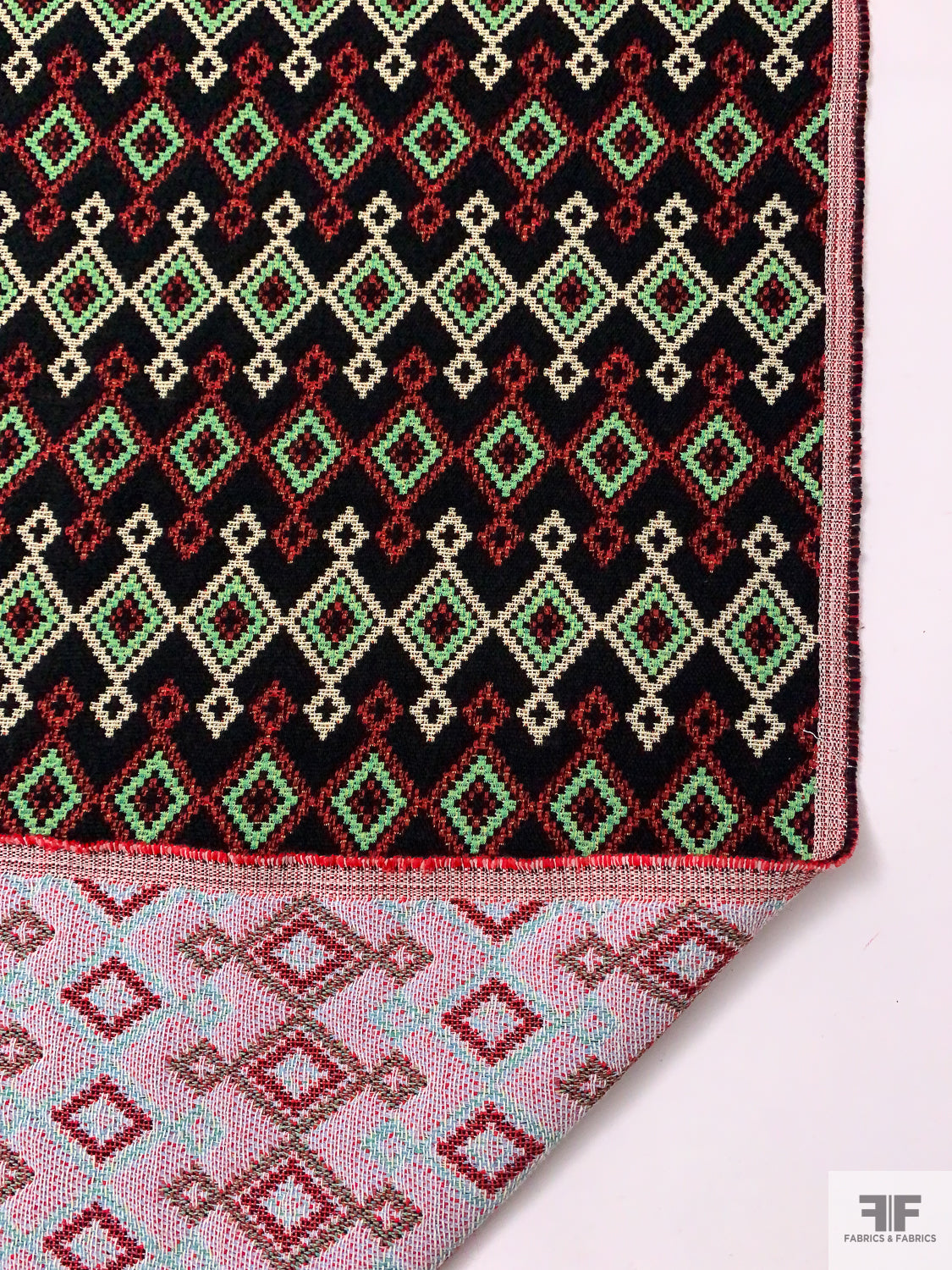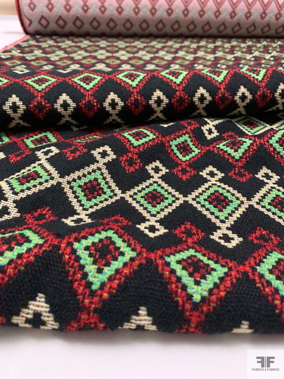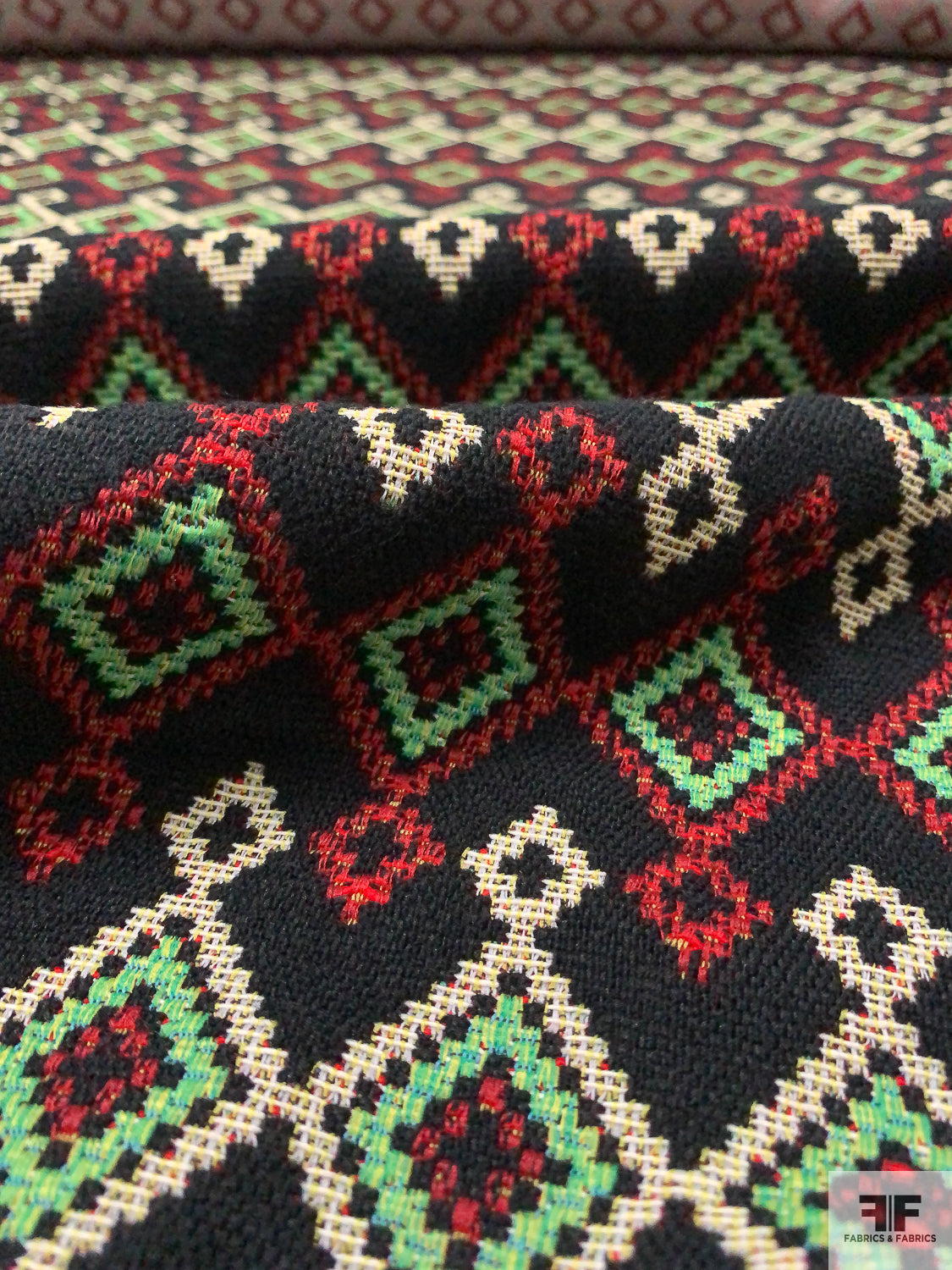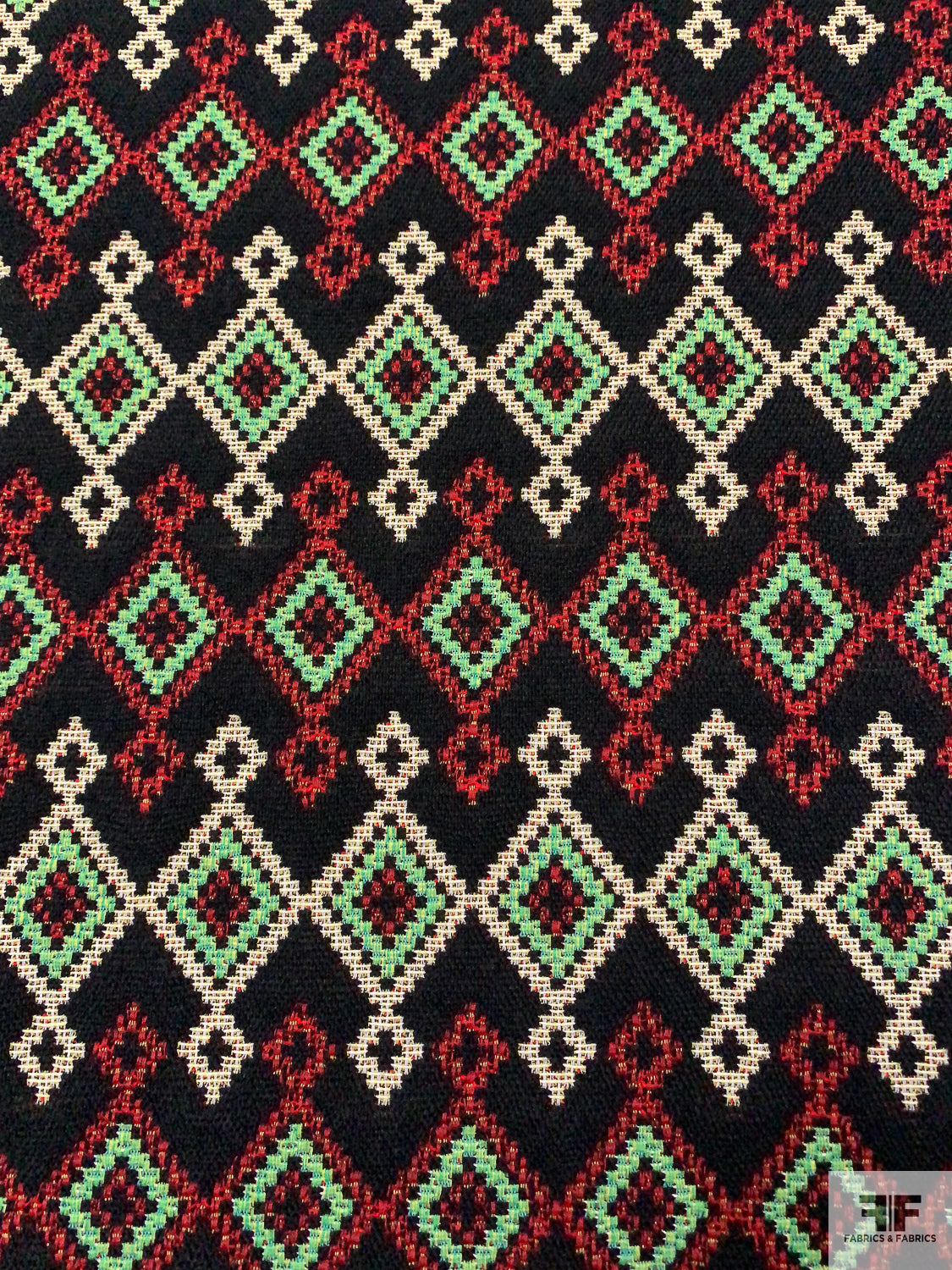 Italian Ethno-Geometric Woven Jacket Weight - Black / Green / Red / White