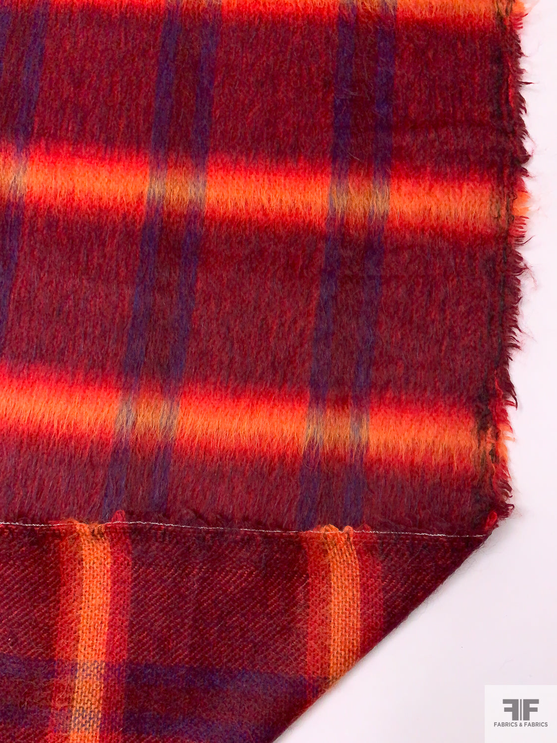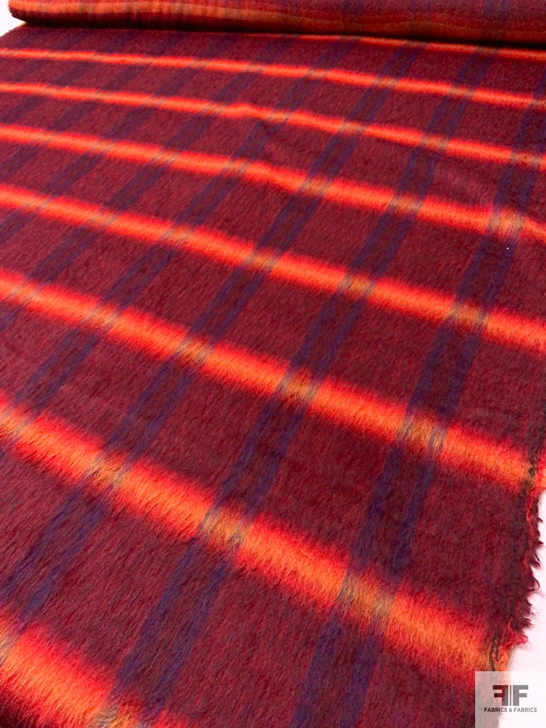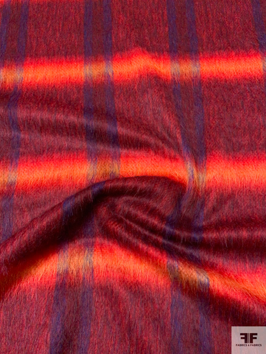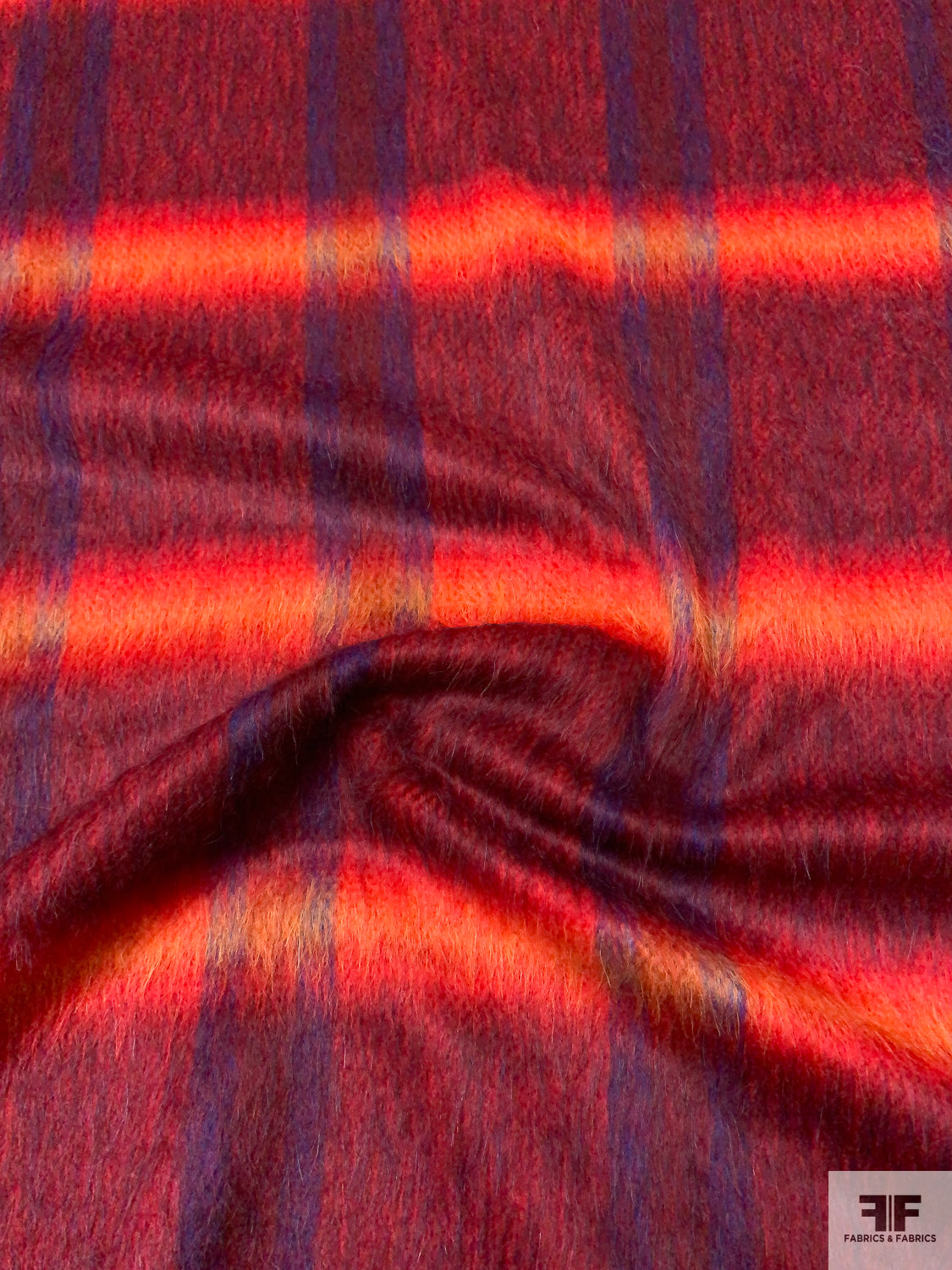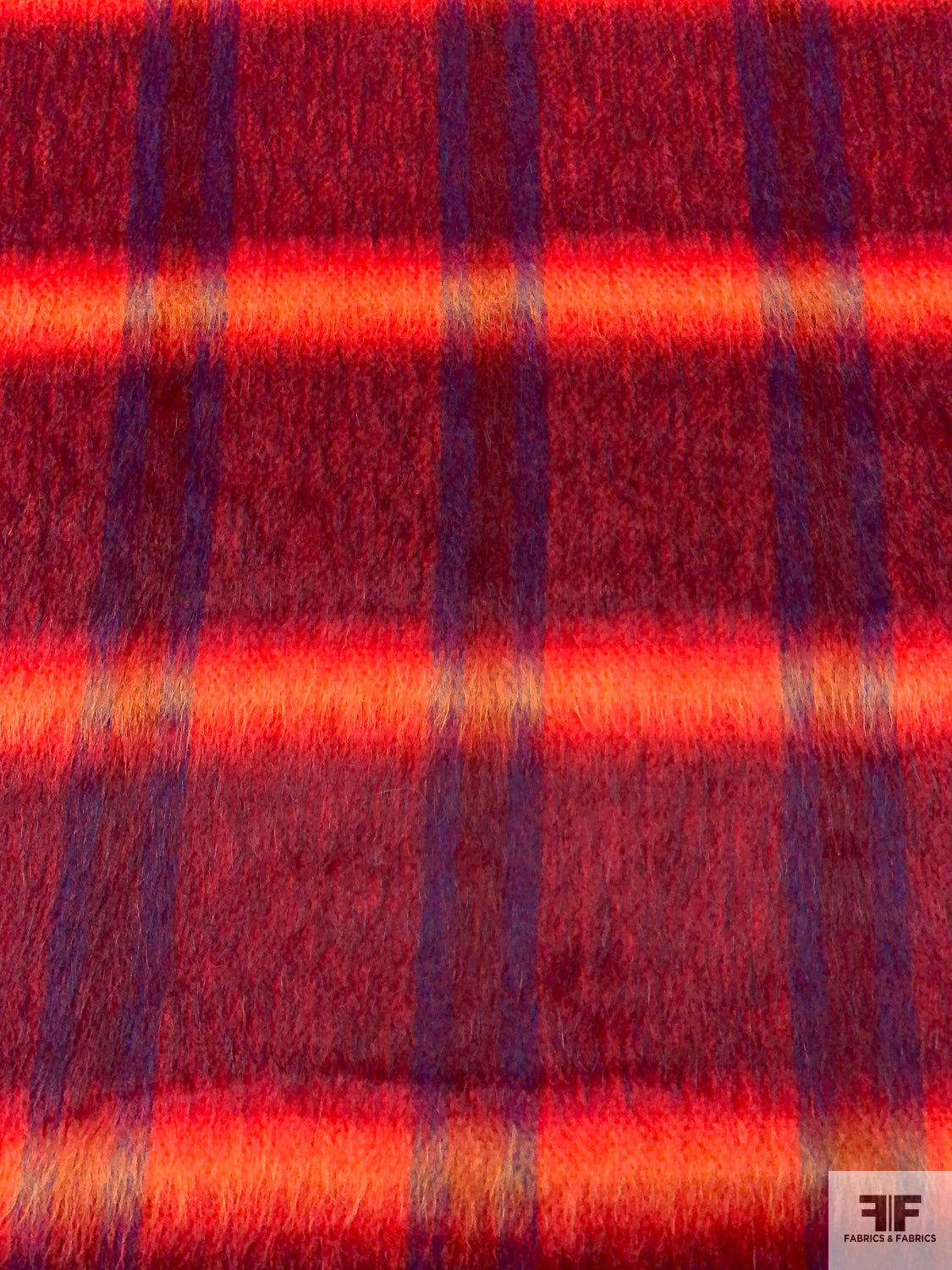 Italian Plaid Brushed Wool-Blend Coating - Red / Fire Orange / Purple