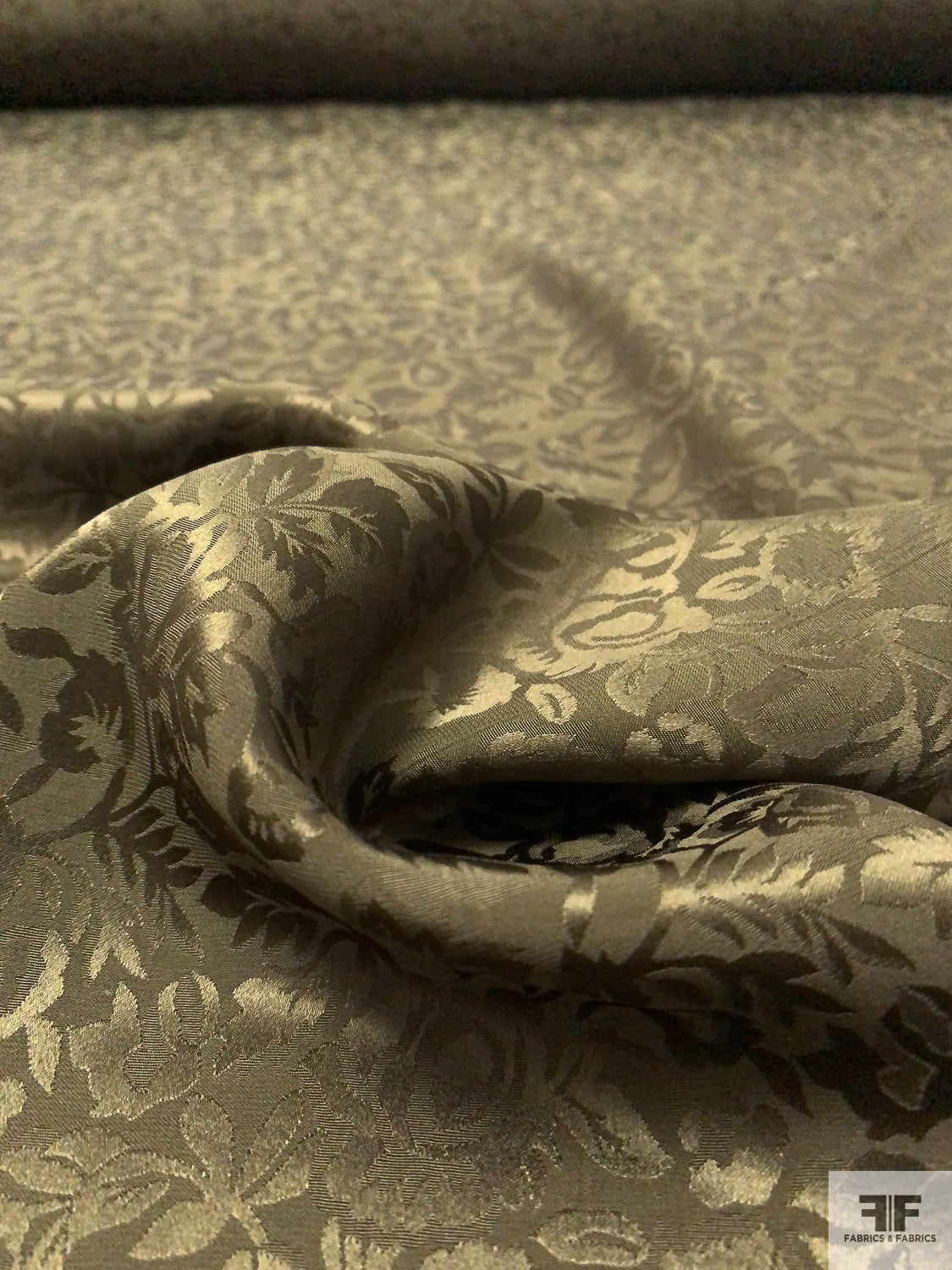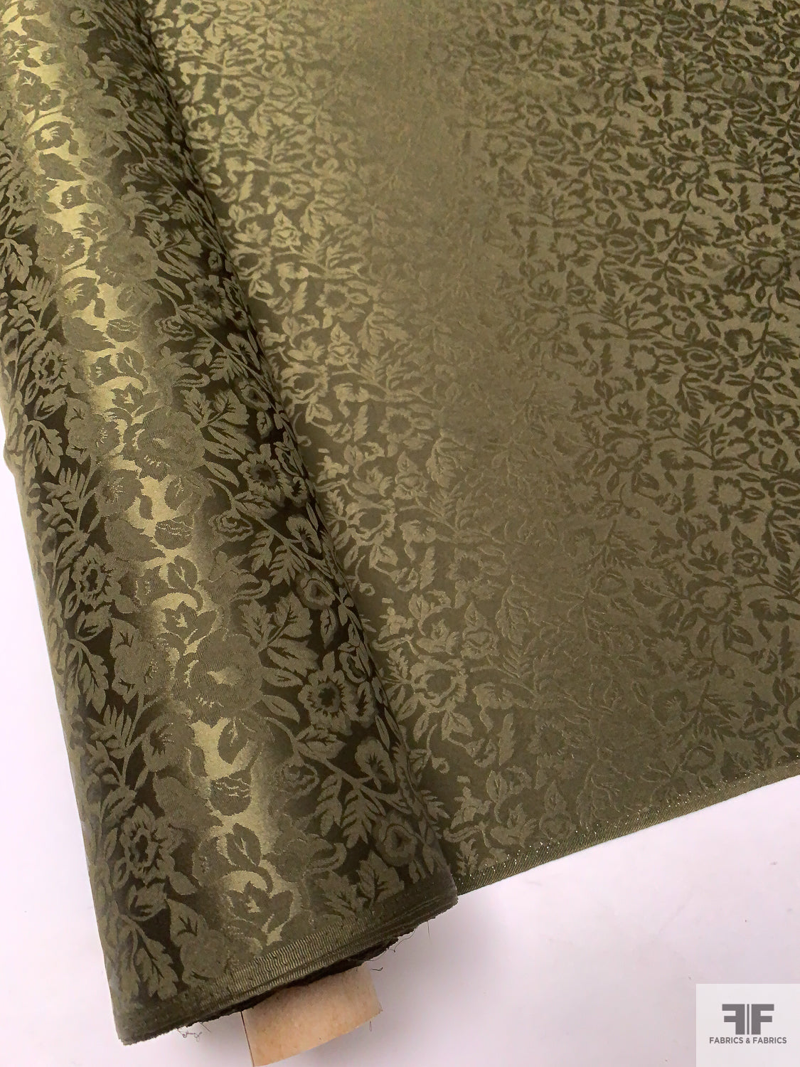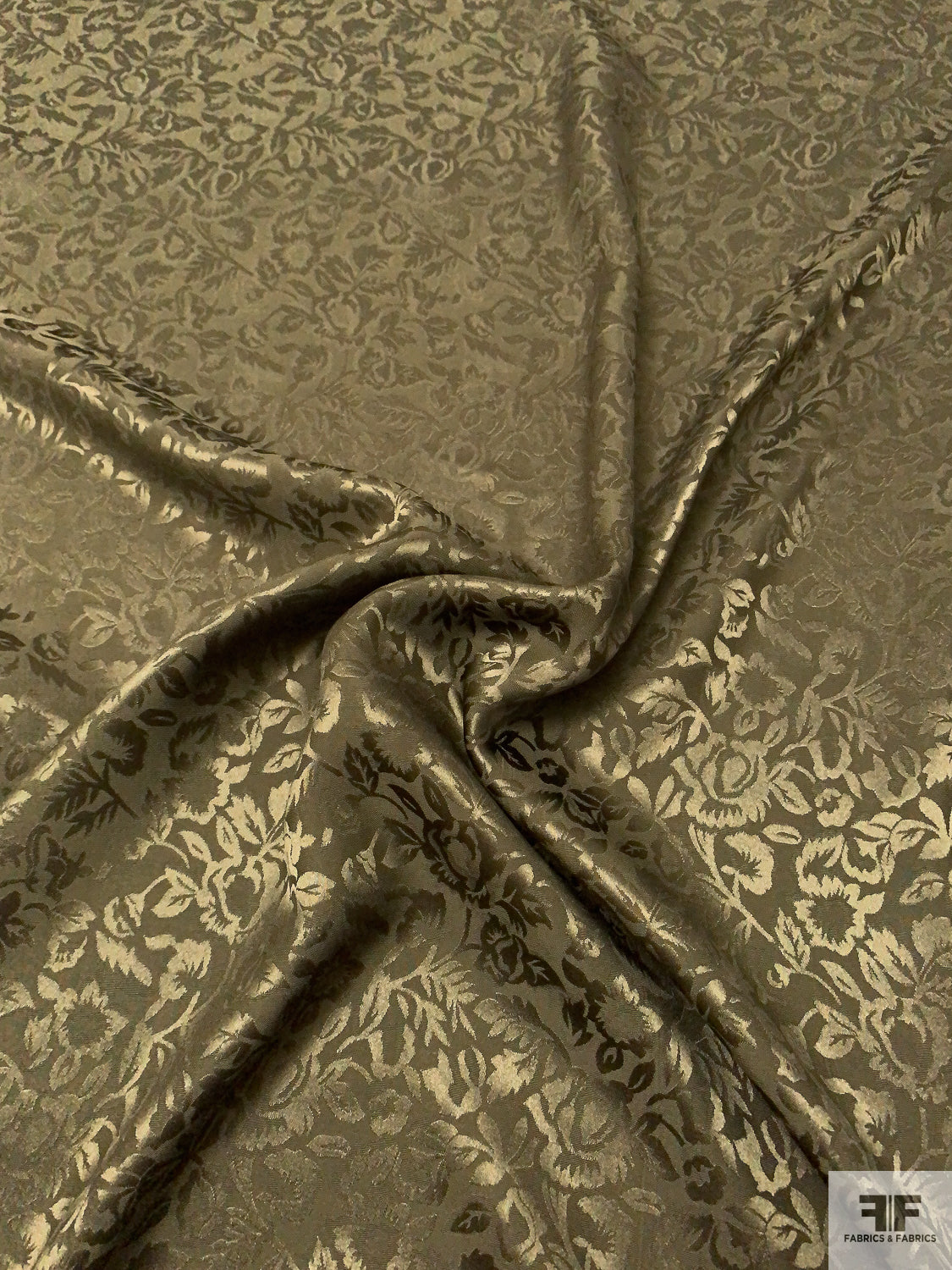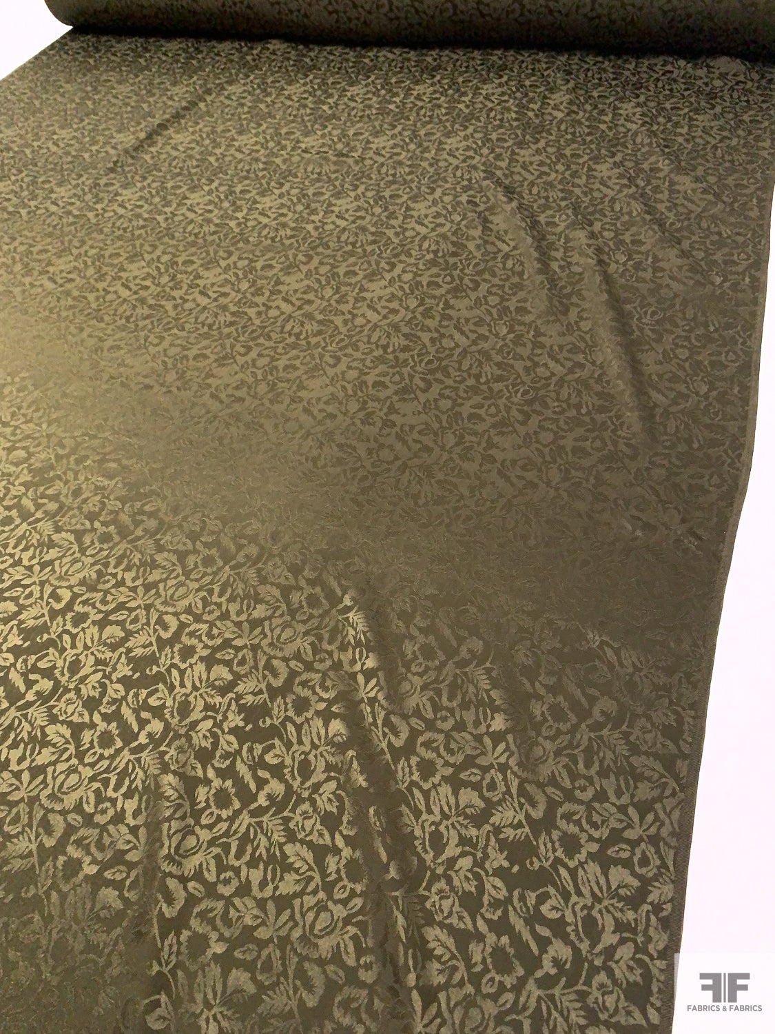 Floral Jacquard Silk Charmeuse - Olive Green
