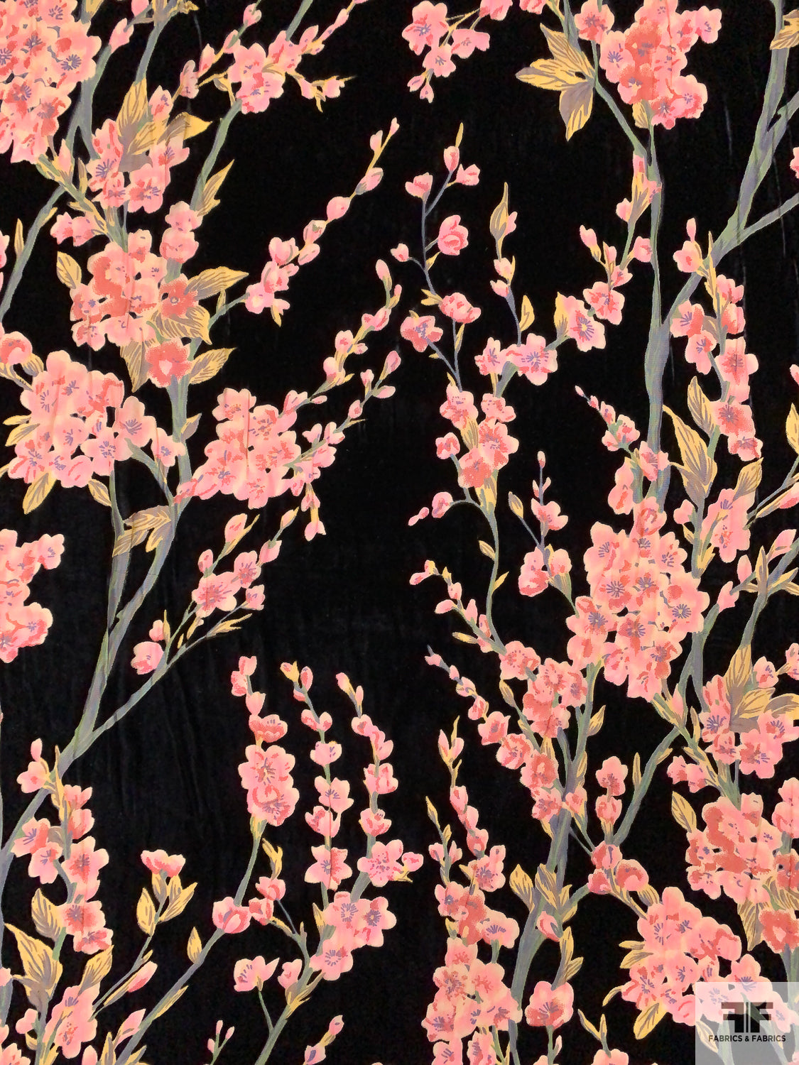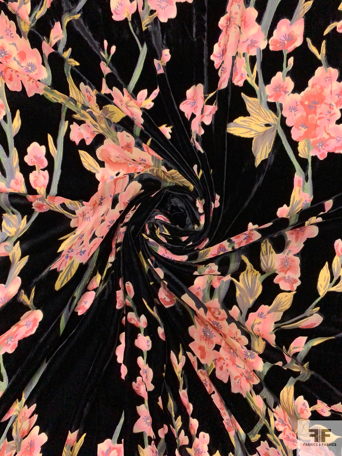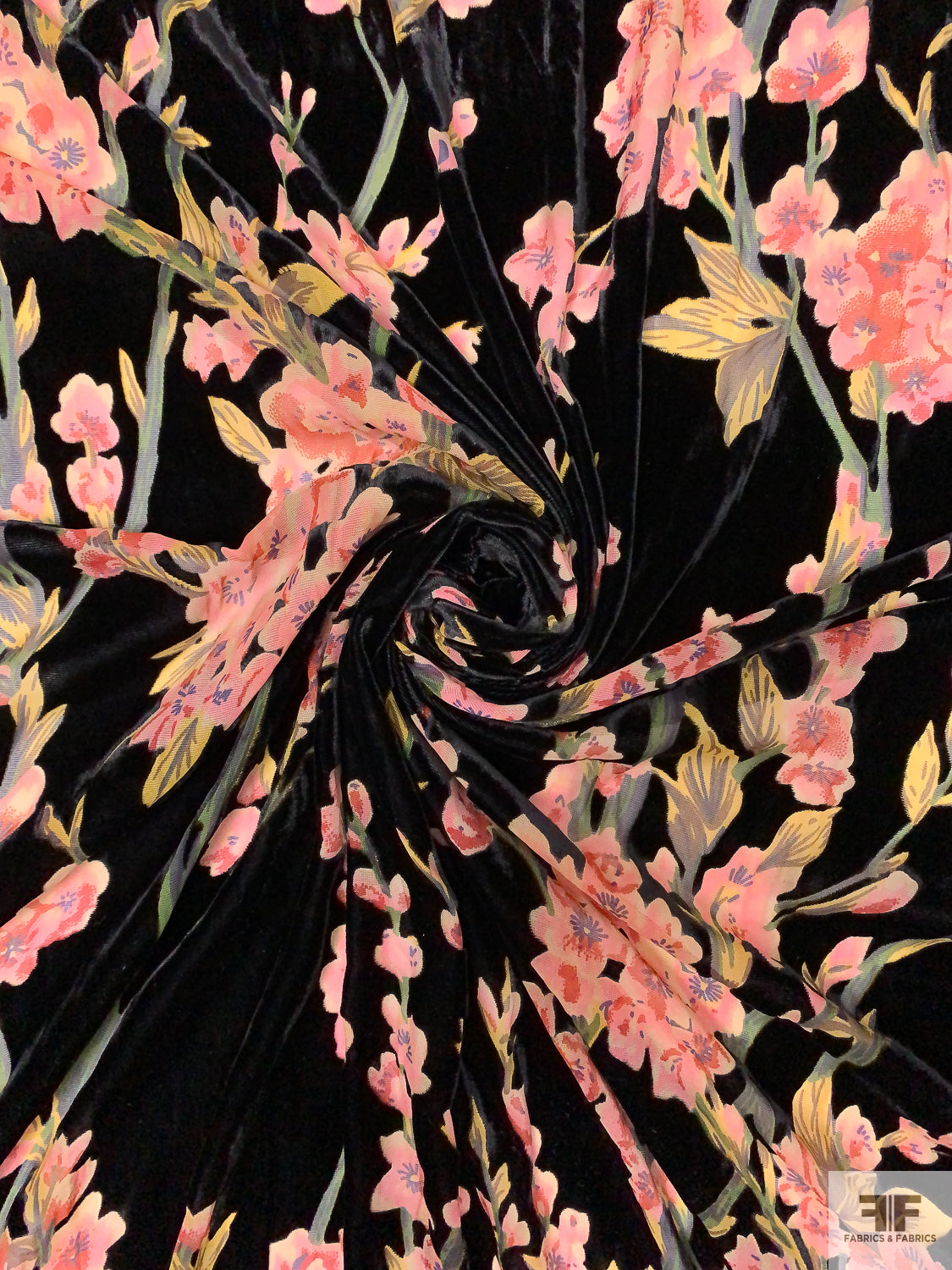 Floral Printed Burnout Velvet - Black / Pink / Greens / Red