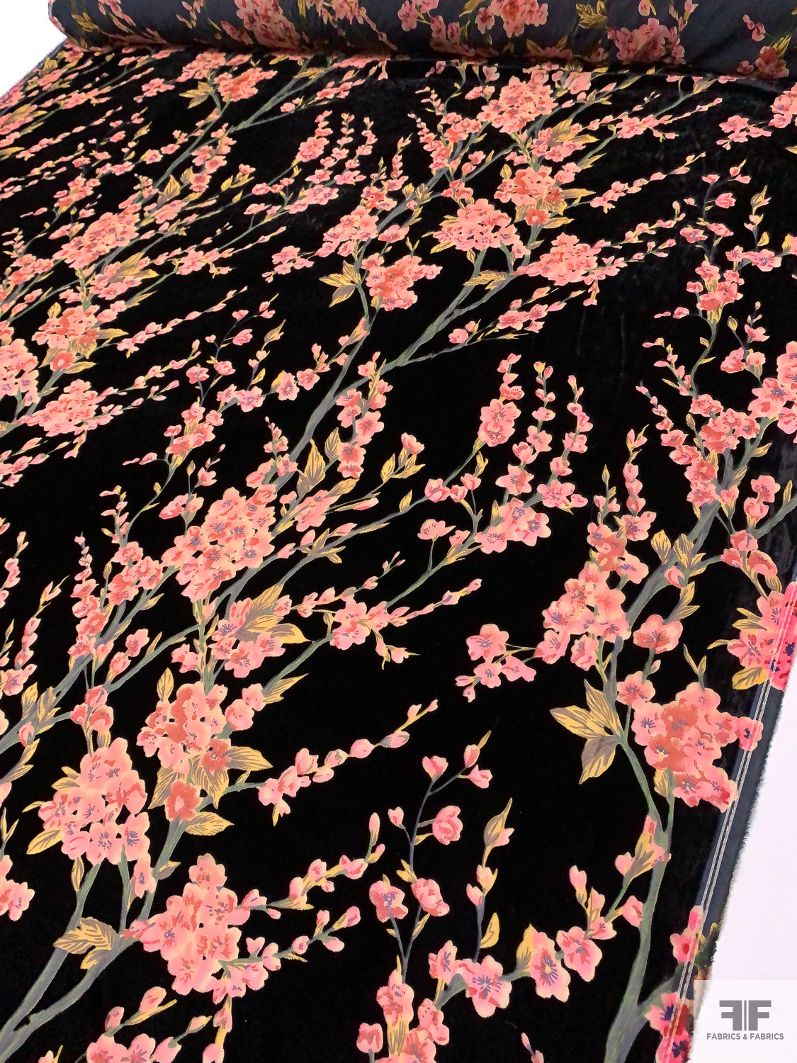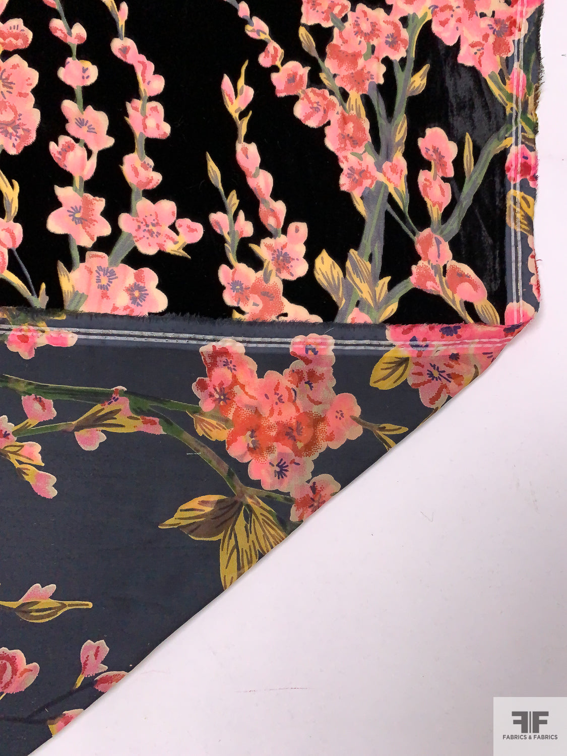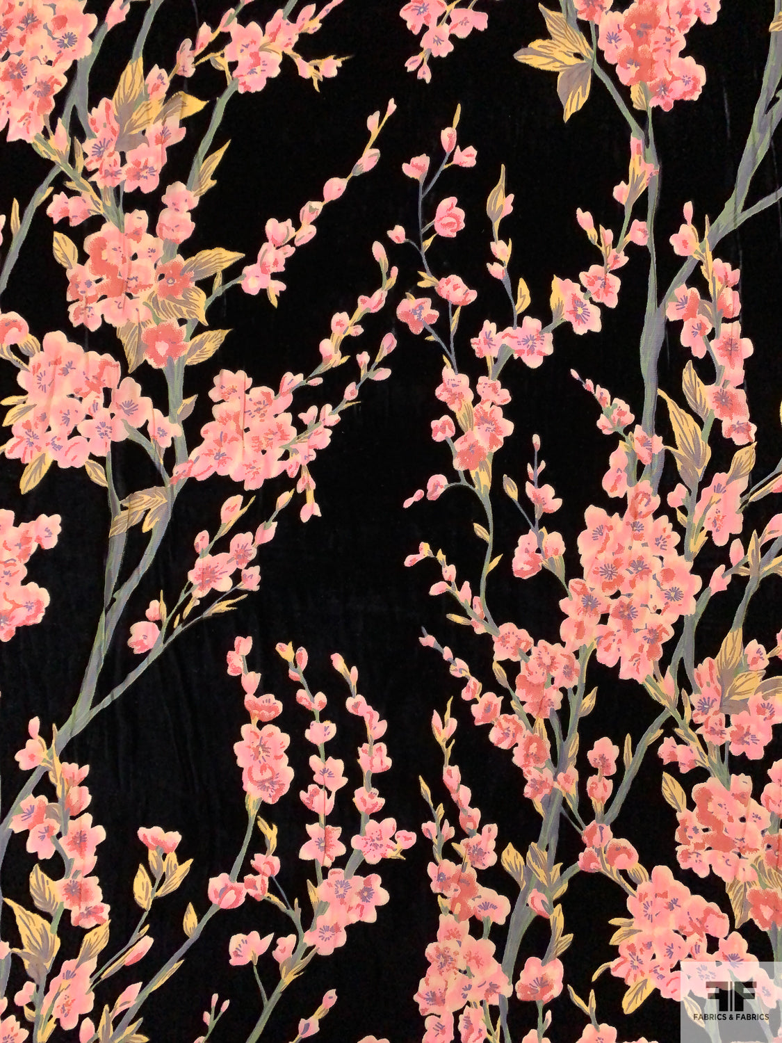 Floral Printed Burnout Velvet - Black / Pink / Greens / Red