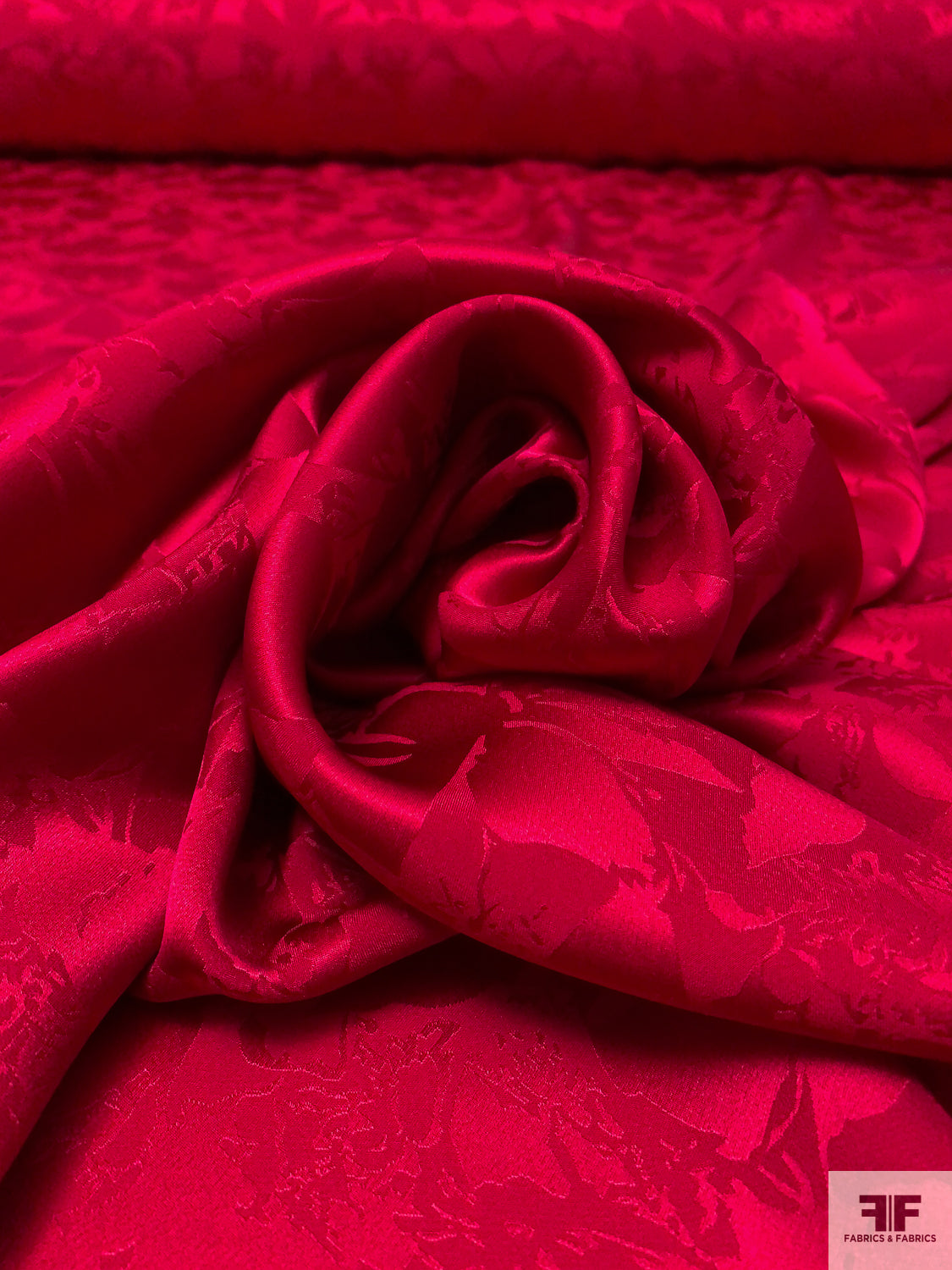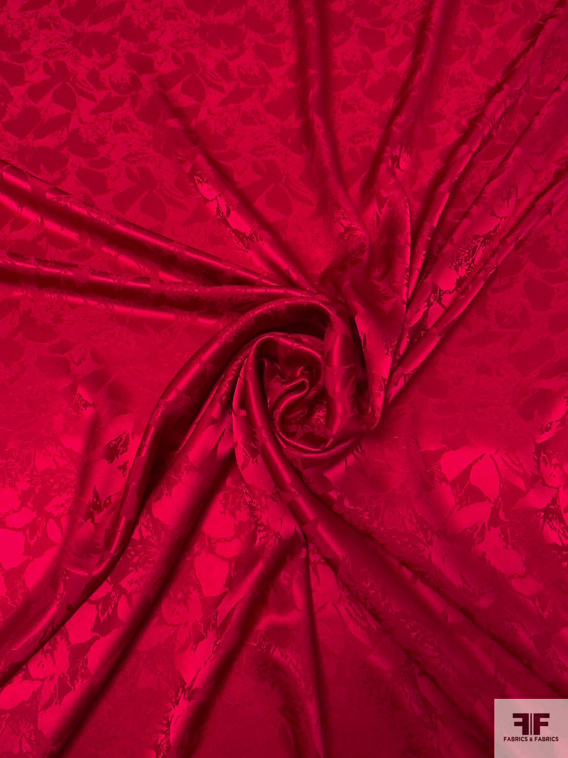 Floral Silhouette Jacquard Silk Charmeuse - Rich Red