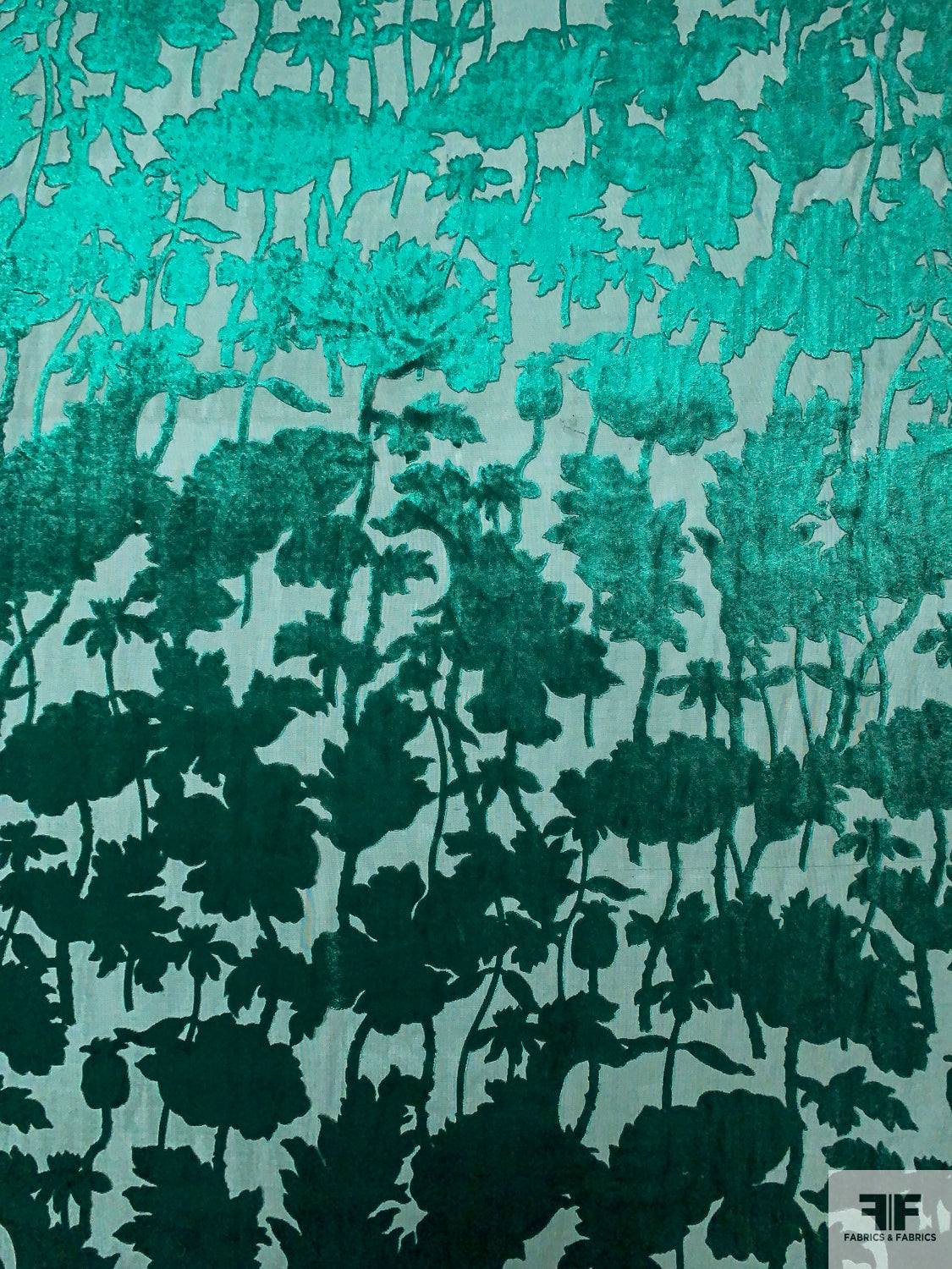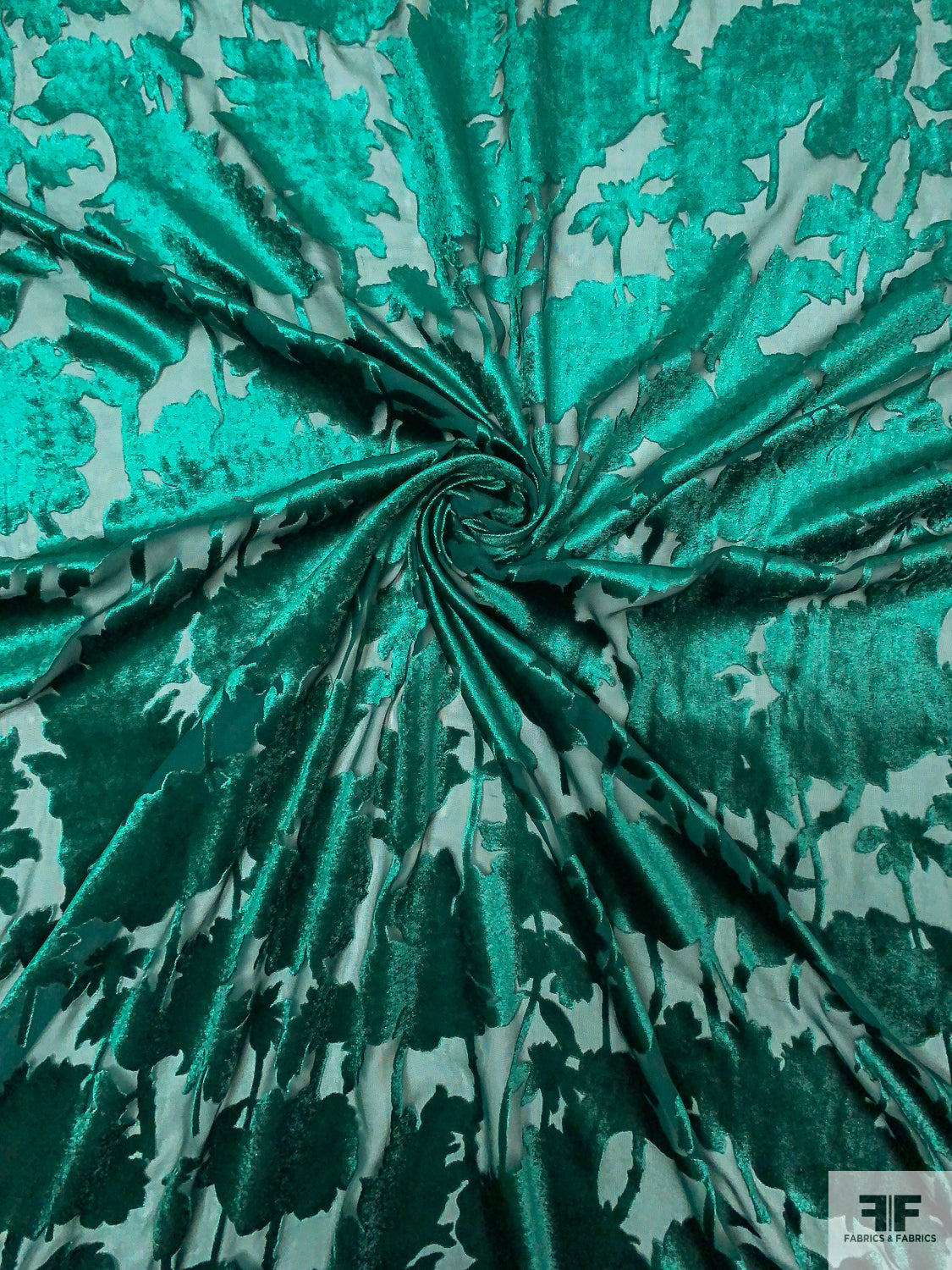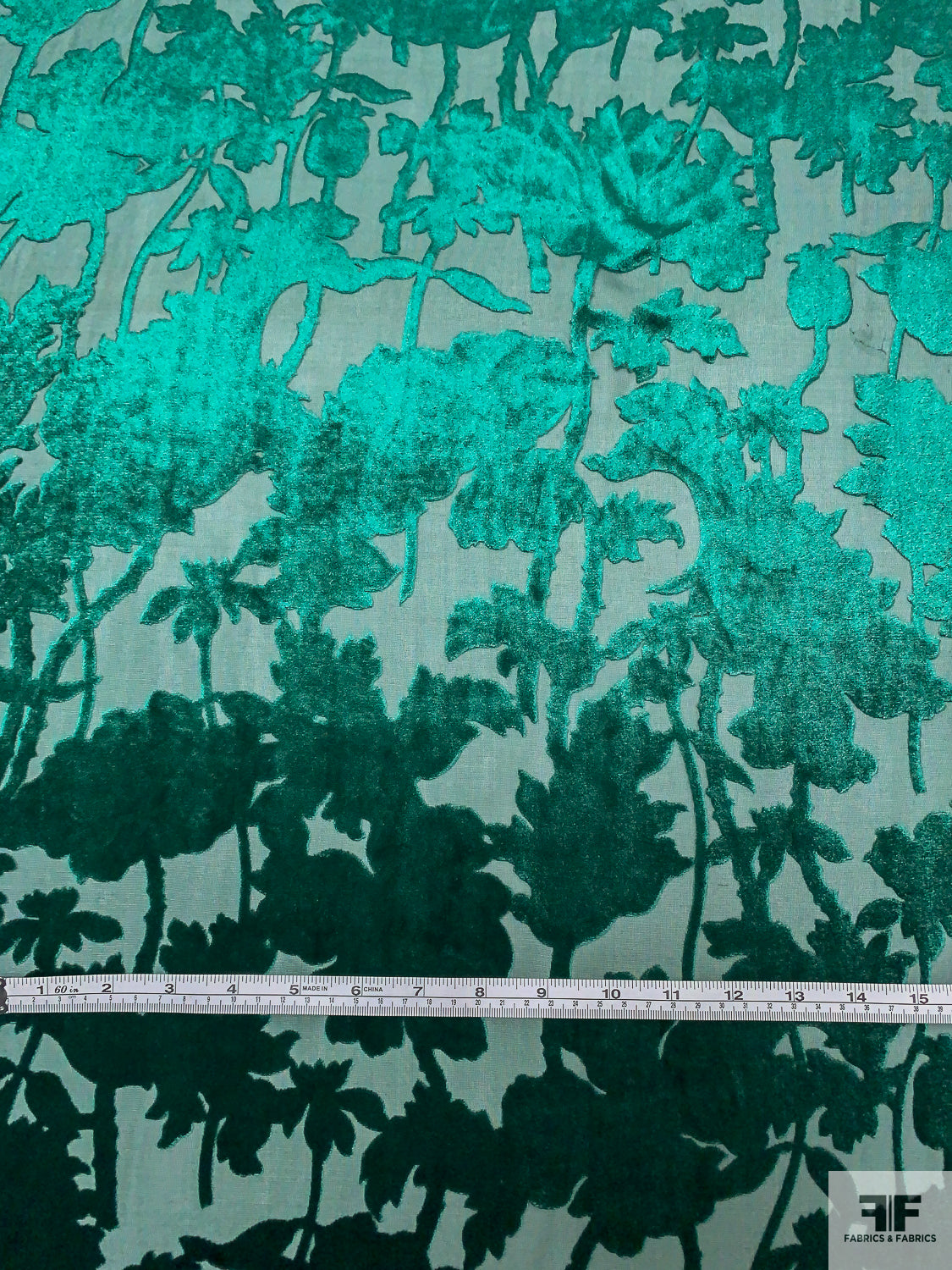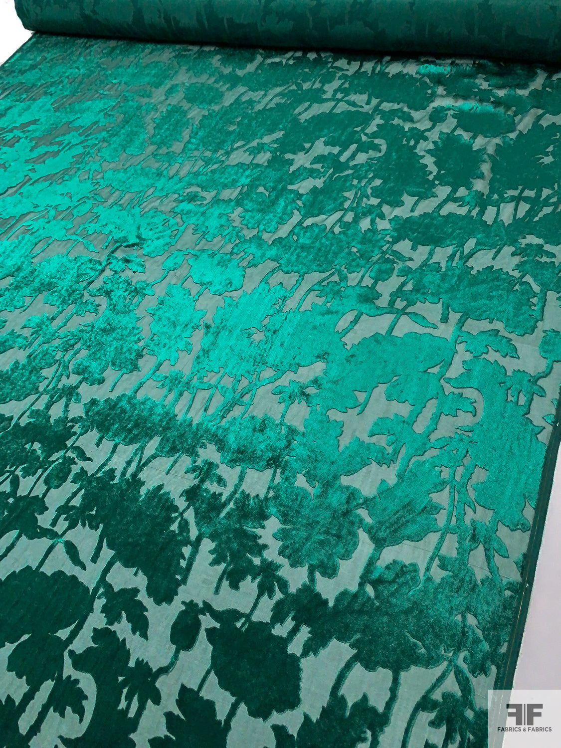 Italian Floral Silhouette Burnout Panné Velvet - Emerald Green