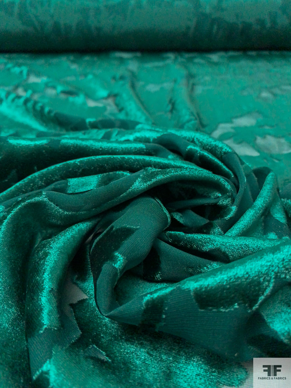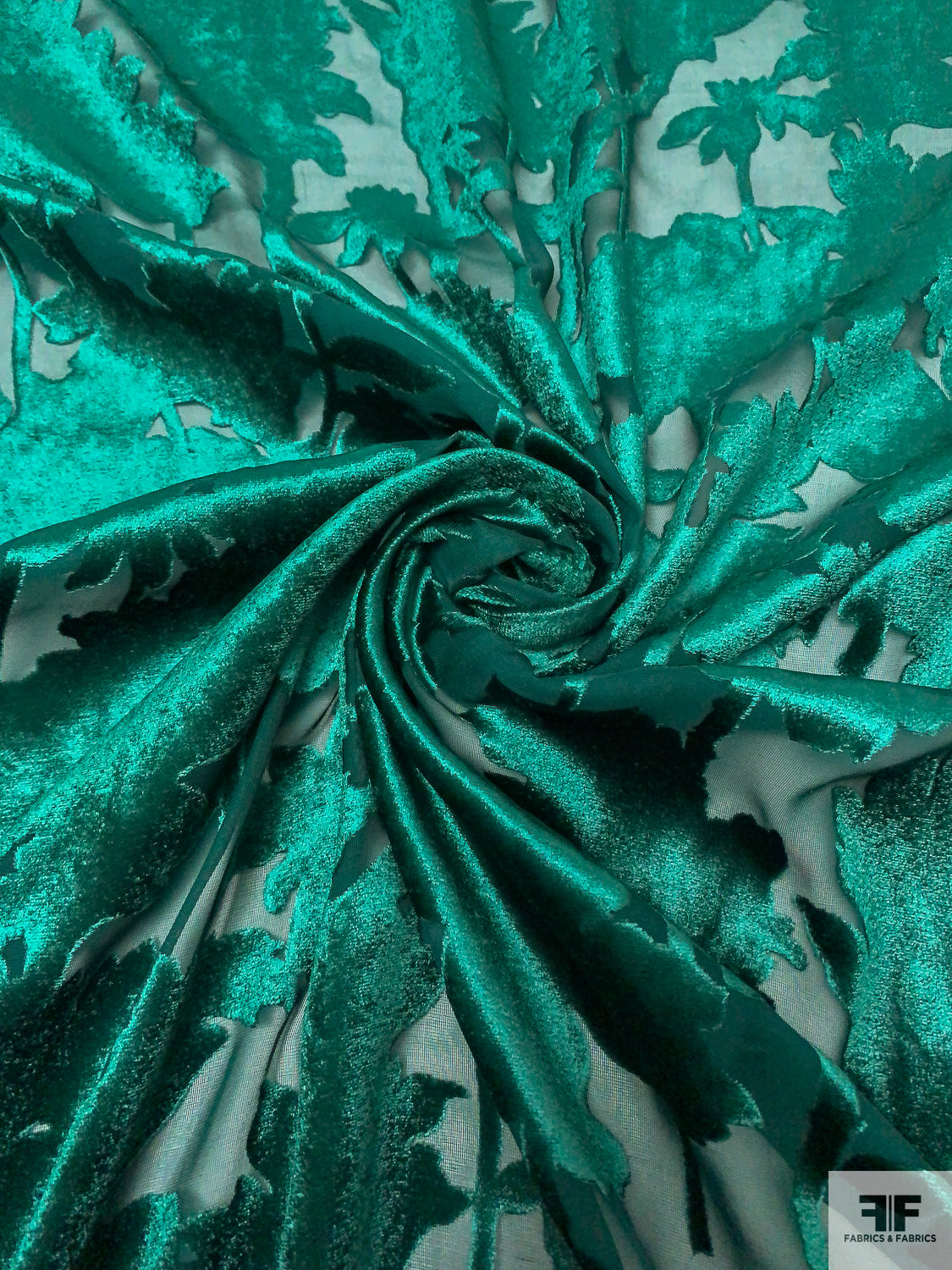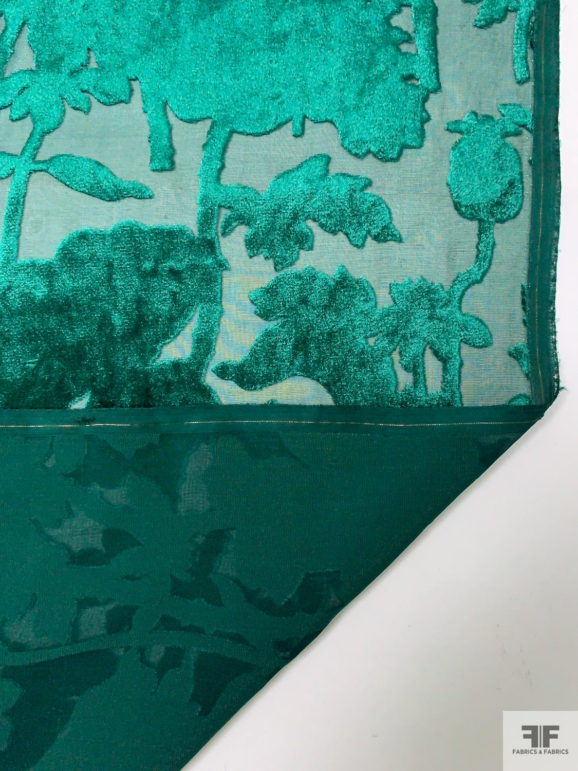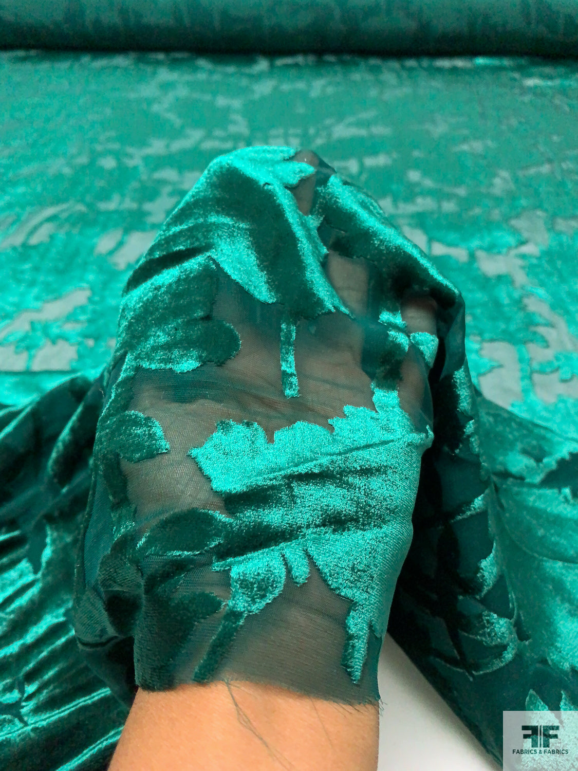 Italian Floral Silhouette Burnout Panné Velvet - Emerald Green