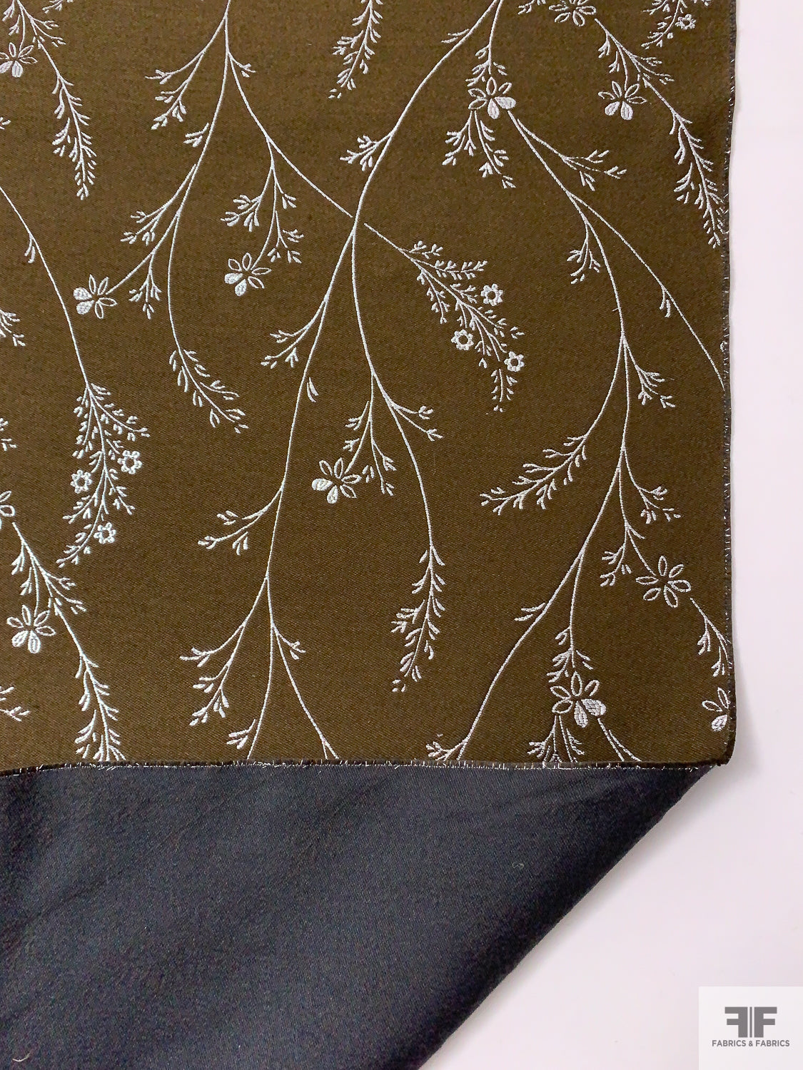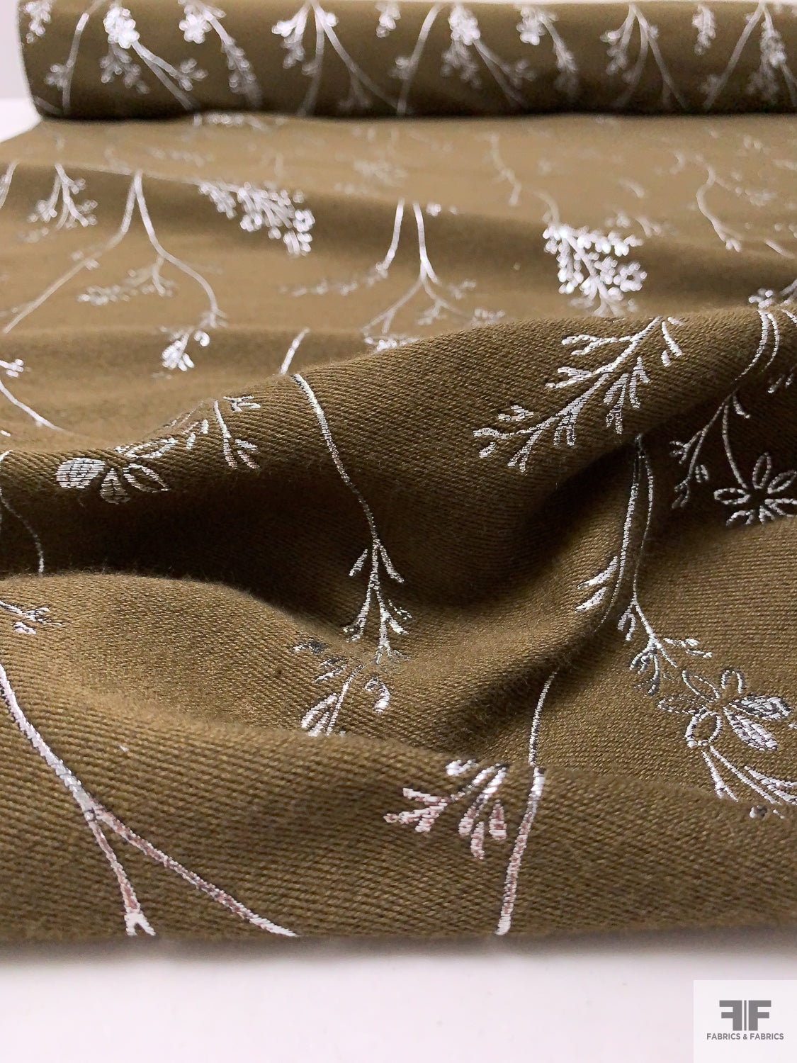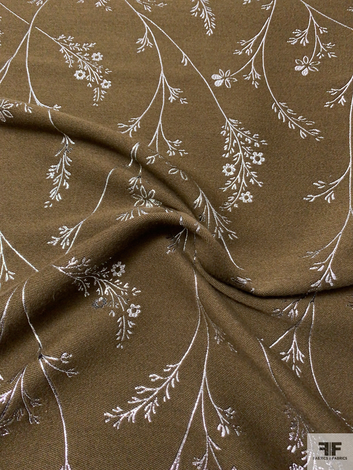 Italian Metallic Jacquard Floral Gabardine Jacket Weight - Olive Brown / Silver