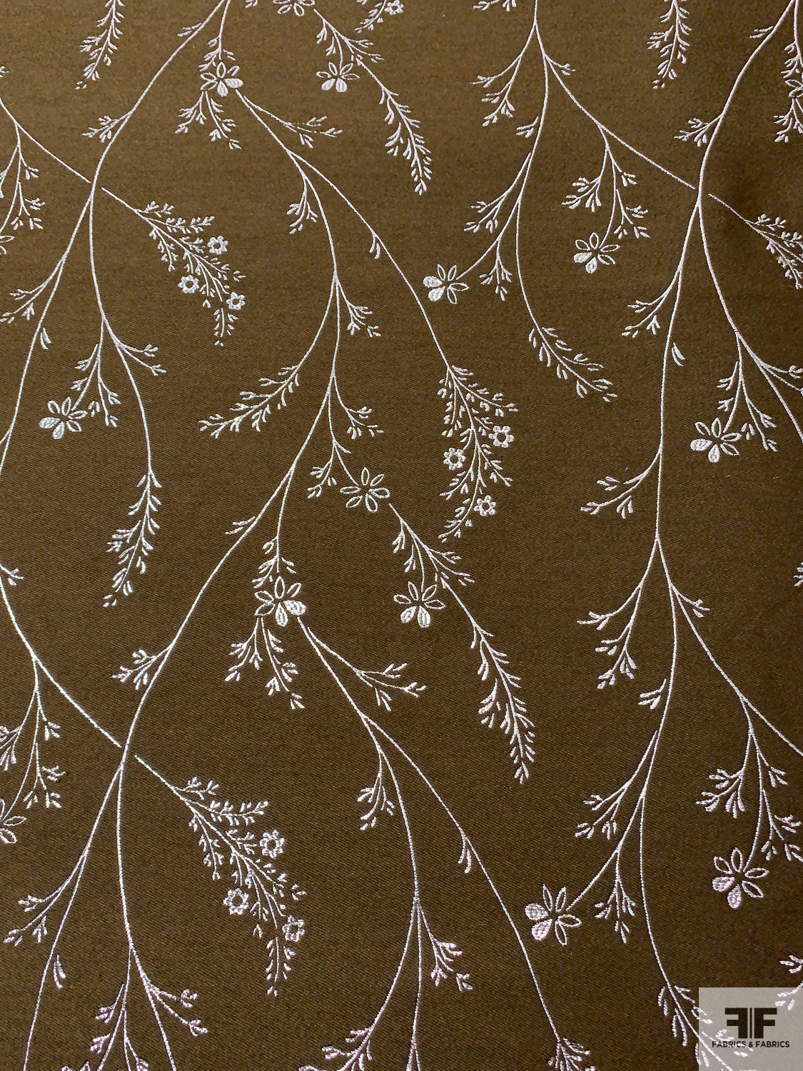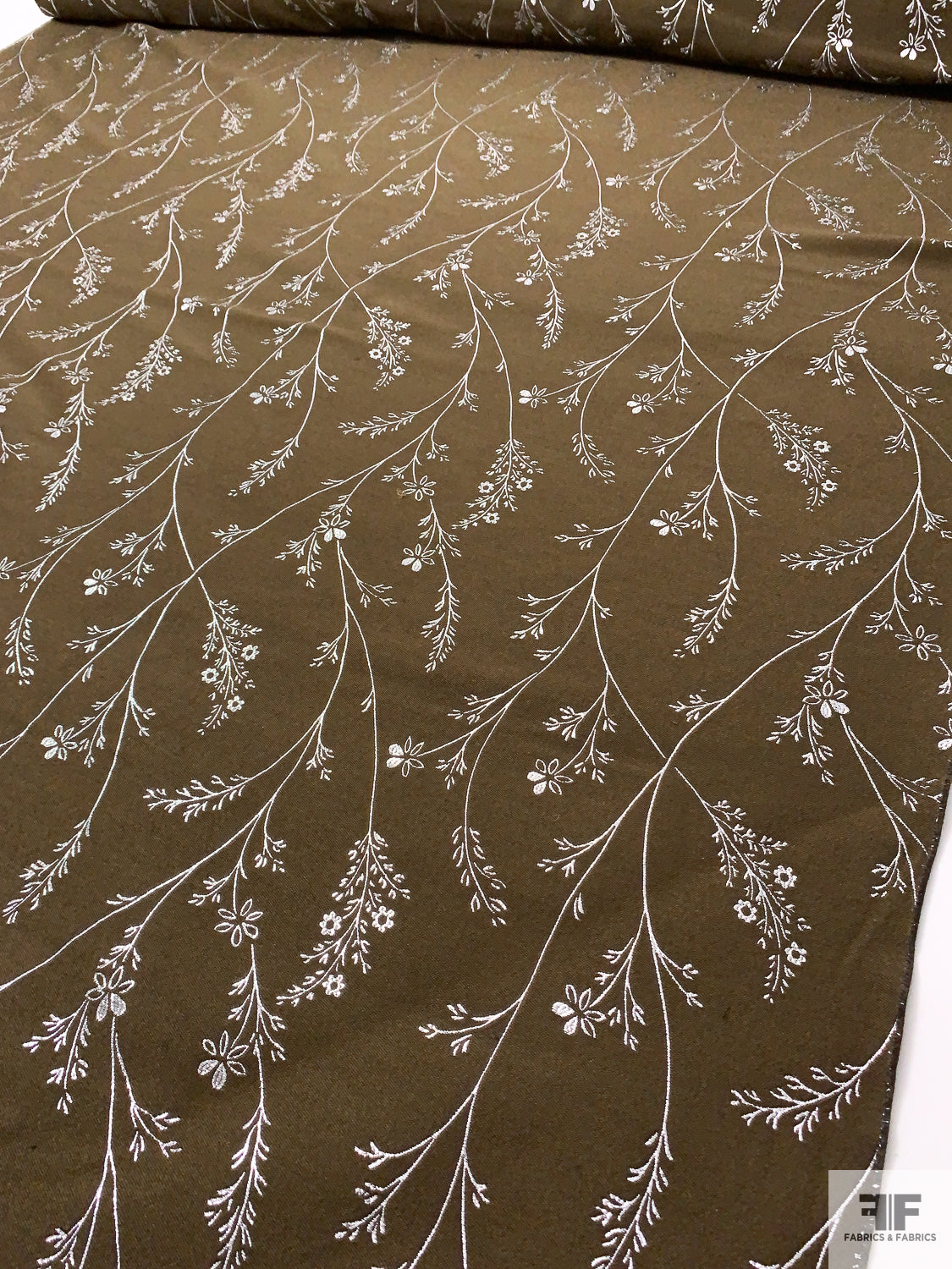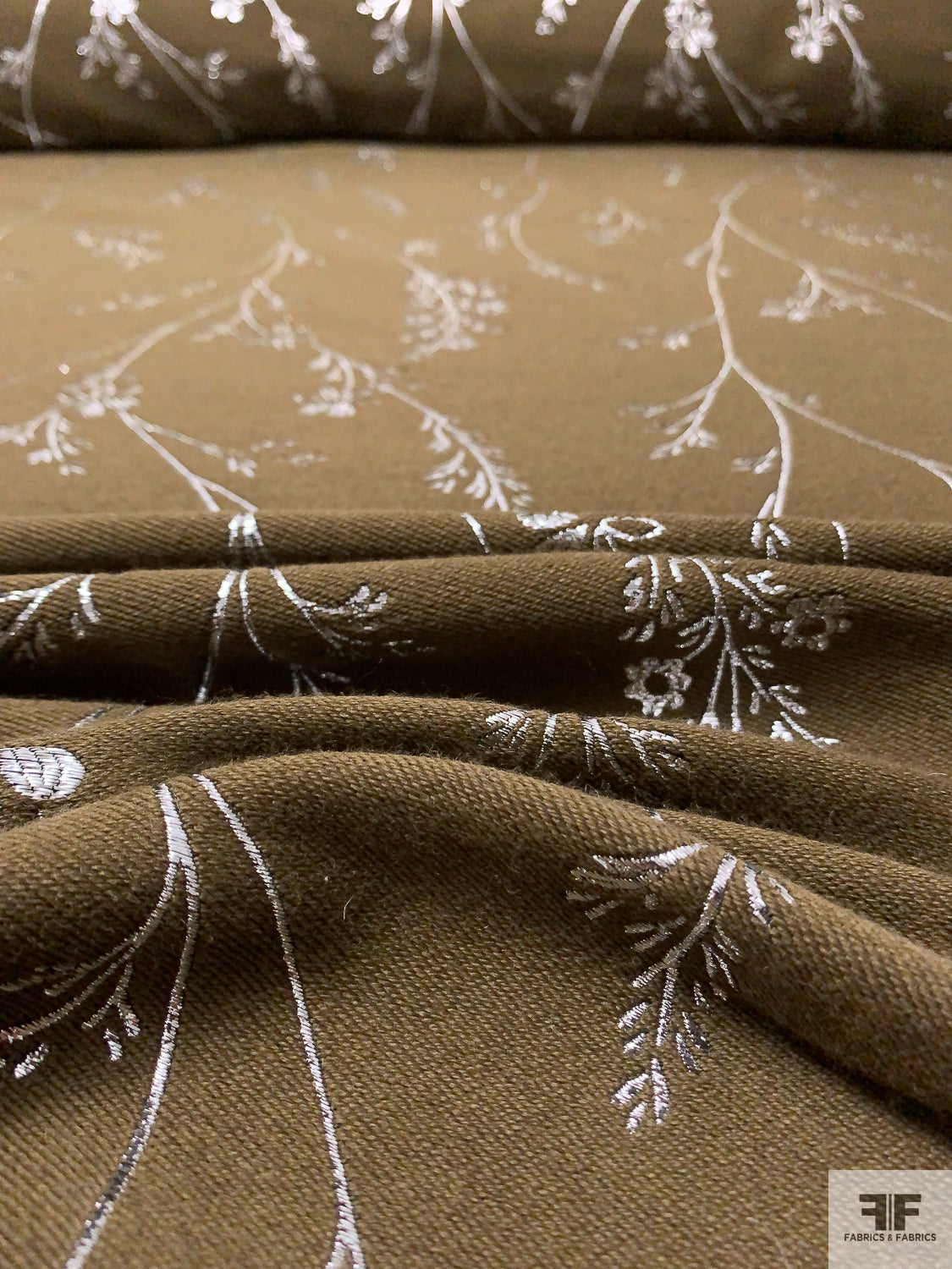 Italian Metallic Jacquard Floral Gabardine Jacket Weight - Olive Brown / Silver
