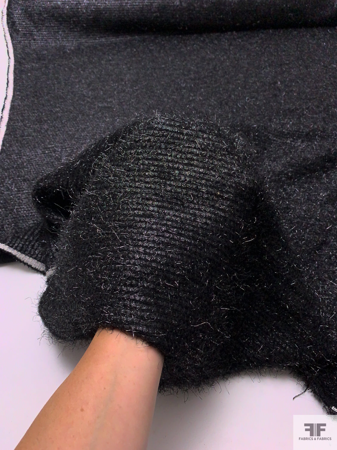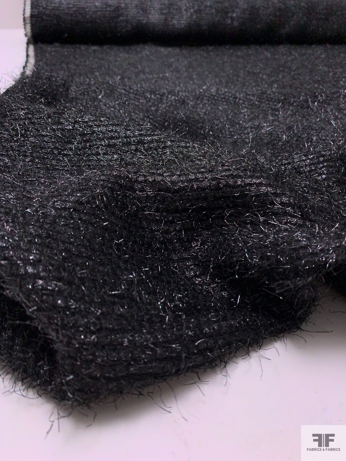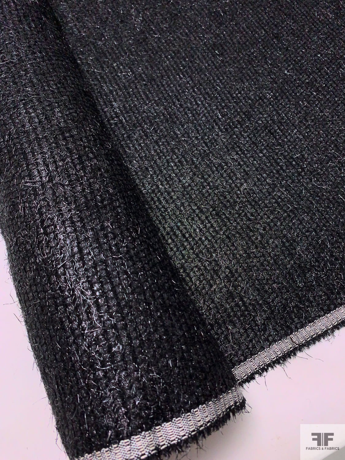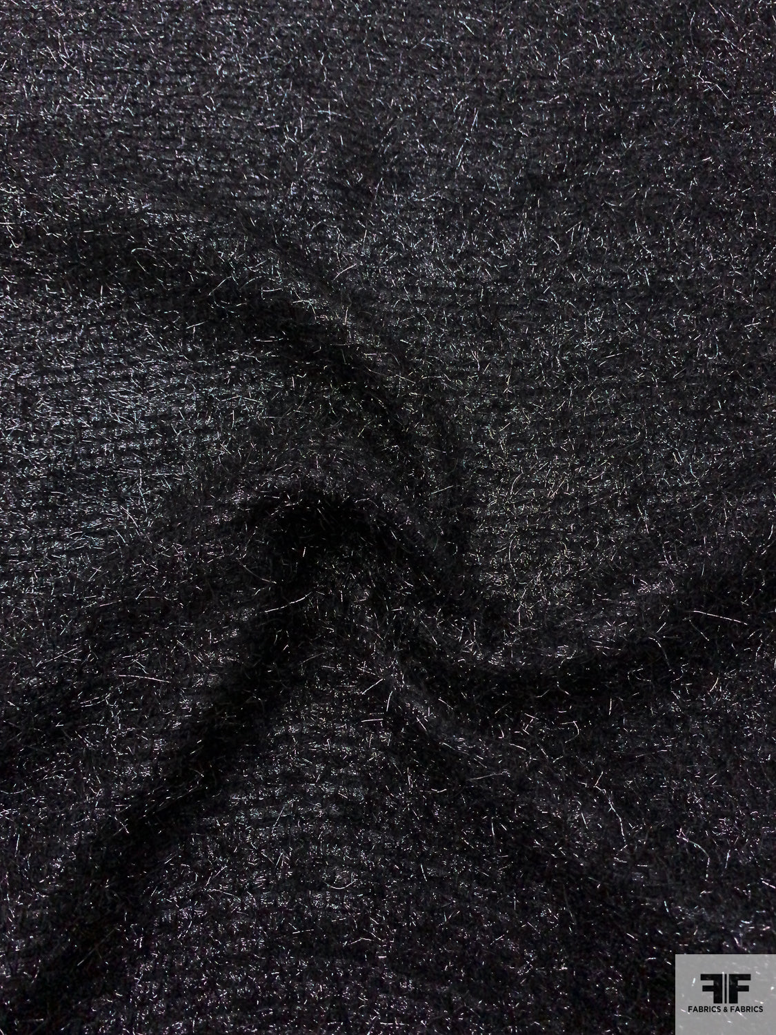 Italian Metallic Eyelash Wool Tweed Suiting - Black
