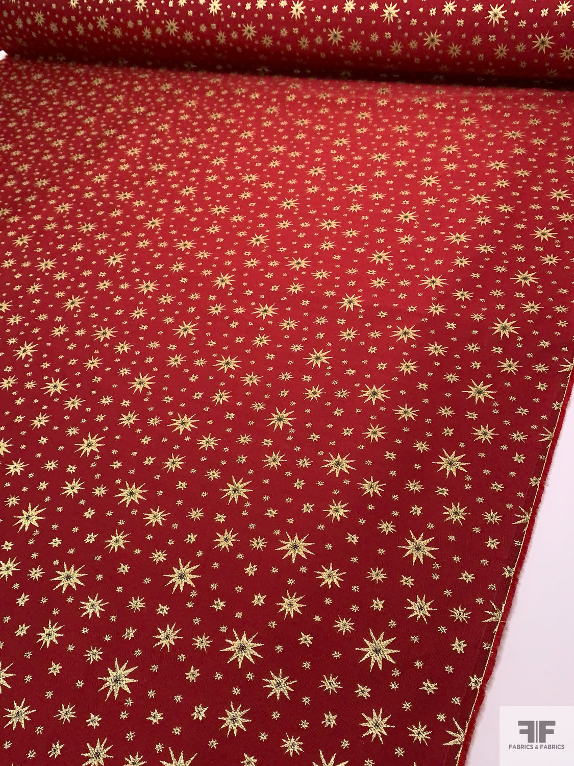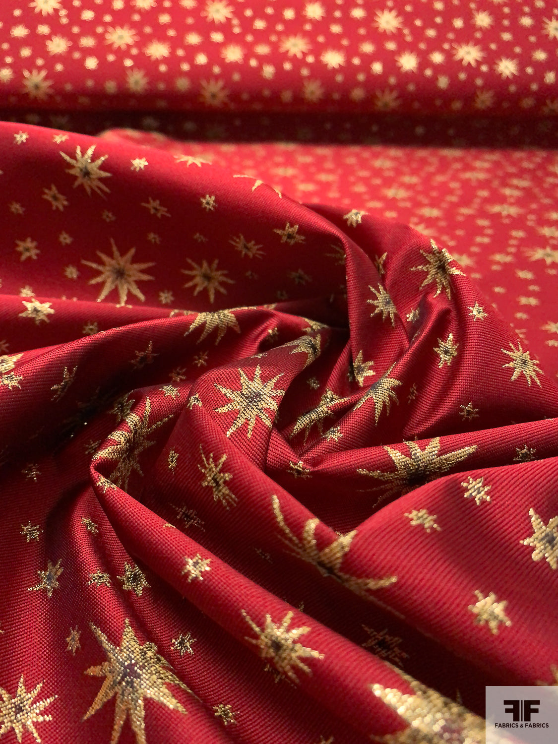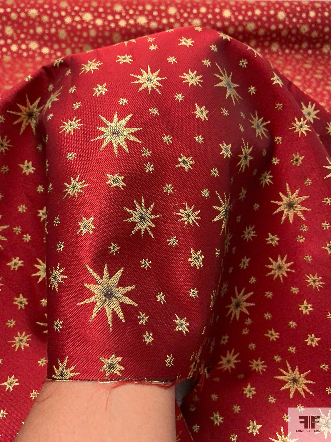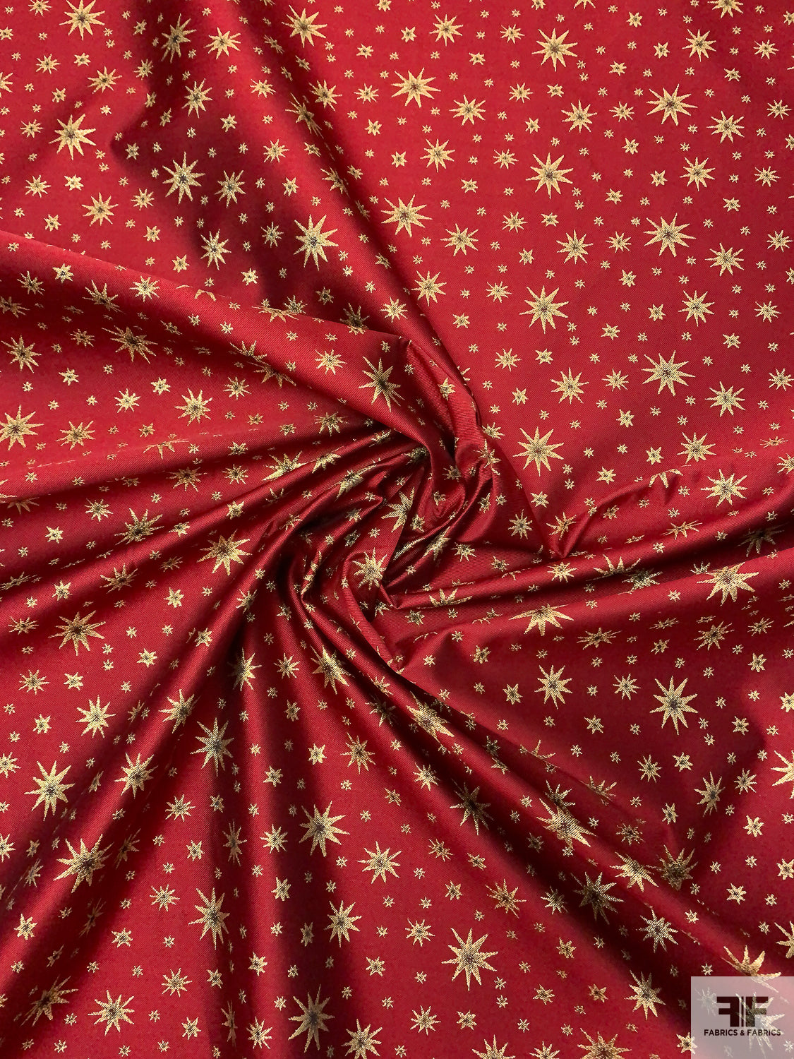 Star Motif Brocade with Fused Back - Royal Red / Gold