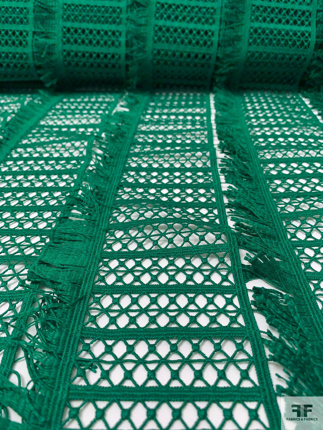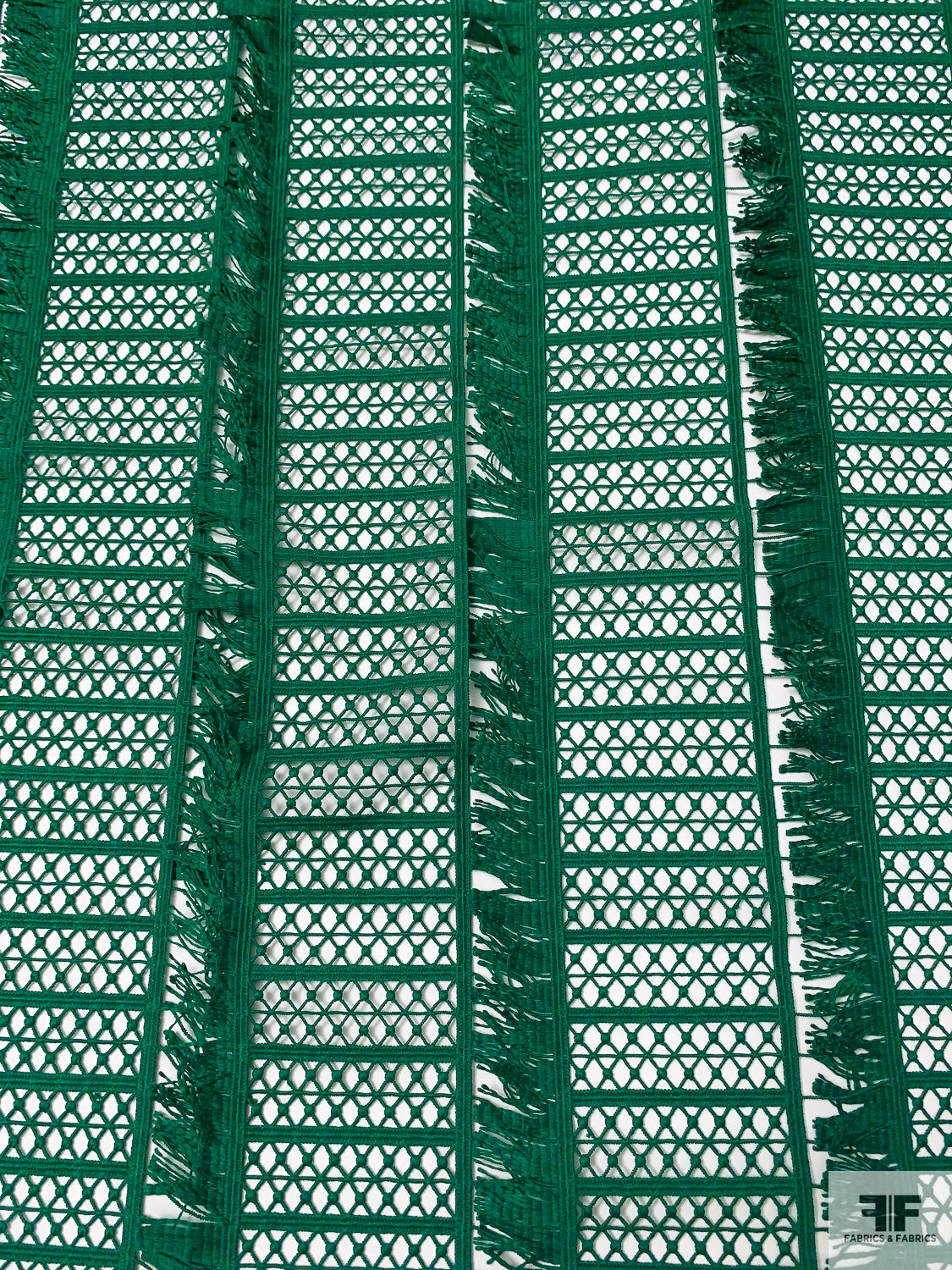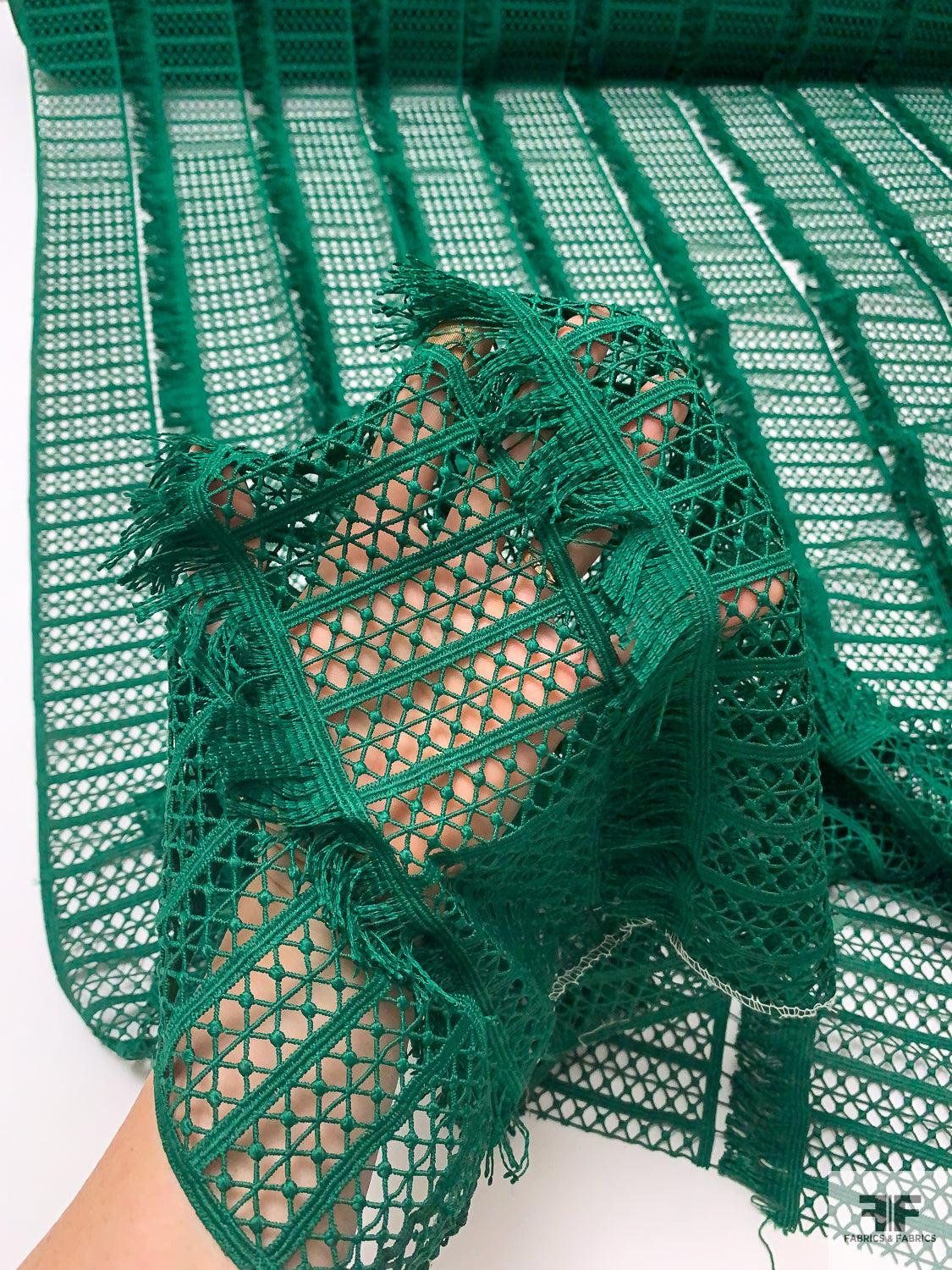 Novelty Fringe Striped Guipure Lace - Emerald Green