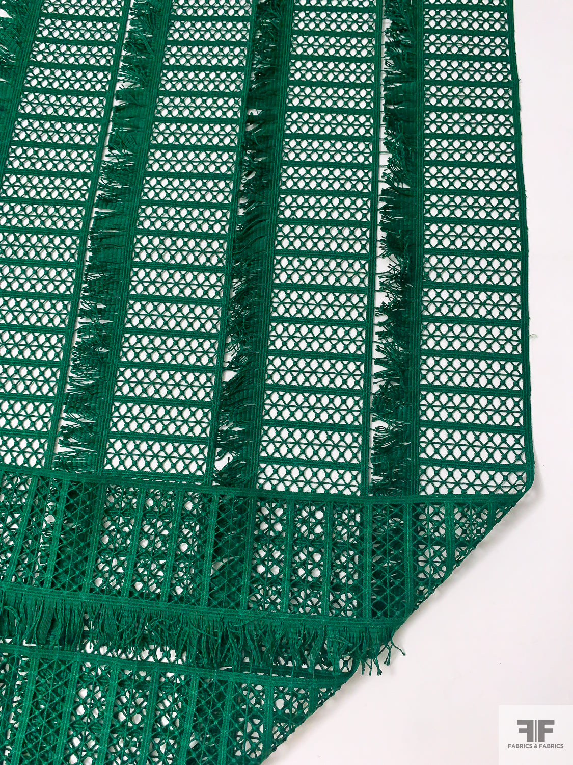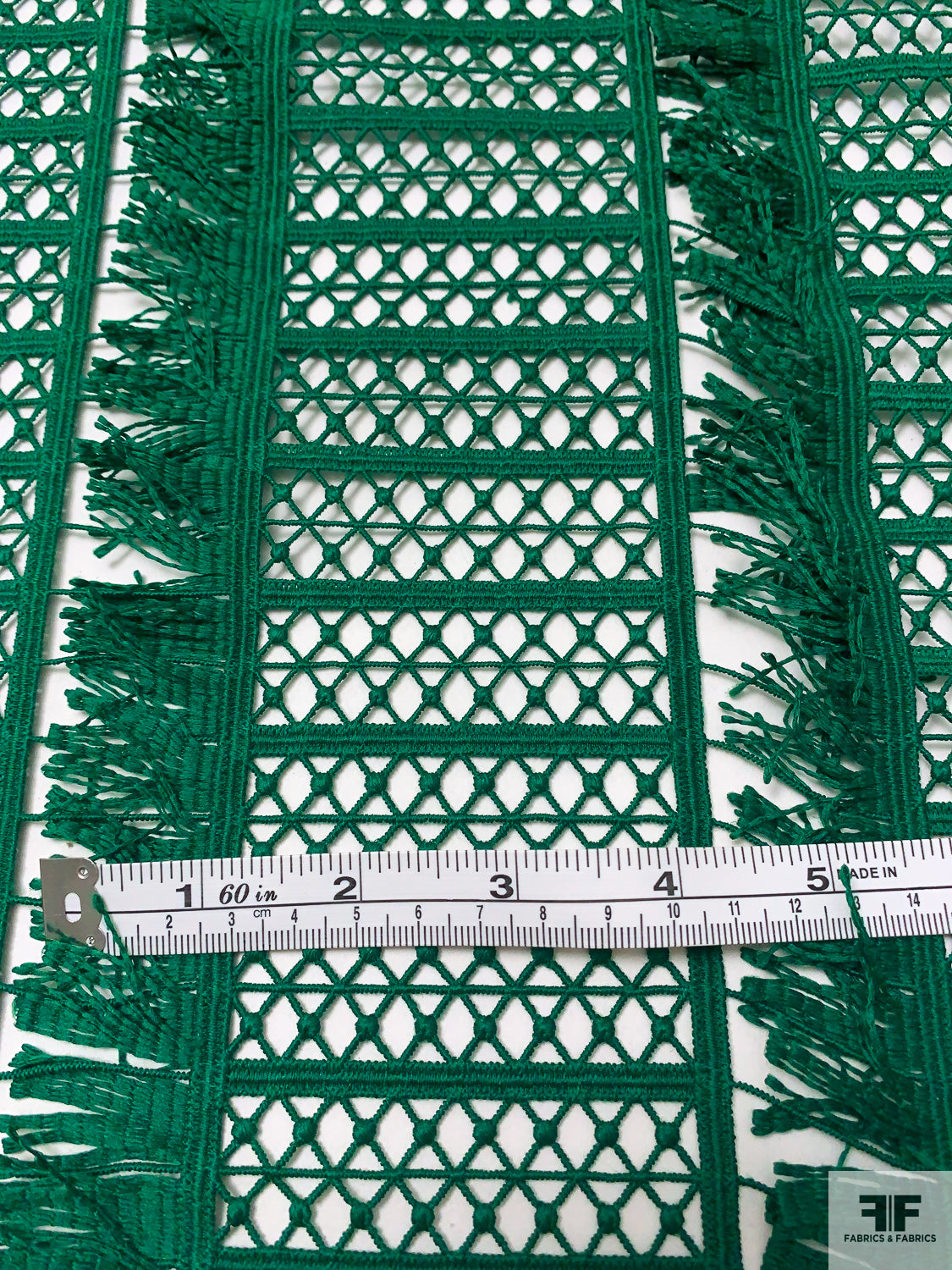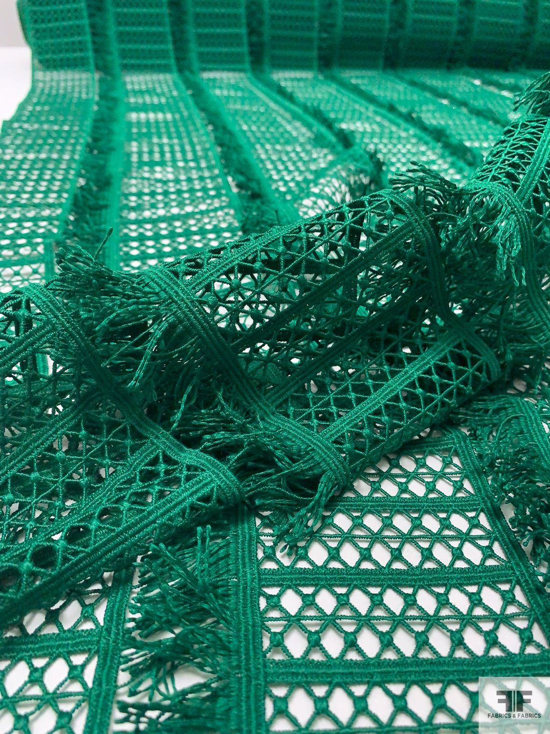 Novelty Fringe Striped Guipure Lace - Emerald Green