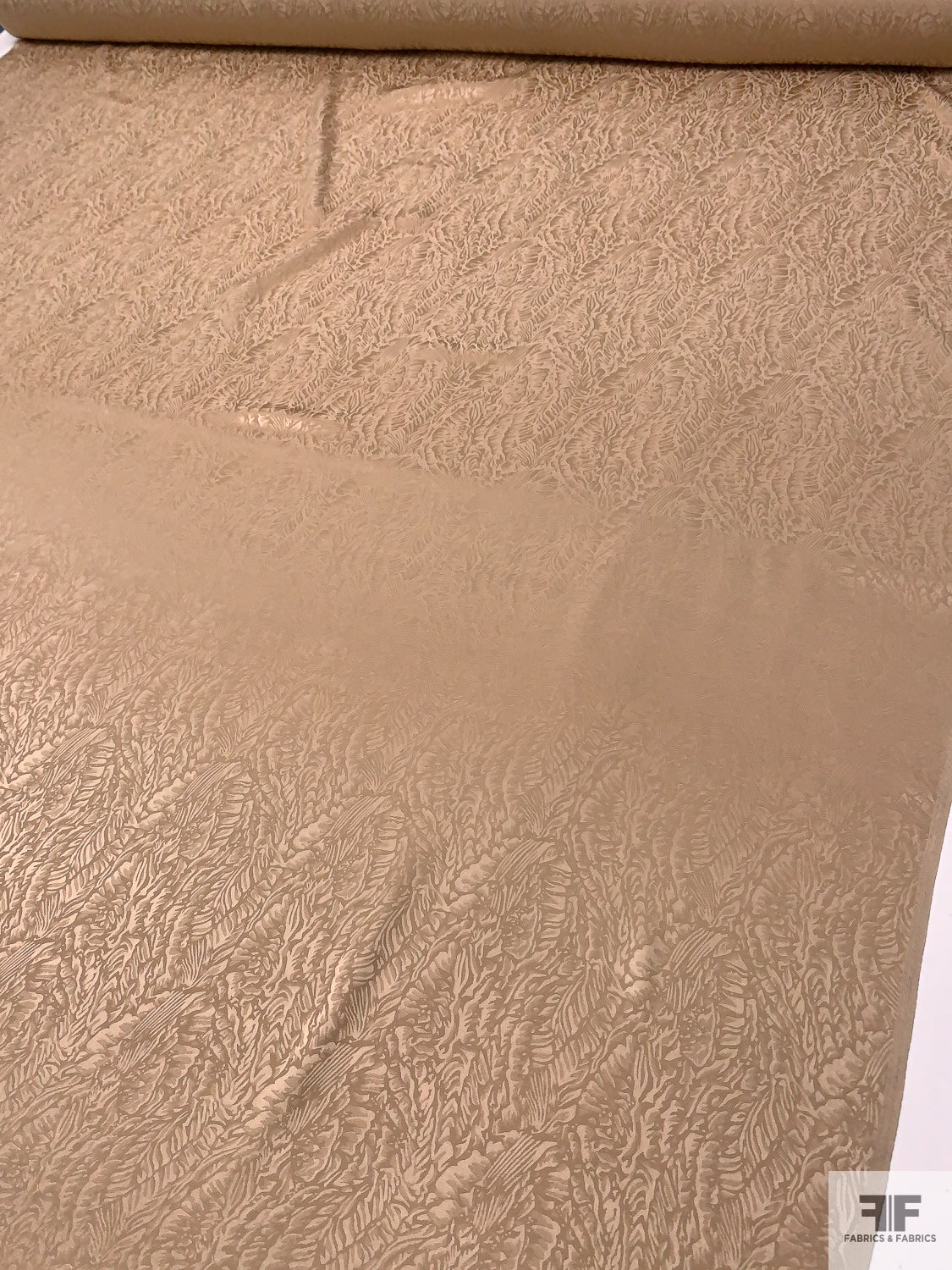 Graphic Leaf Jacquard Silk Charmeuse - Tan