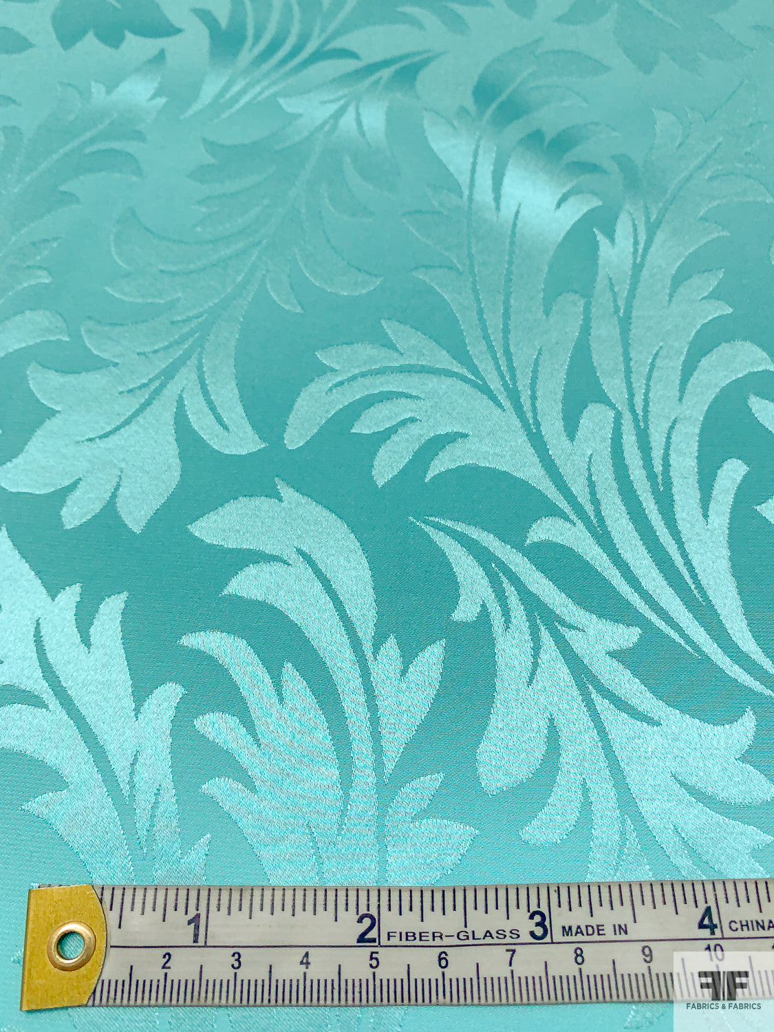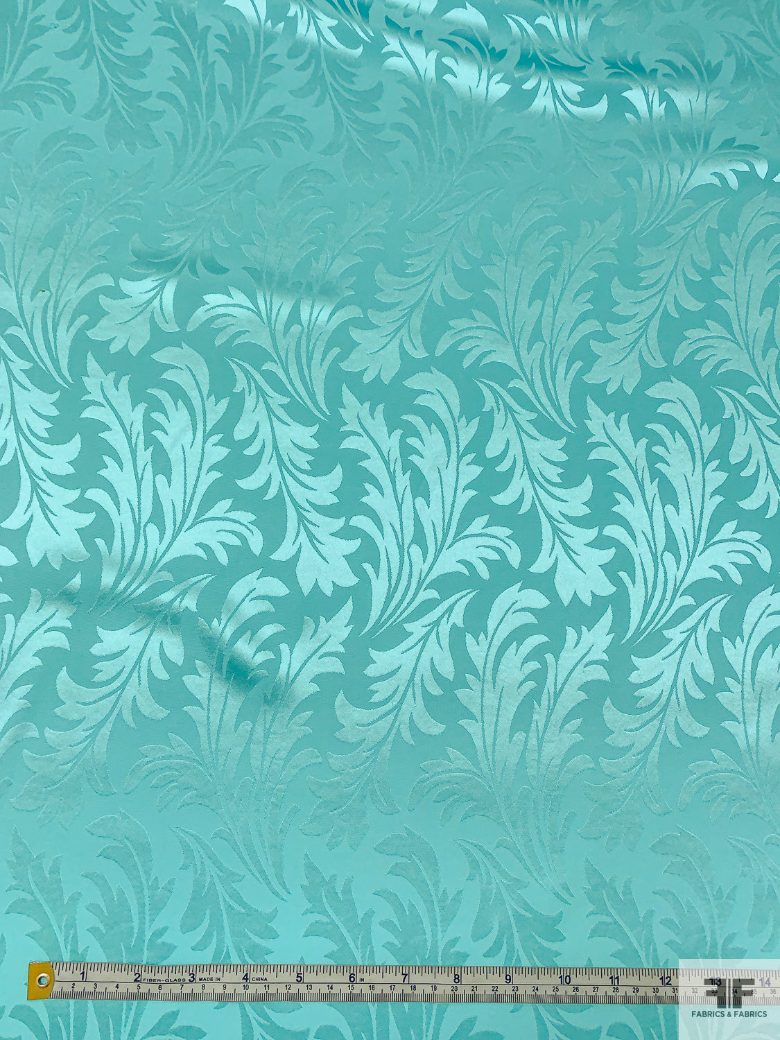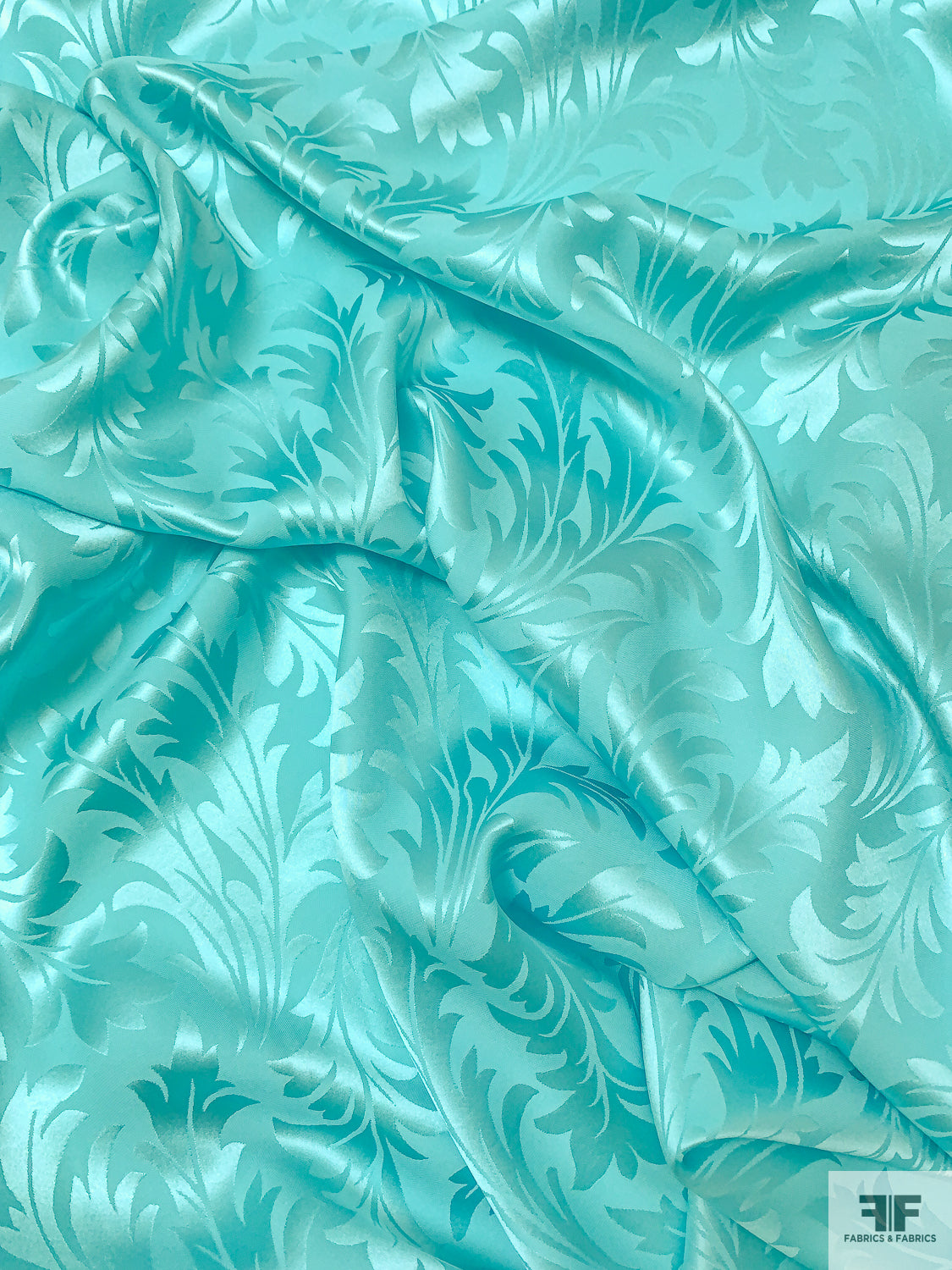 Leaf Motif Jacquard Silk Charmeuse - Aqua