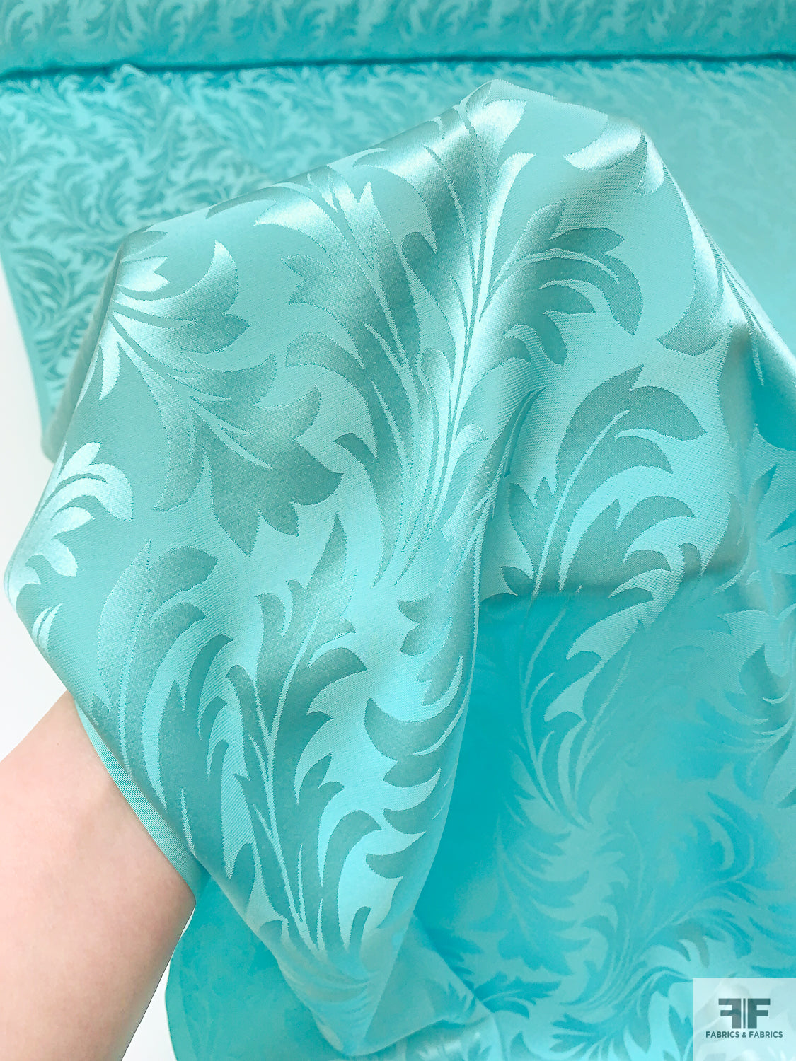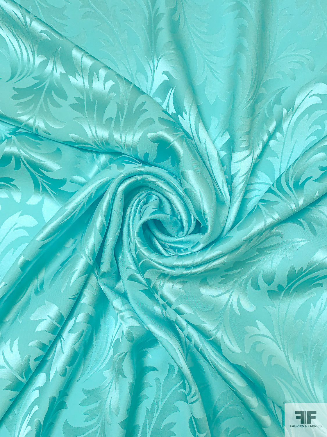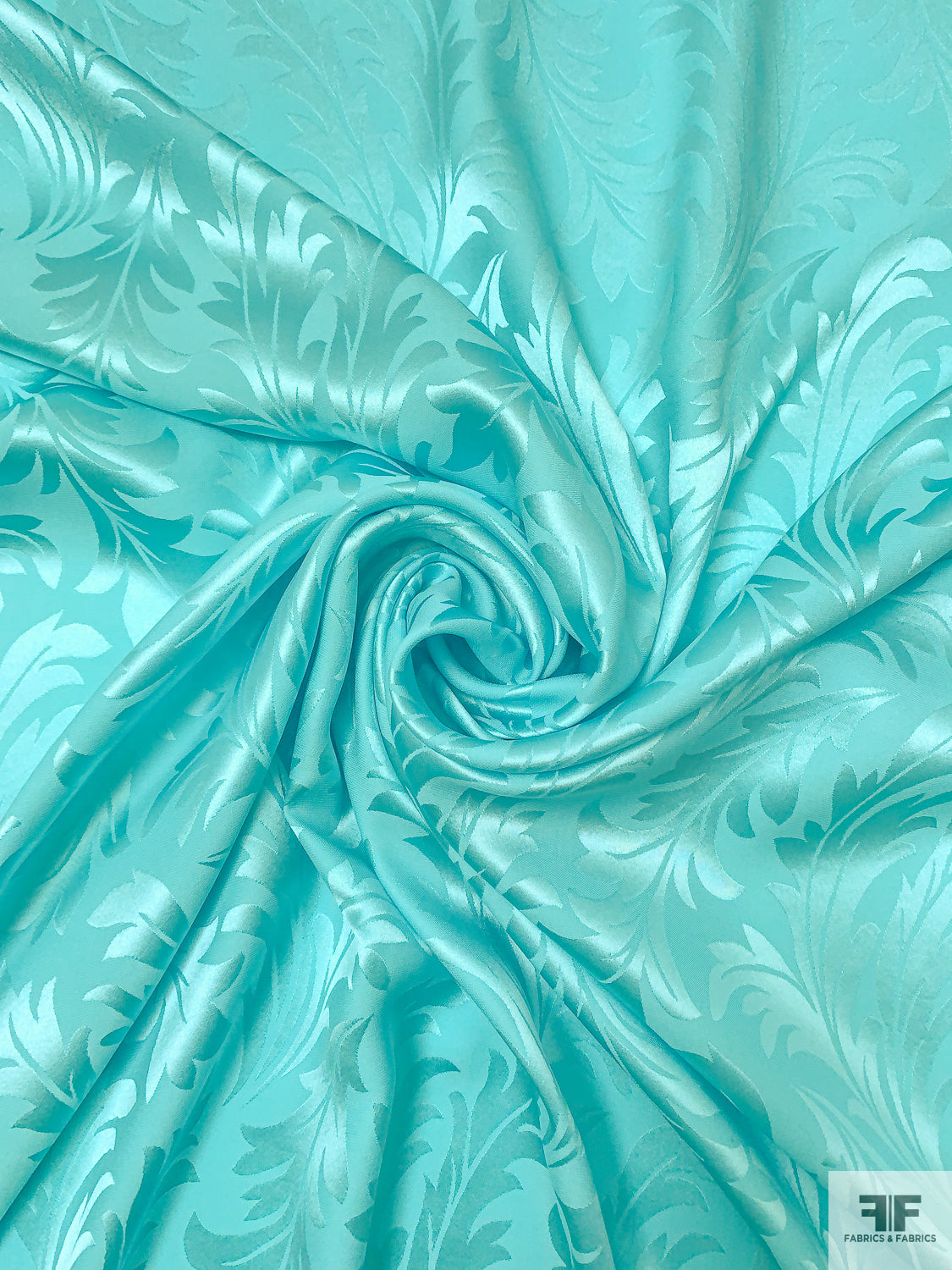 Leaf Motif Jacquard Silk Charmeuse - Aqua