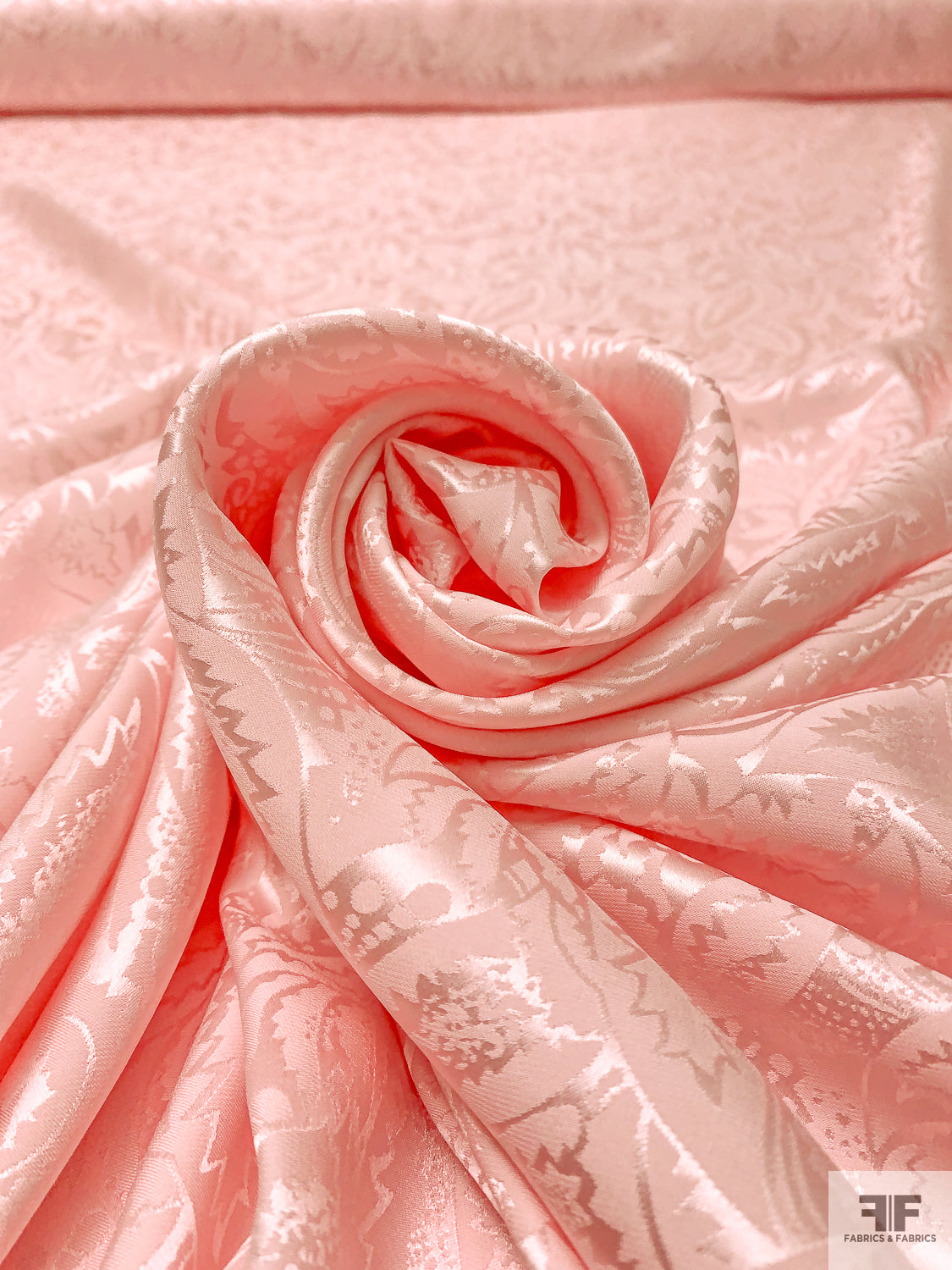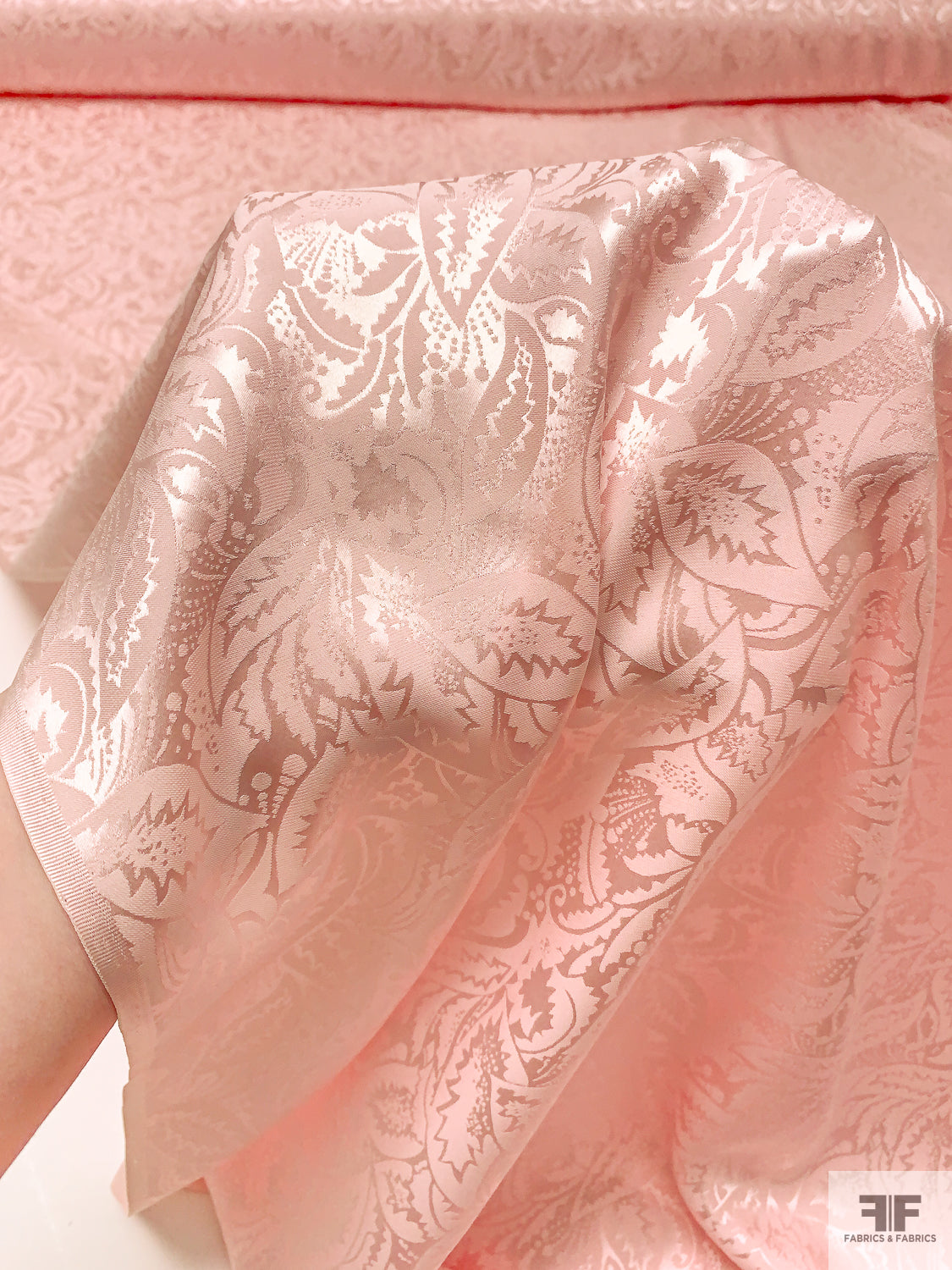 Leaf Motif Jacquard Silk Charmeuse - Ballet Slipper Pink