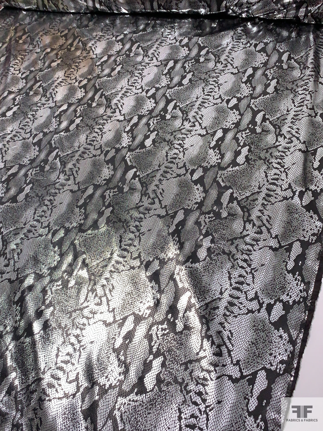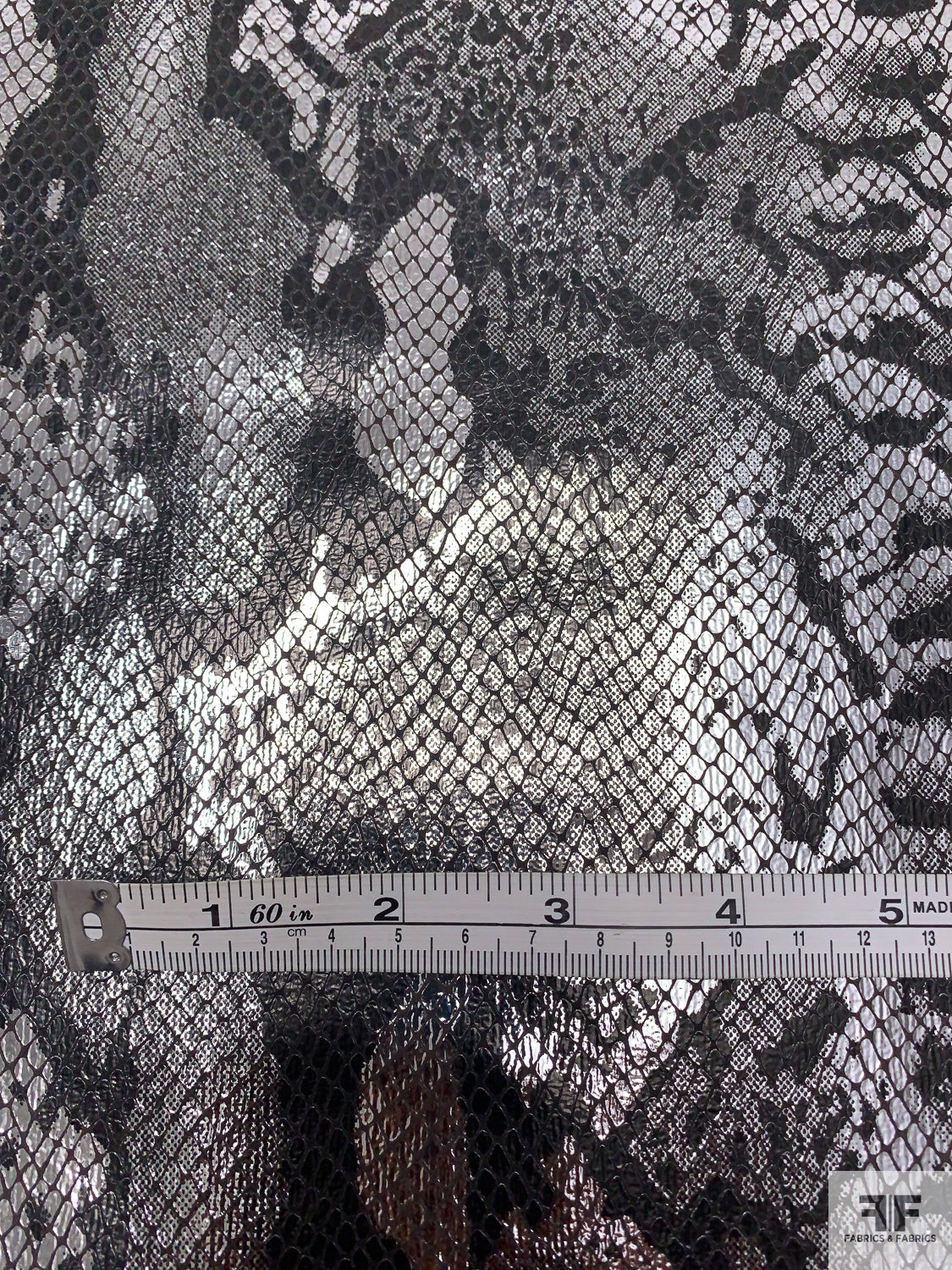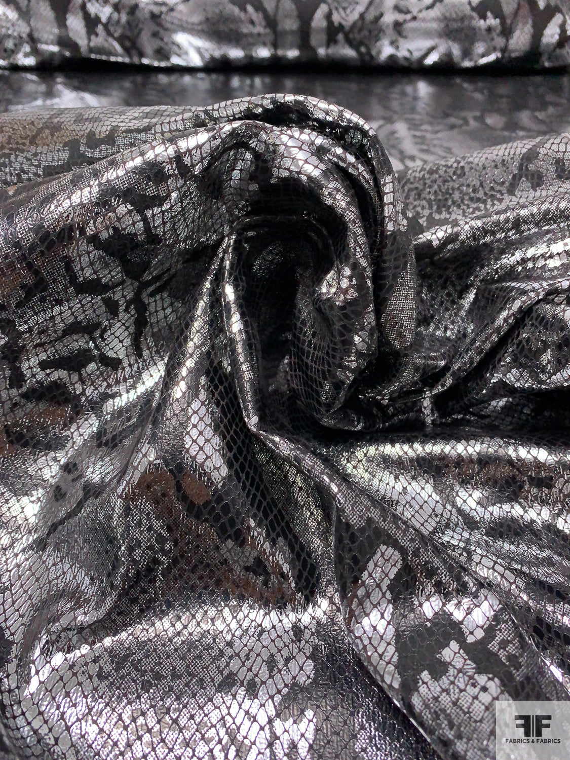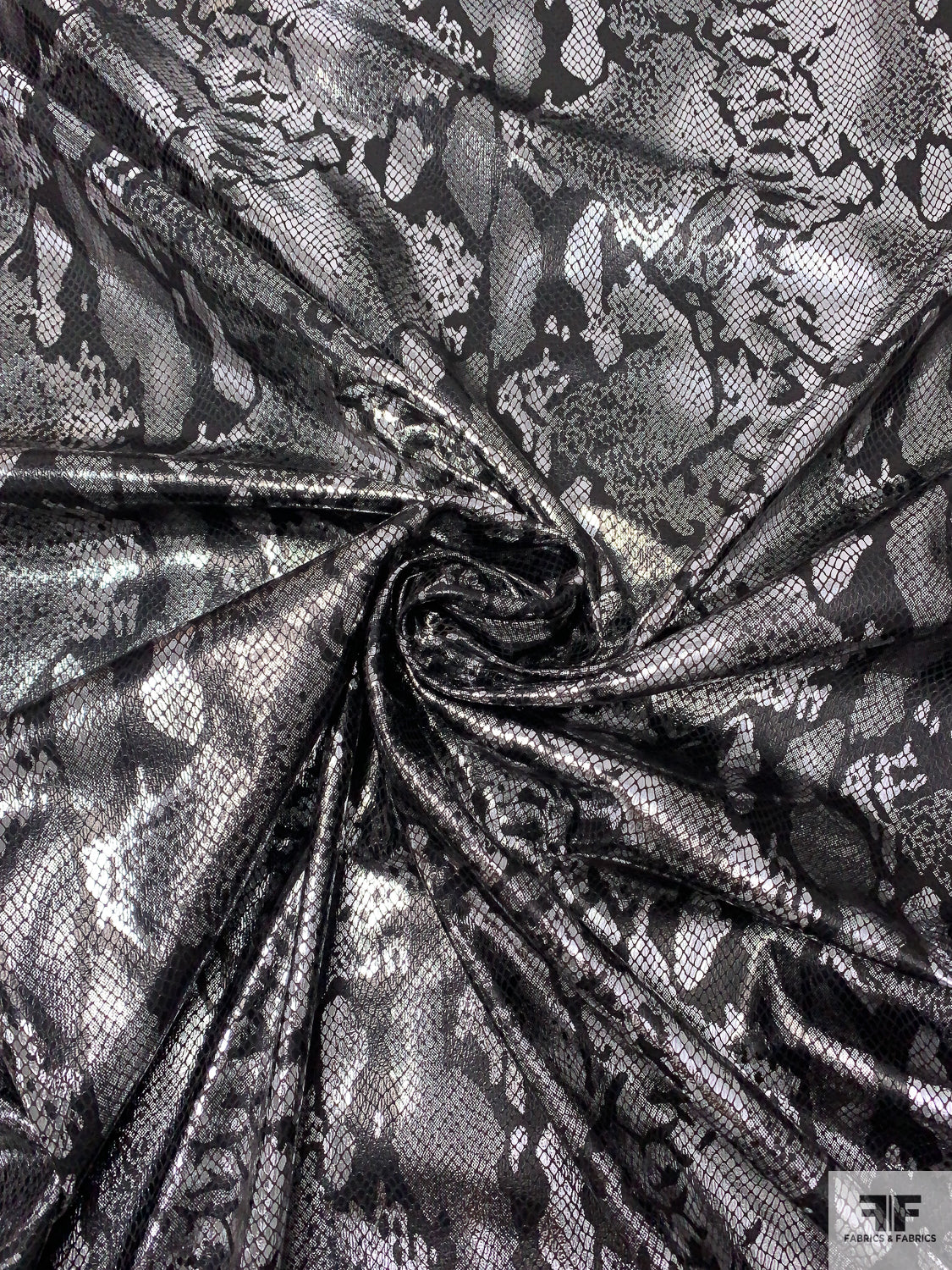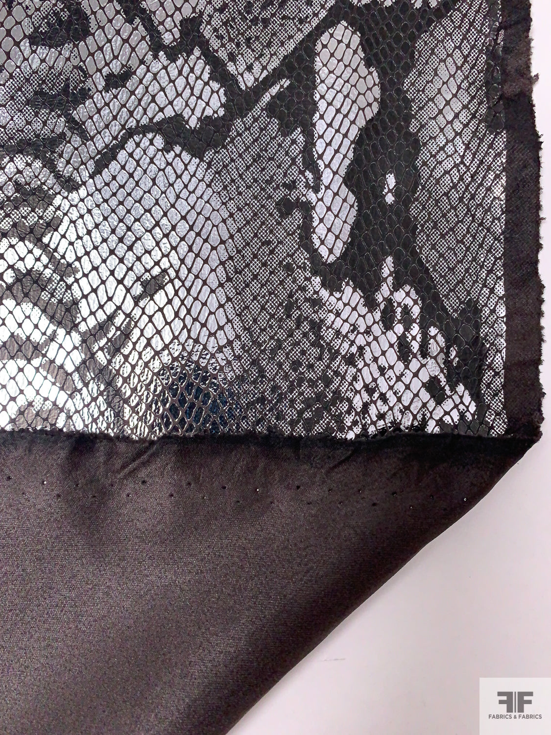 Snakeskin Foil Printed Microsuede - Silver / Black
