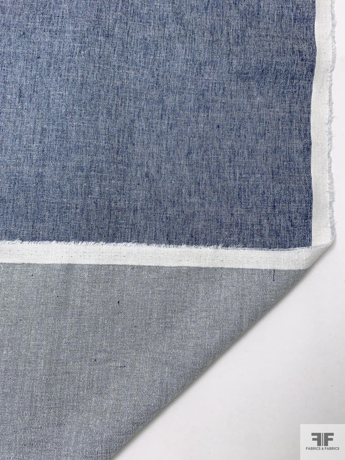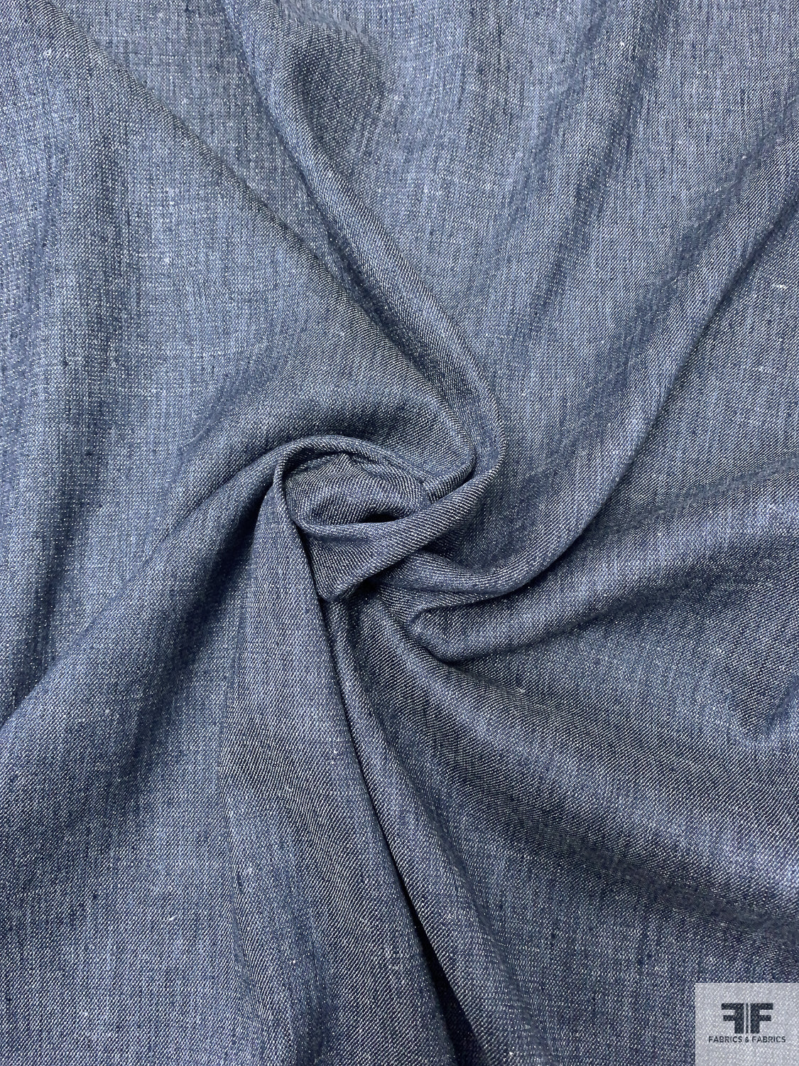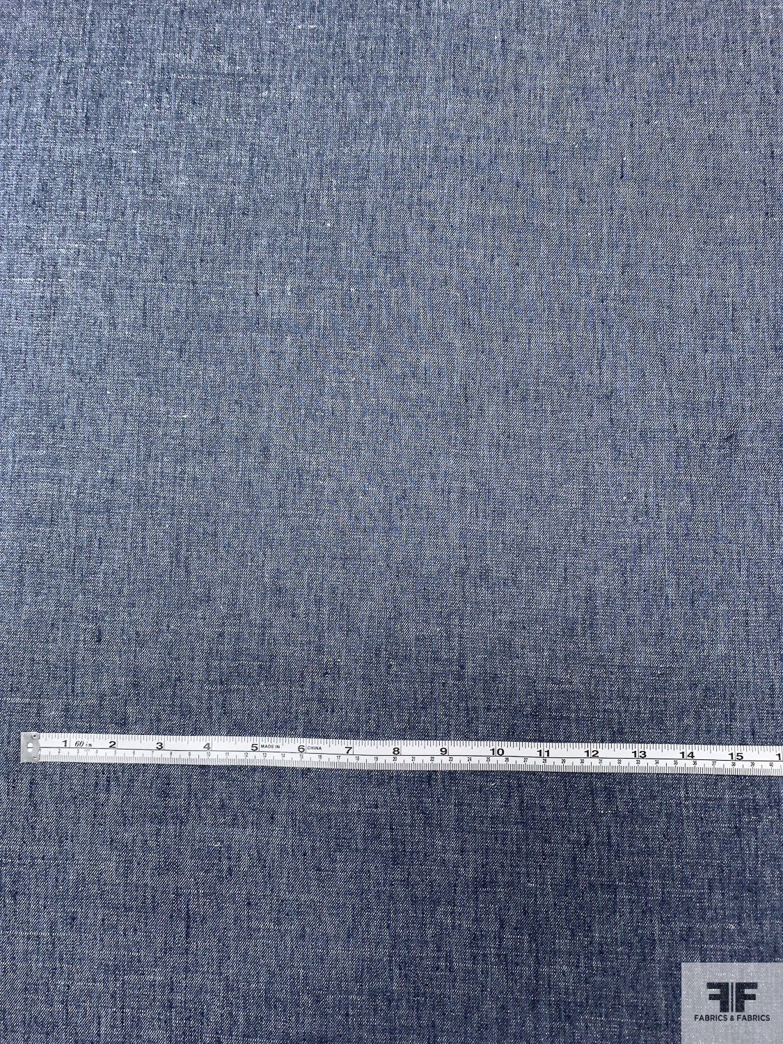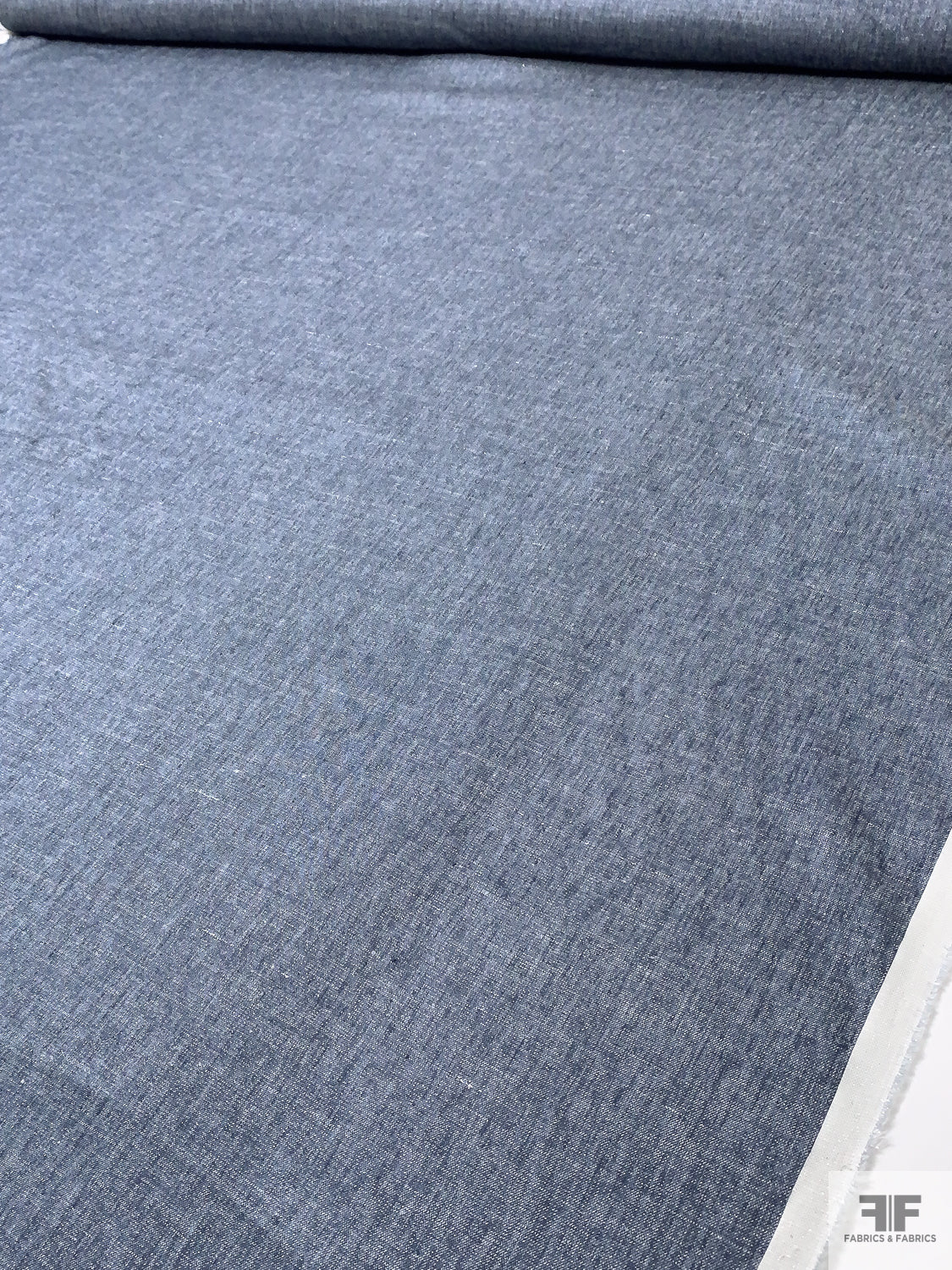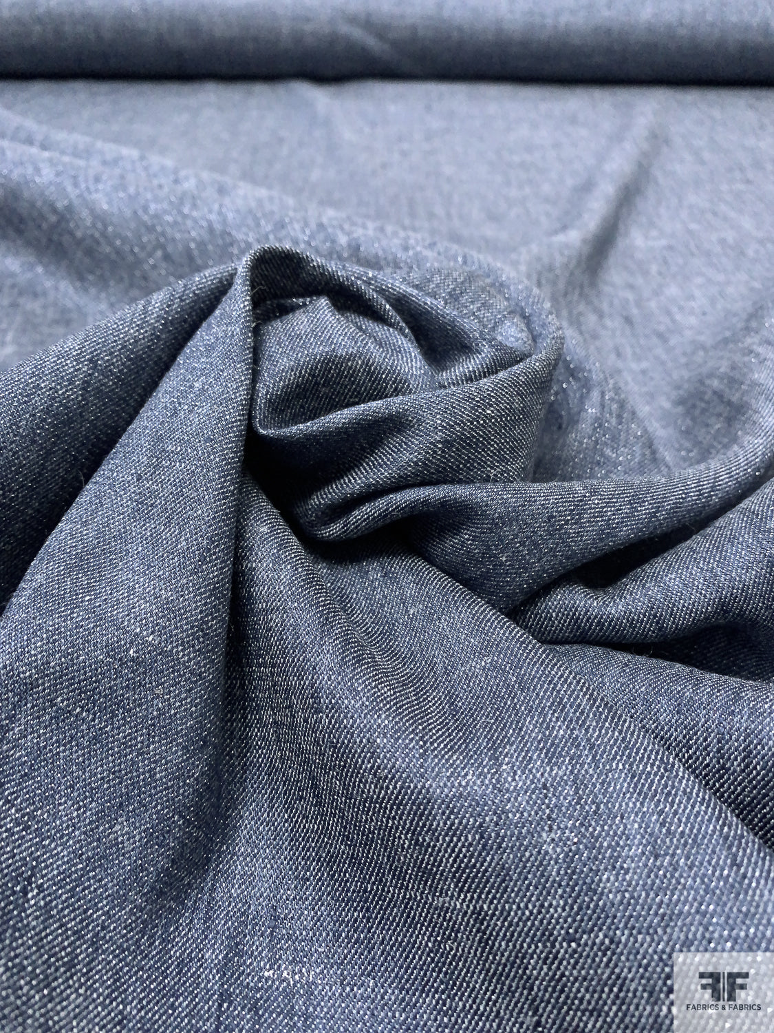 Italian Denim-Look Stretch Linen Blend with Shimmery Lurex Fibers - Blue / Off-White / Silver