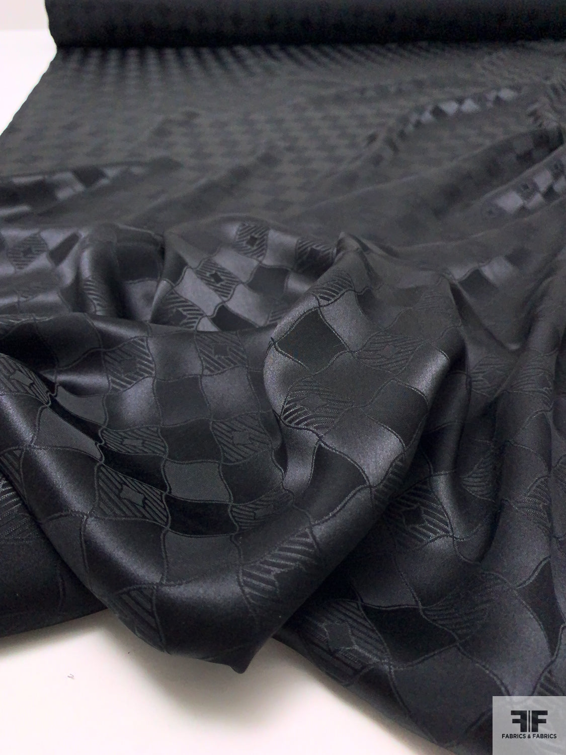 Wavy Diamond Jacquard Silk Charmeuse - Black
