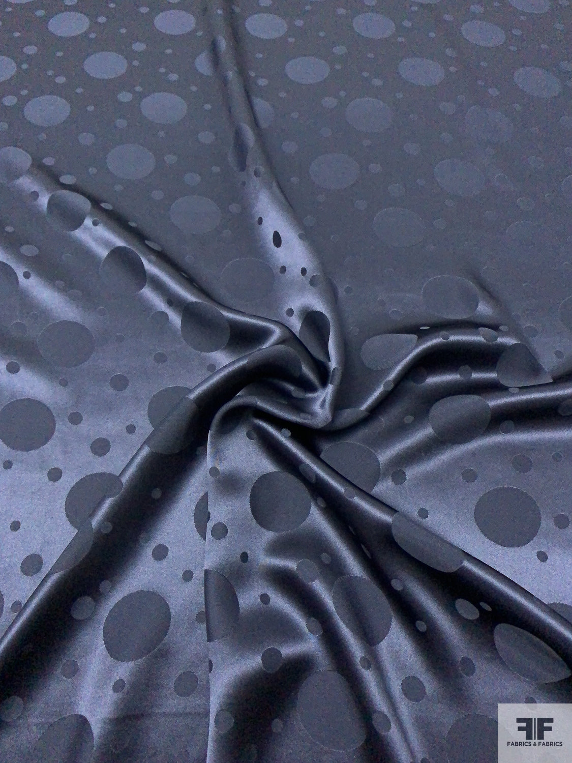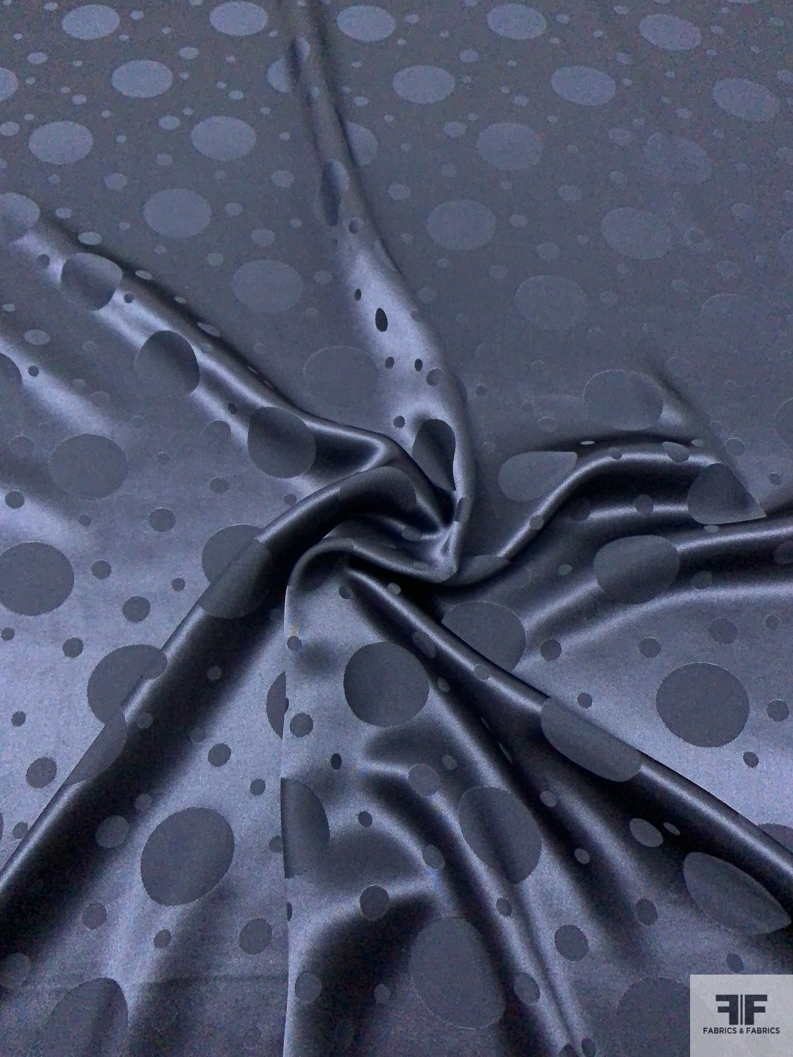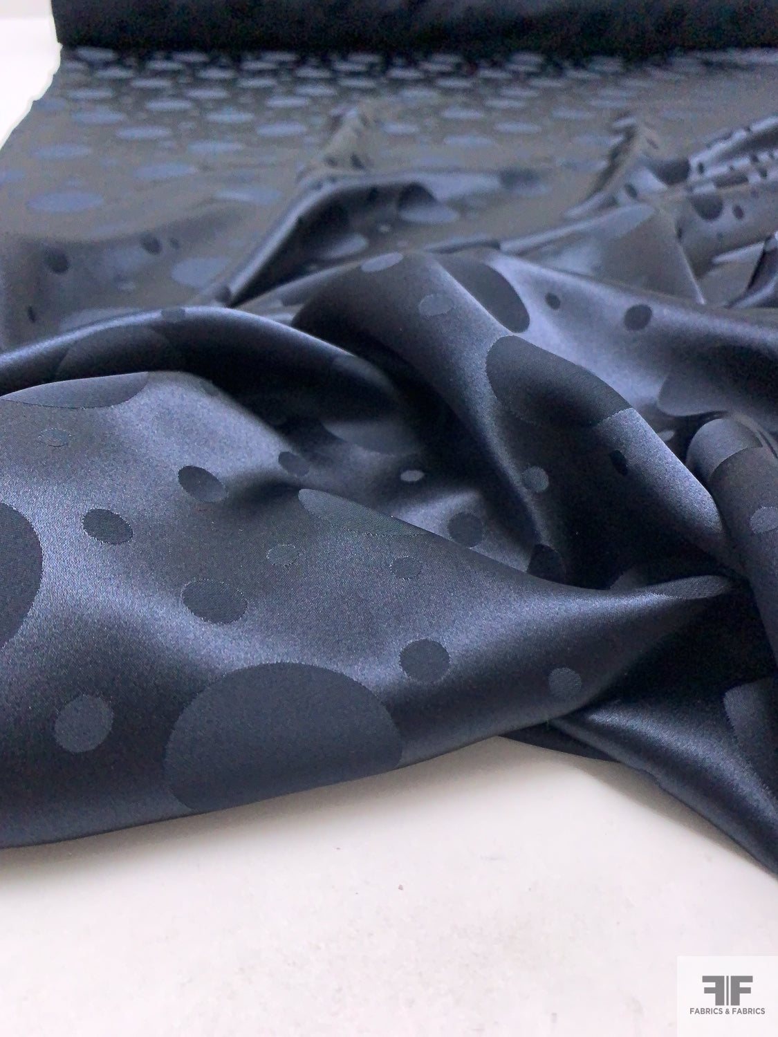 Polka Dot Circles Jacquard Silk Charmeuse - Dark Navy