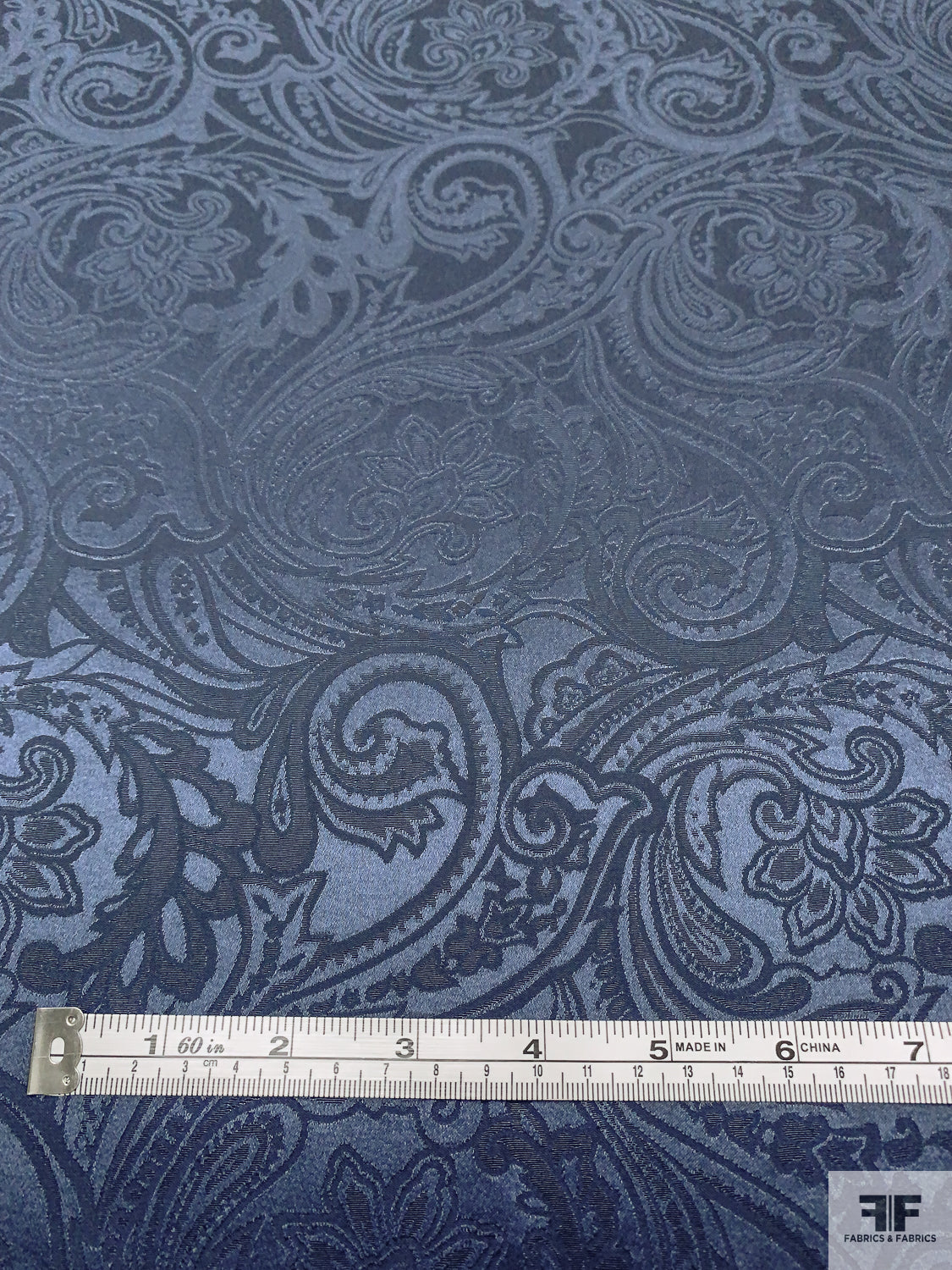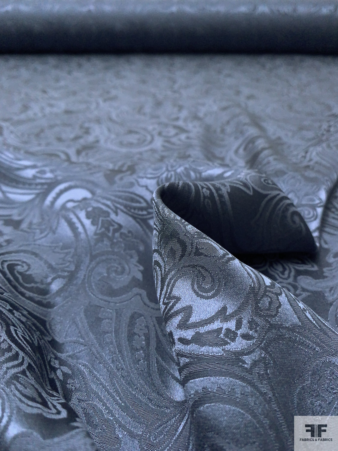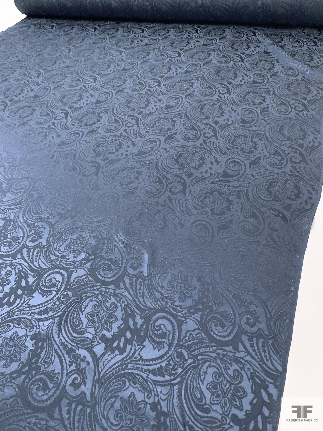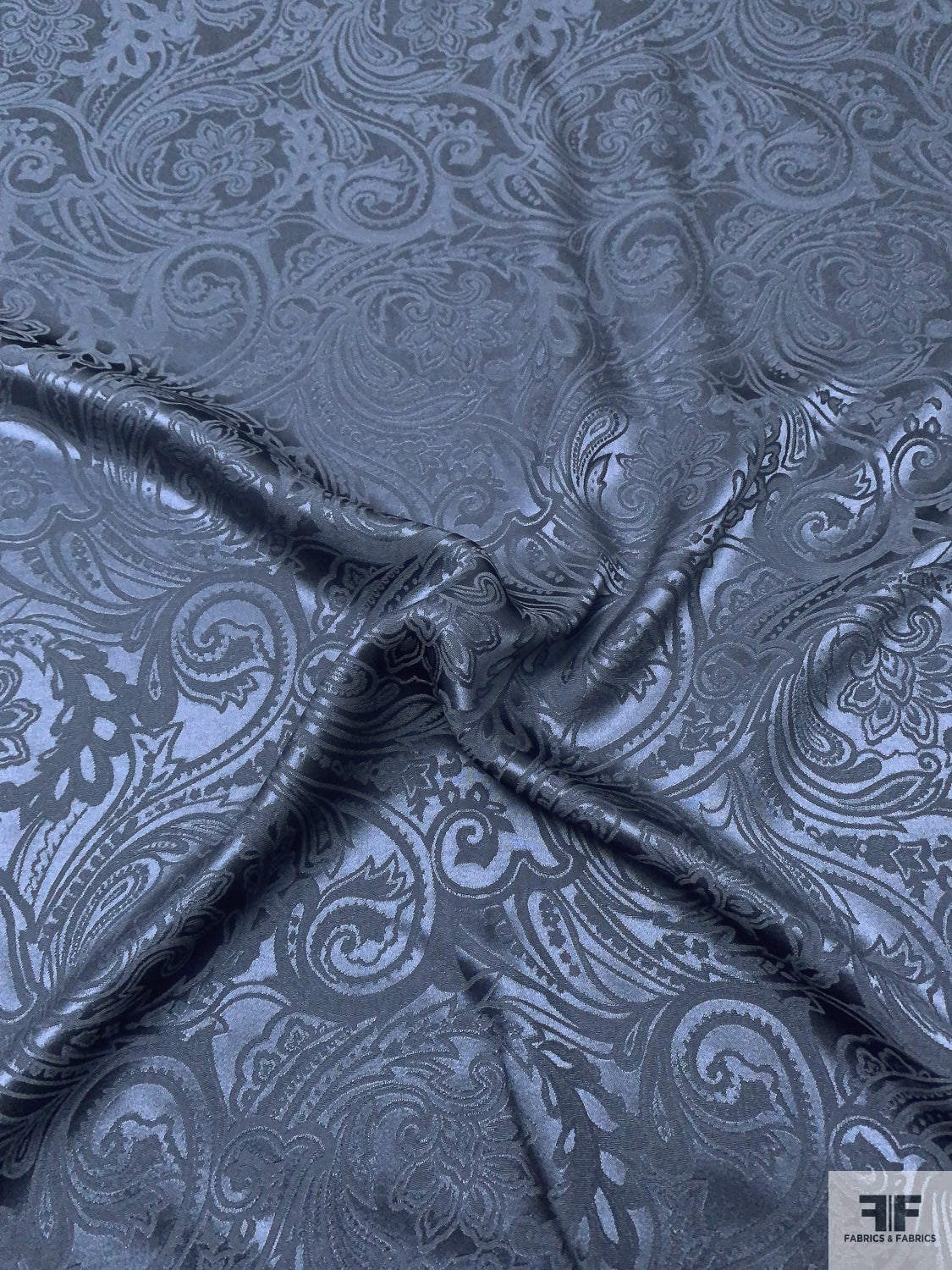 Paisley Jacquard Silk Charmeuse - Dark Blue-Grey