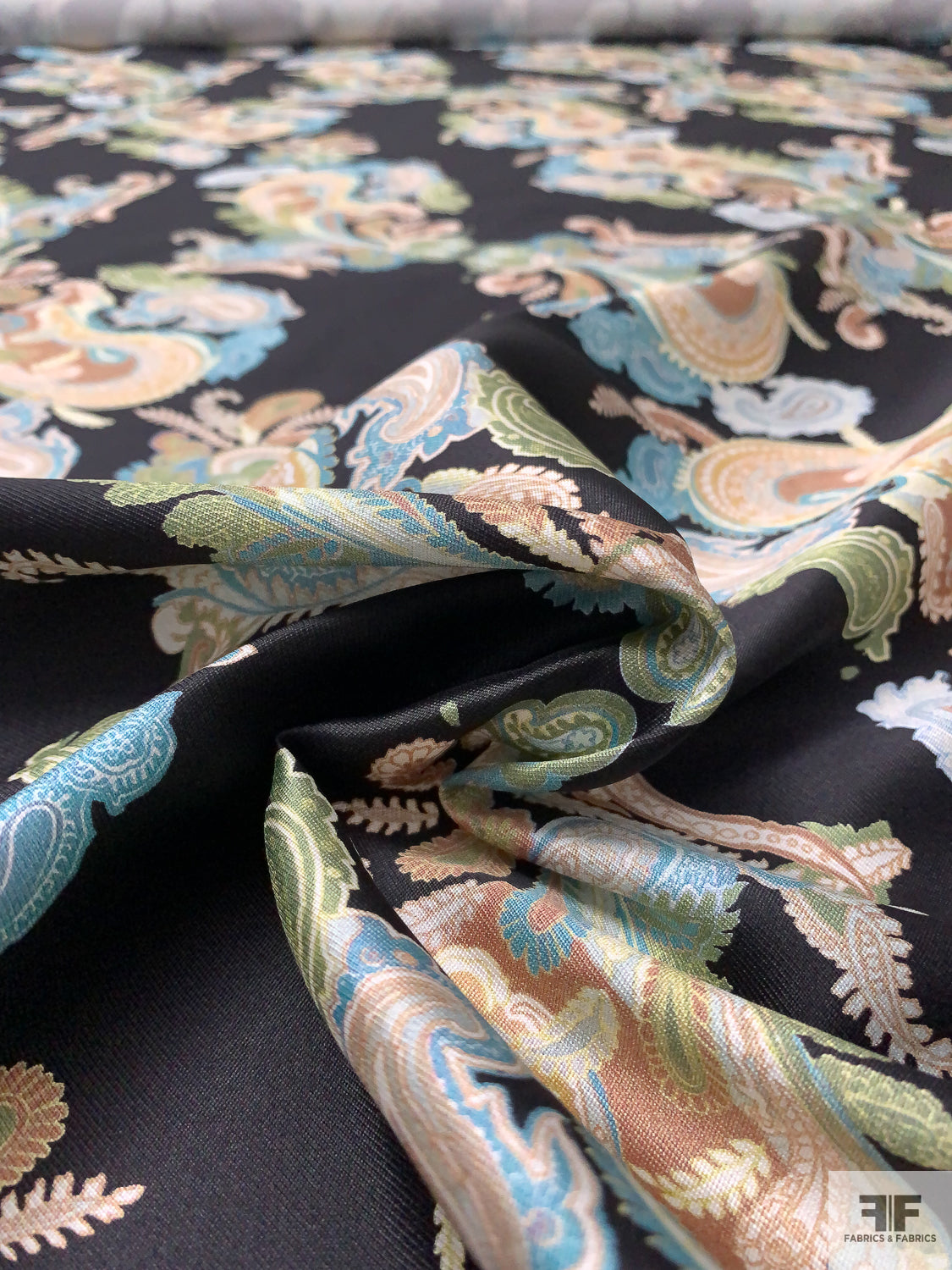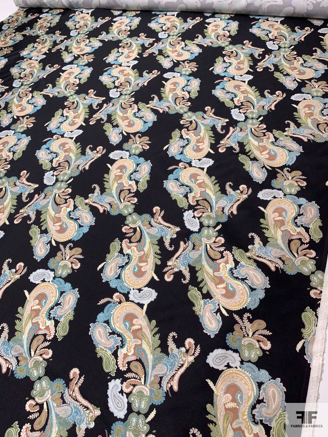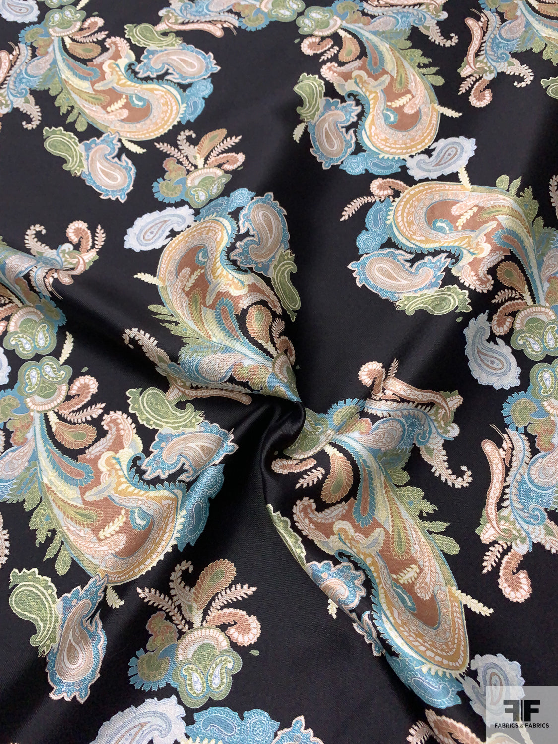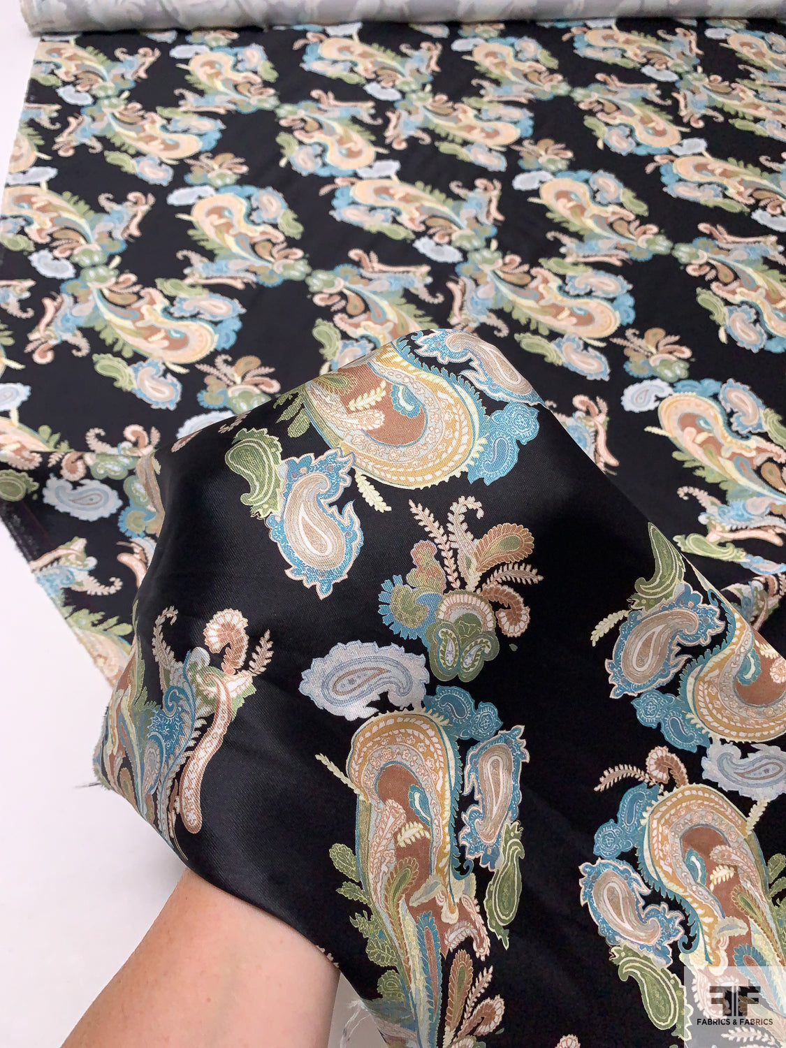 Paisley Printed Silk-Cotton Mikado - Sage / Dusty Turquoise / Tan / Black