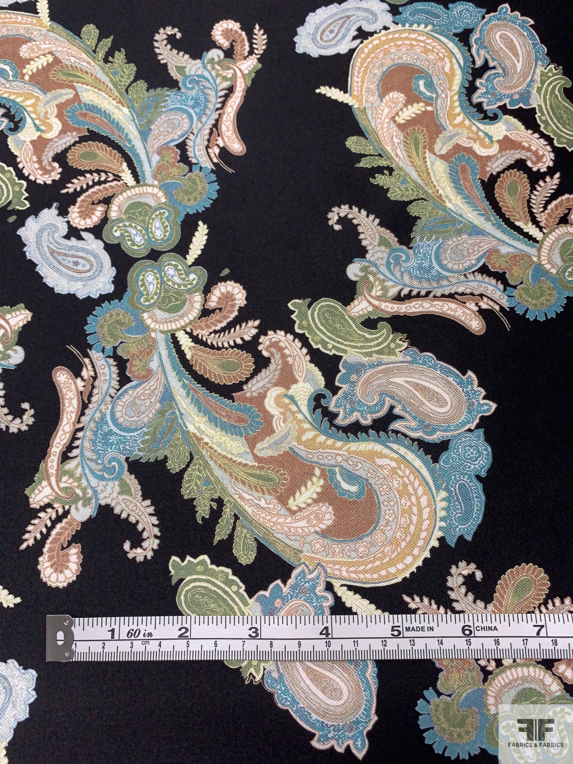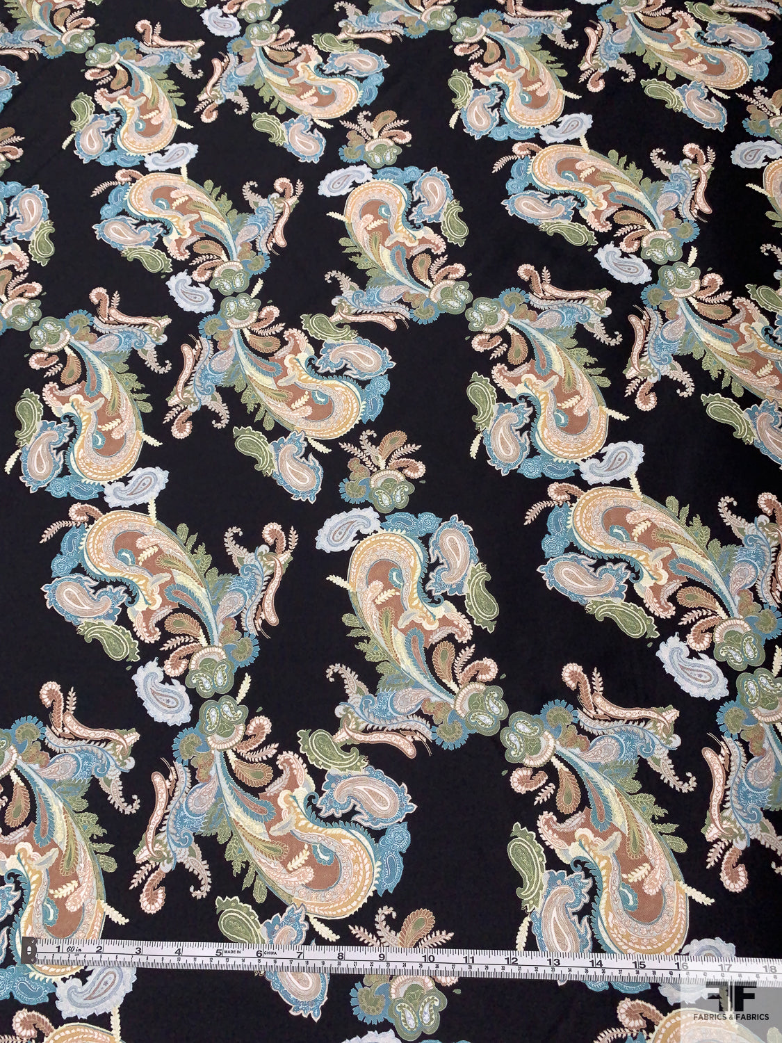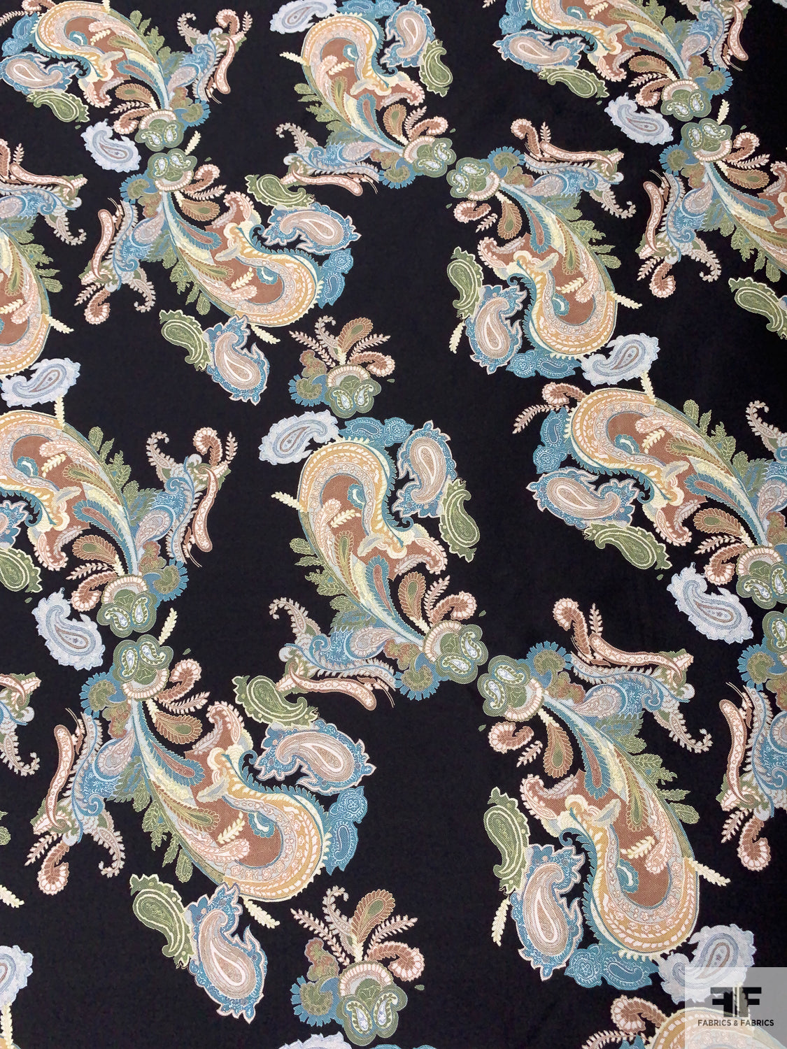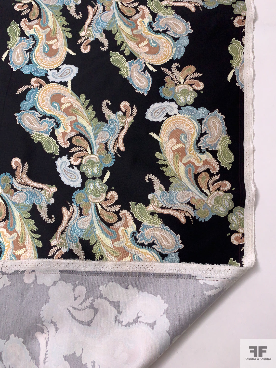 Paisley Printed Silk-Cotton Mikado - Sage / Dusty Turquoise / Tan / Black