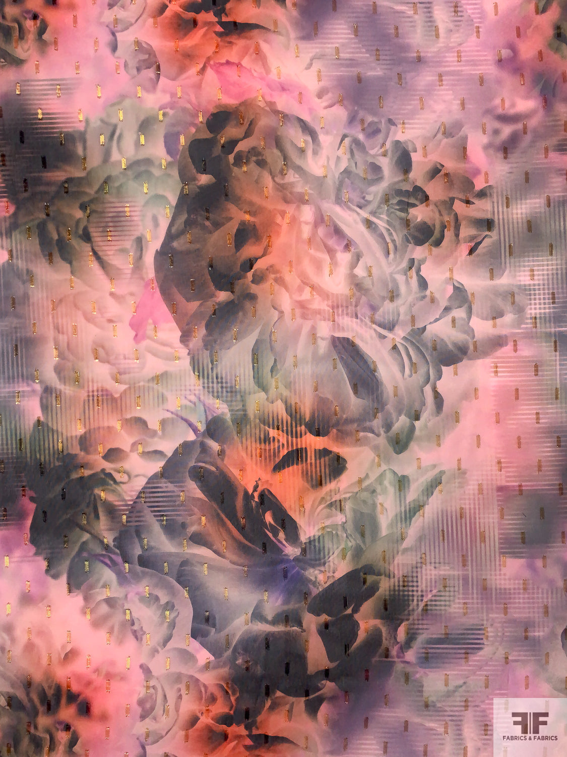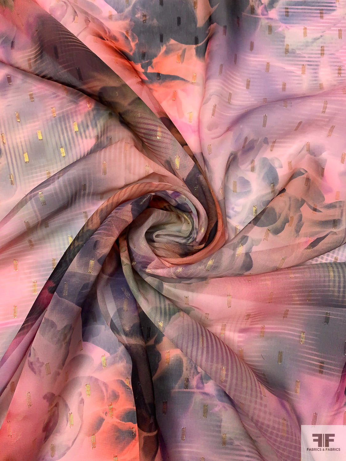 Dreamy Floral Printed Polyester Chiffon with Lurex Detailing - Peach / Pinks / Purple / Black / Rose Gold
