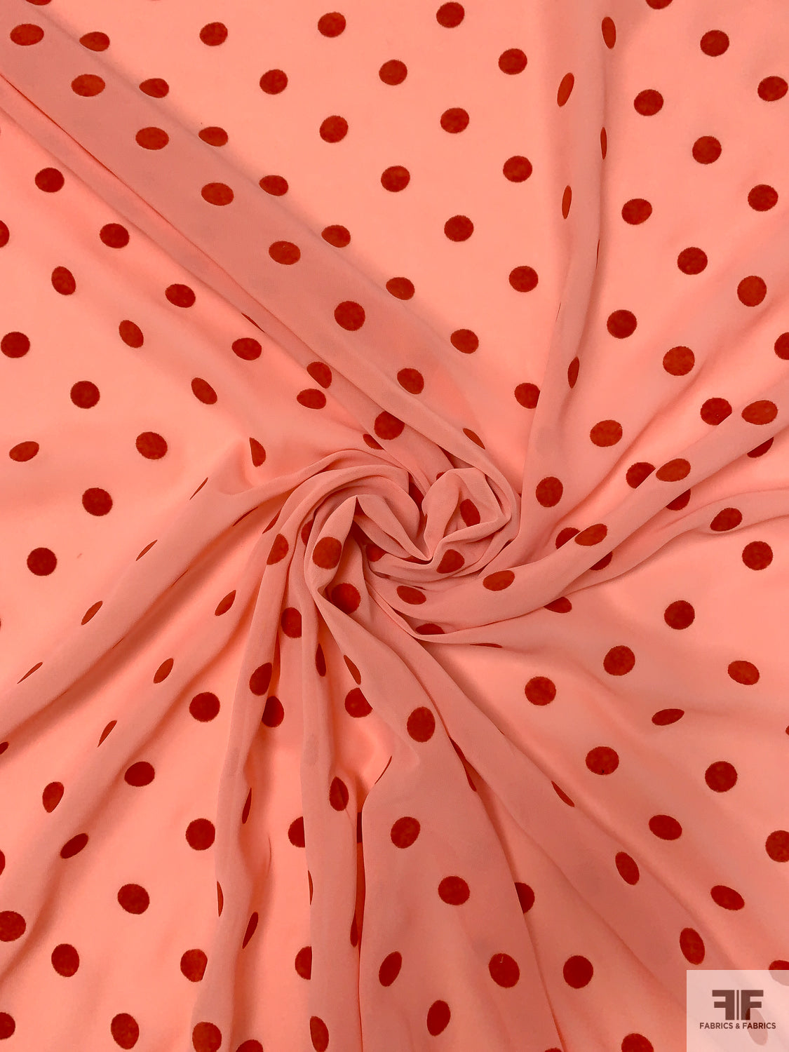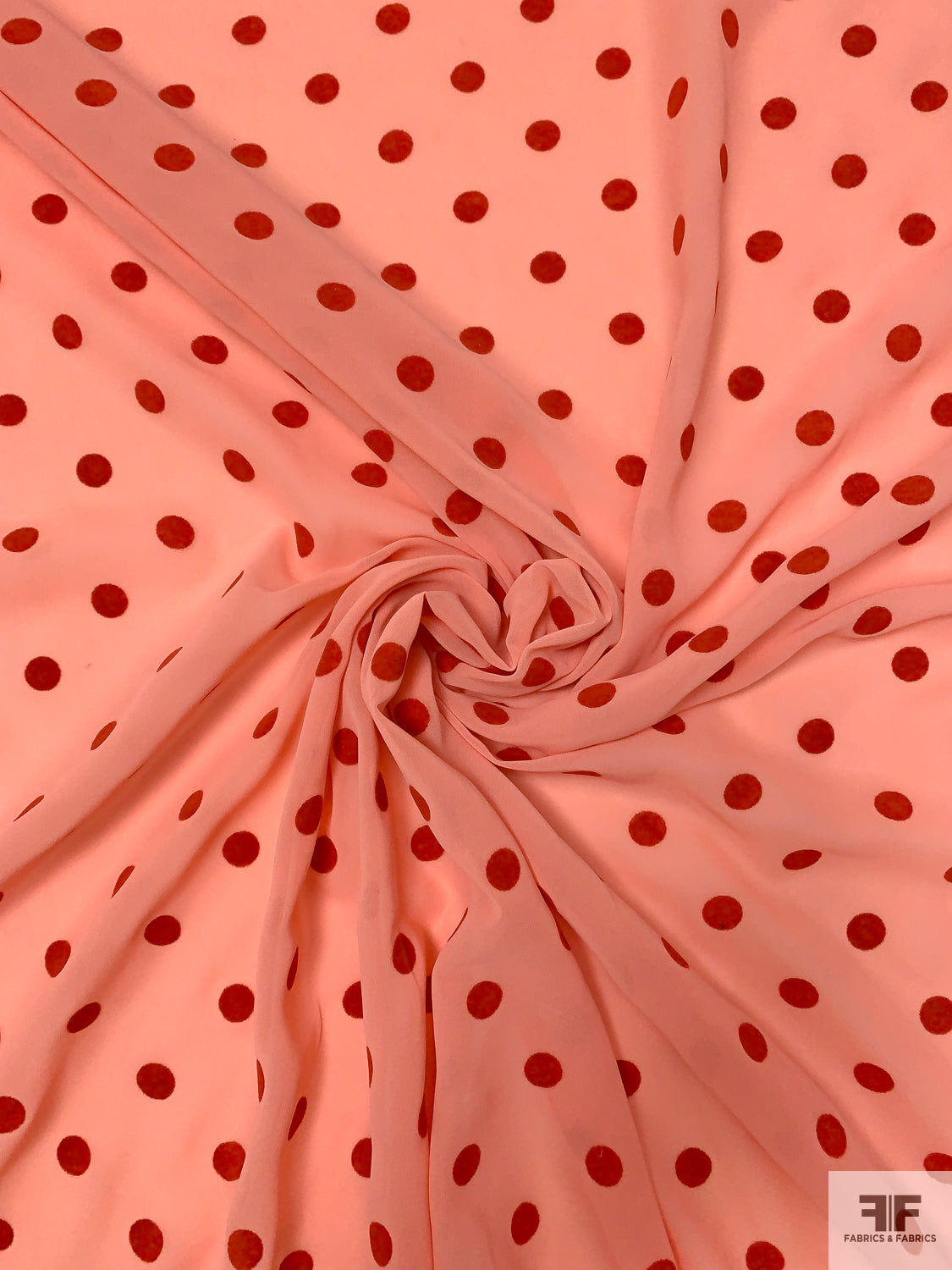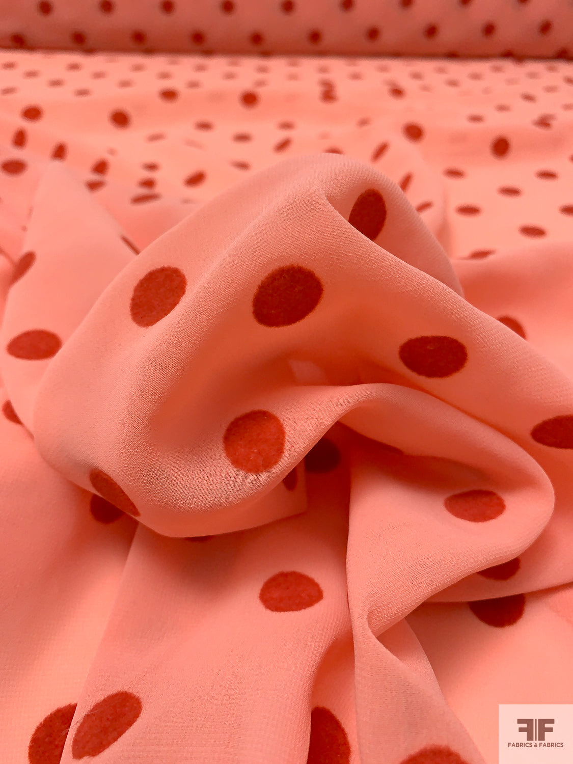 Flocked Polka Dot Polyester Chiffon - Peach / Coral