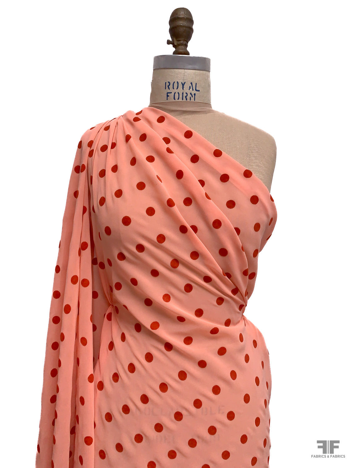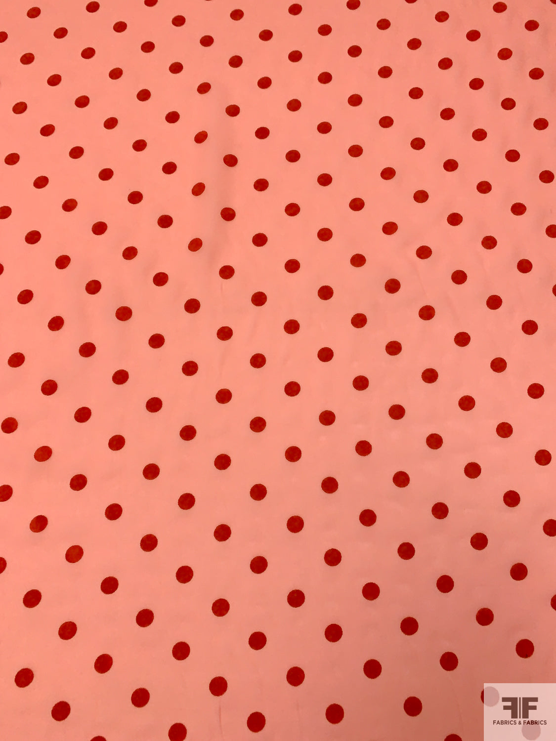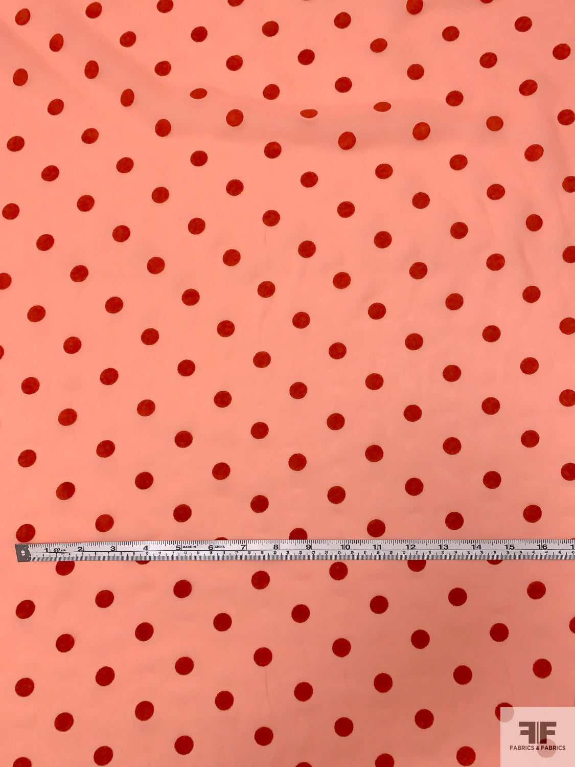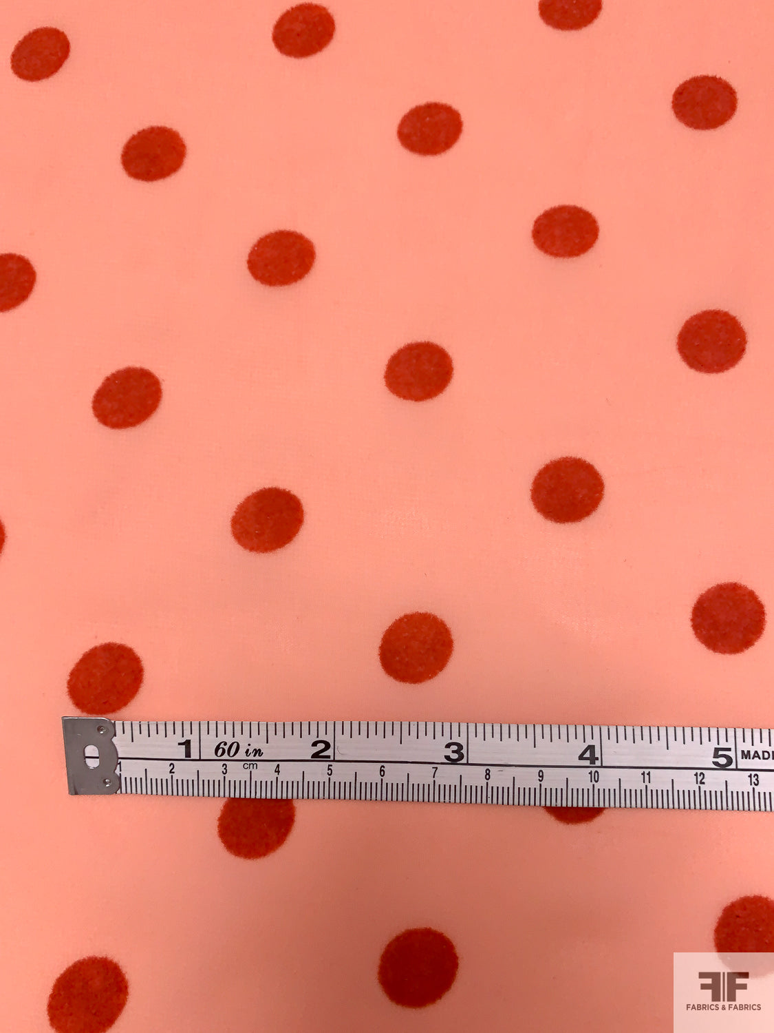 Flocked Polka Dot Polyester Chiffon - Peach / Coral