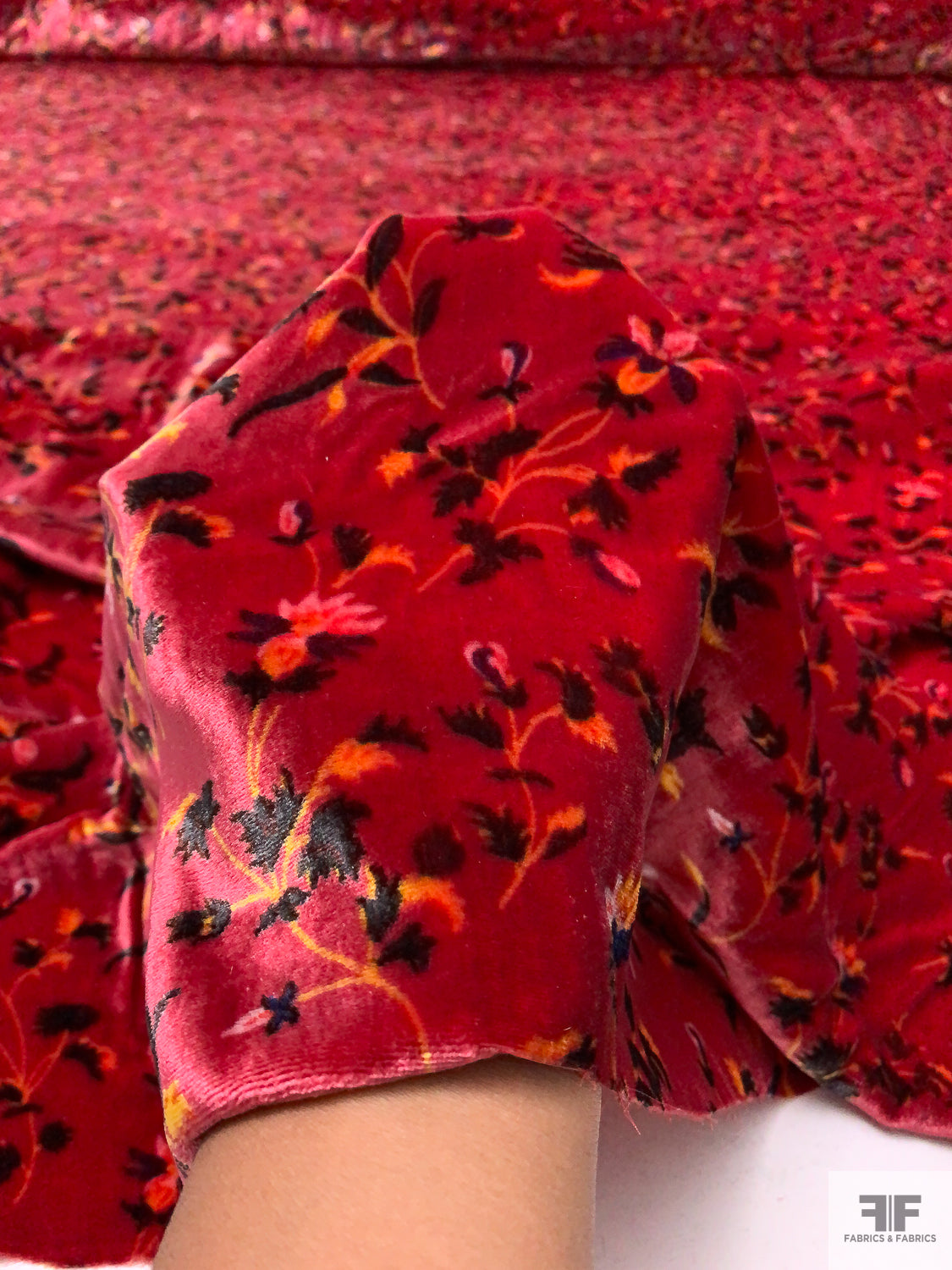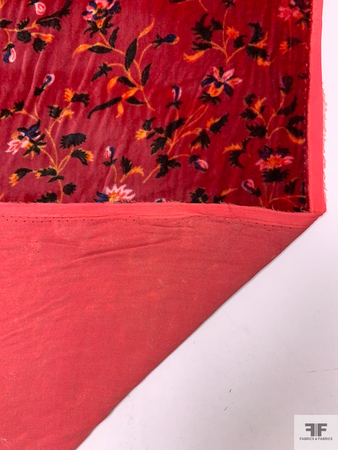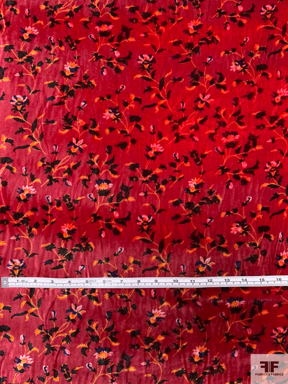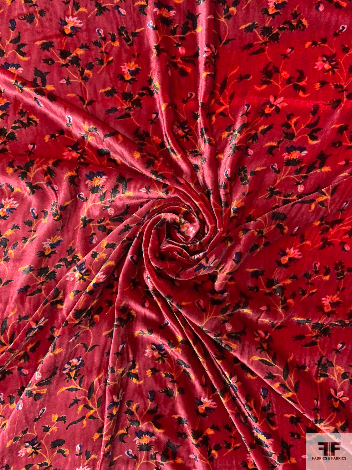 Floral Vine Printed Velvet - Deep Red / Amber / Navy / Black