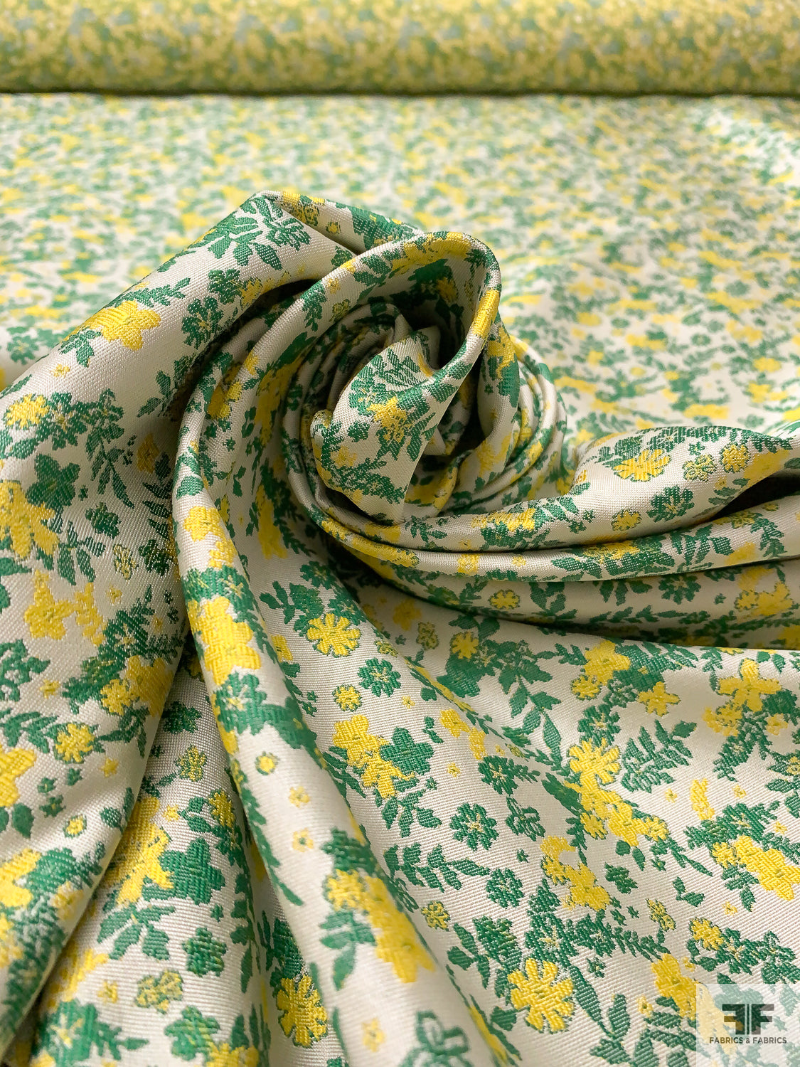 Ditsy Floral Brocade - Green / Yellow / Off-White
