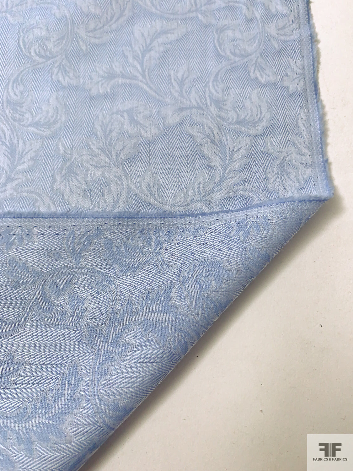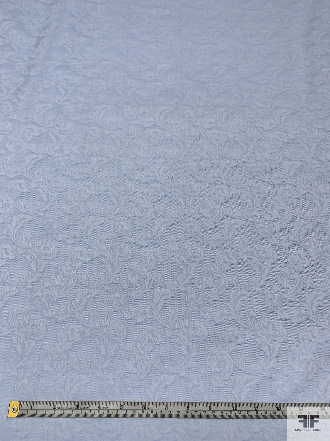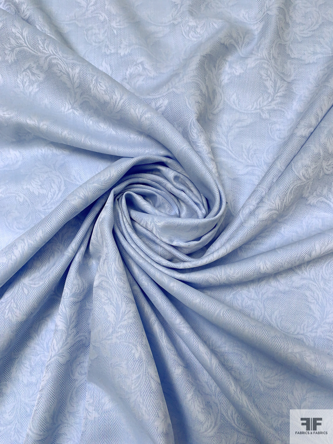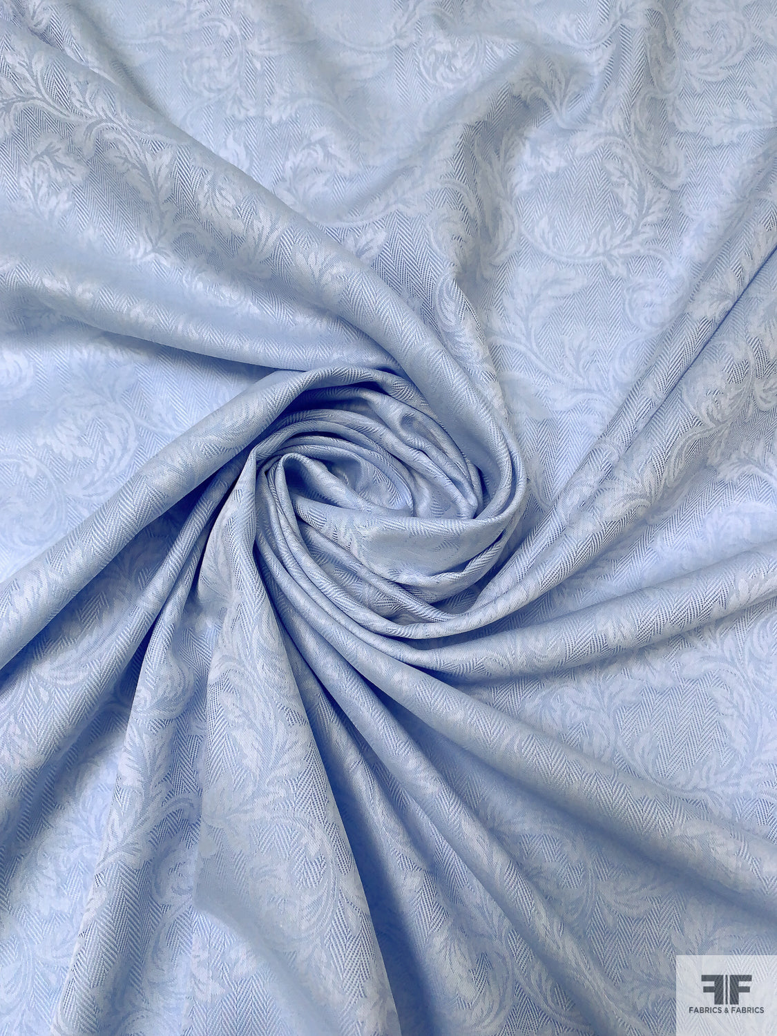 Italian Leaf Vine Herringbone Jacquard Cotton Shirting - Soft Blue