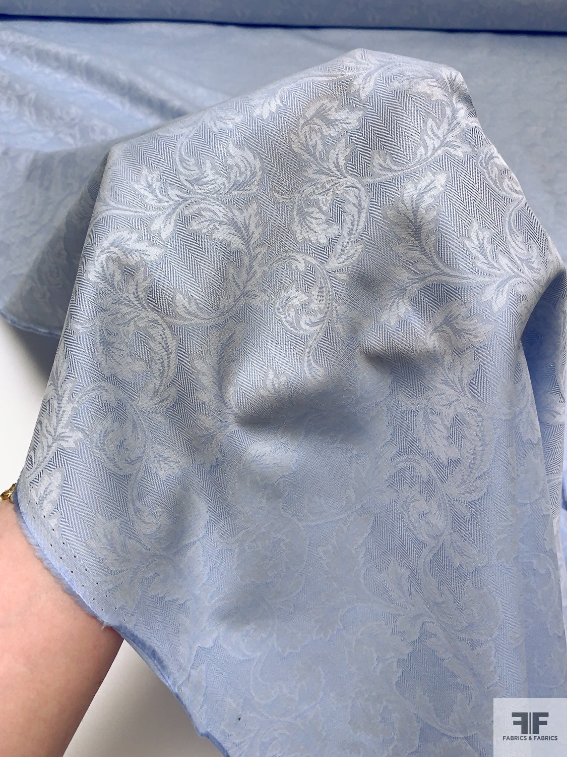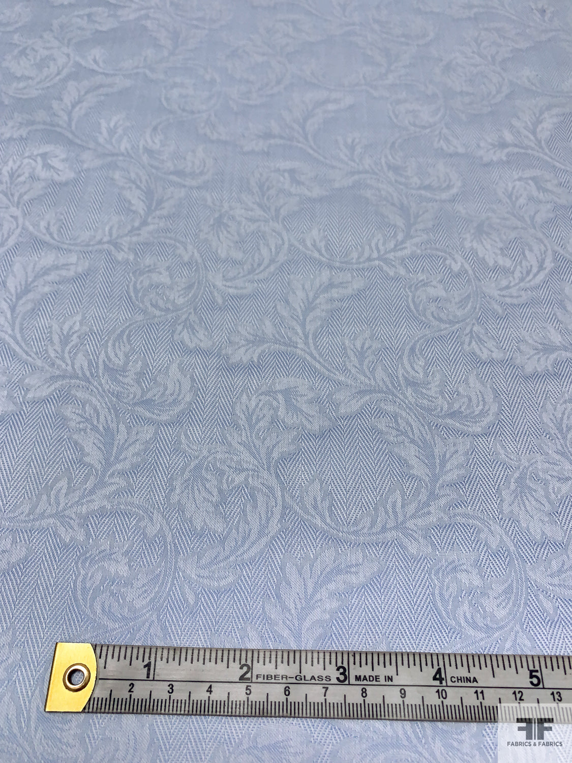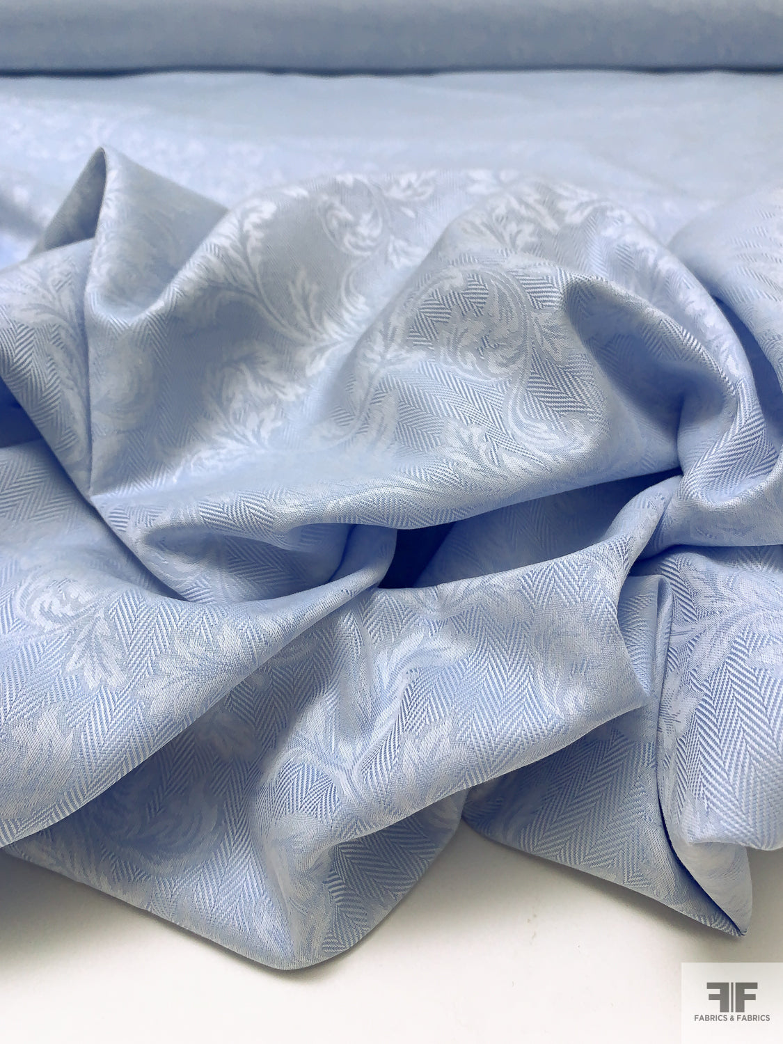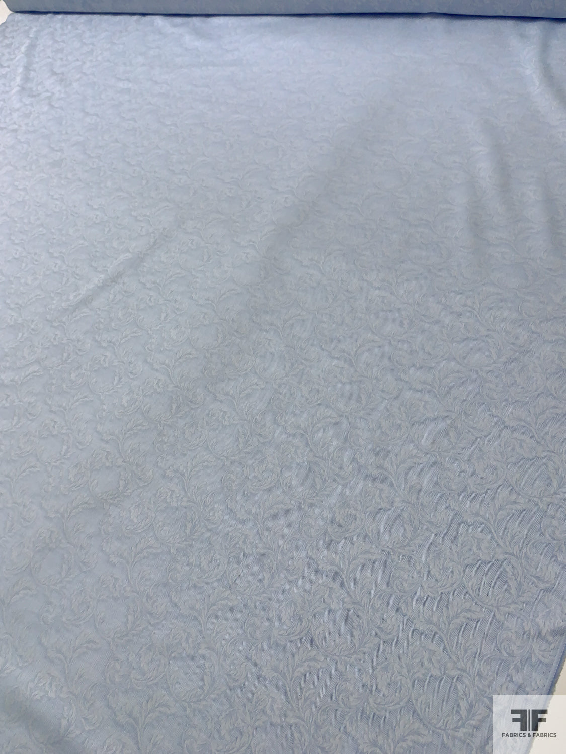 Italian Leaf Vine Herringbone Jacquard Cotton Shirting - Soft Blue