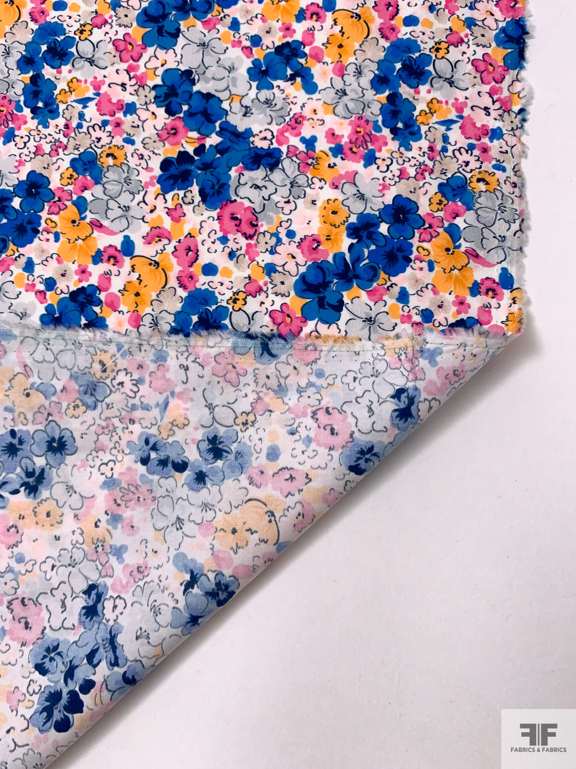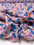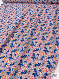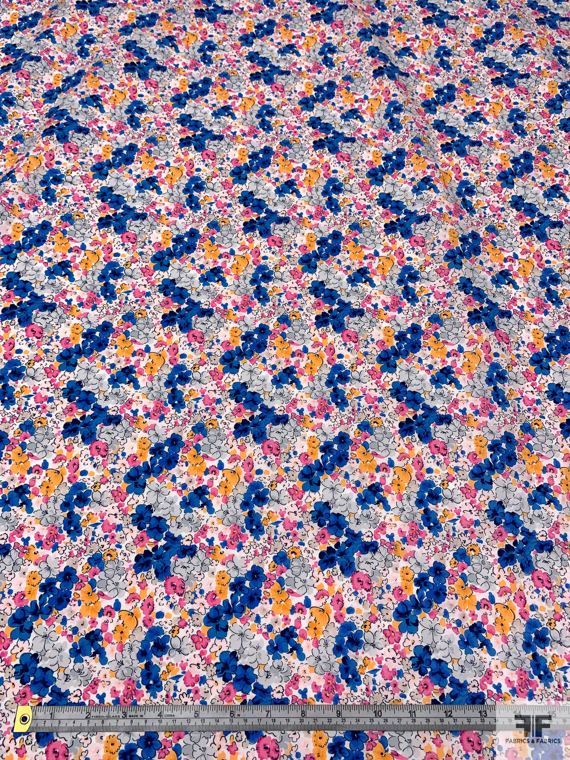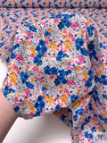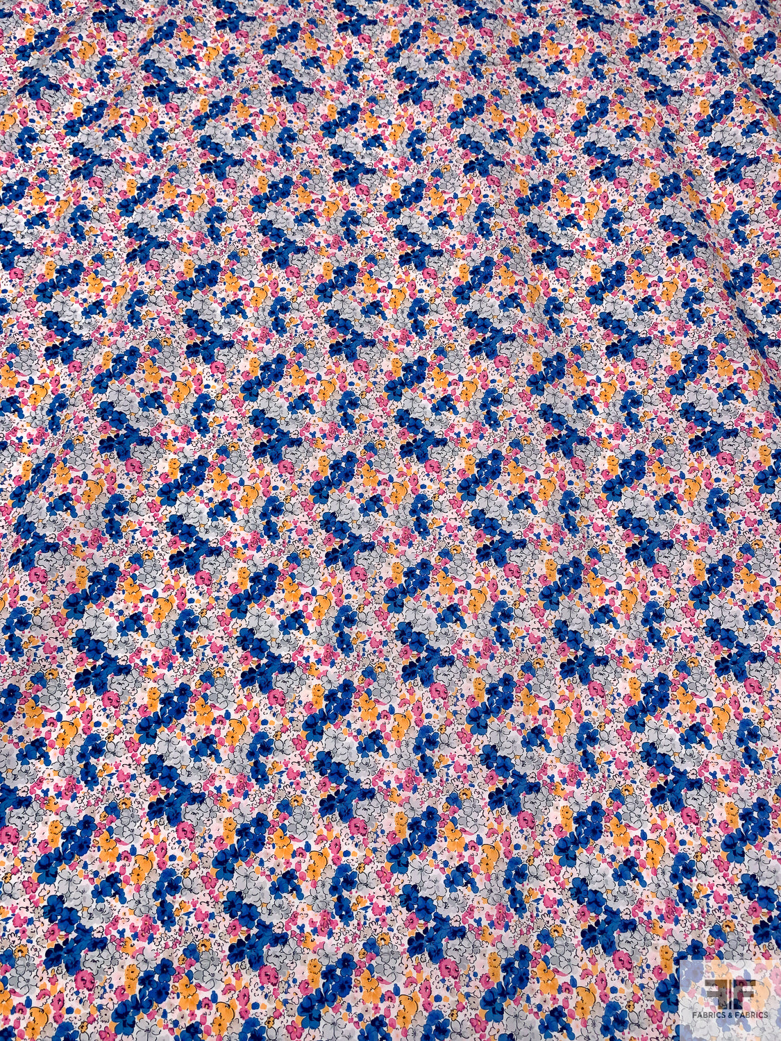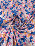 Painterly Floral Printed Cotton Shirting - Blue / Orange / Pinks / Grey / White