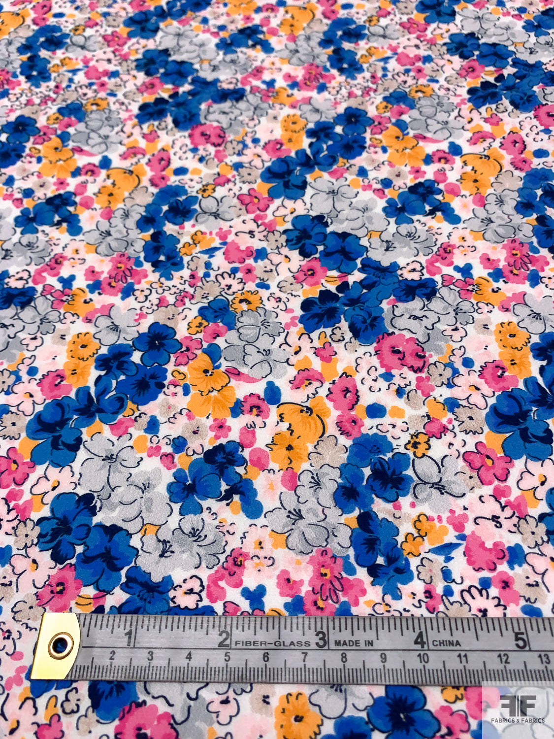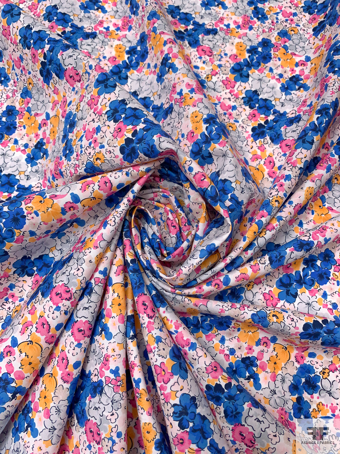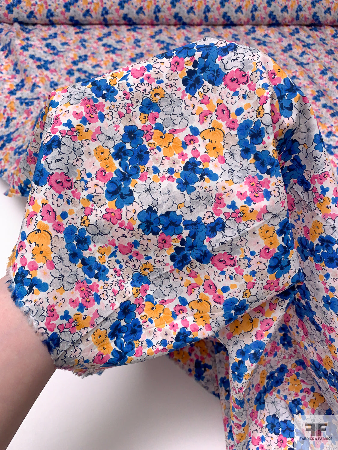 Painterly Floral Printed Cotton Shirting - Blue / Orange / Pinks / Grey / White