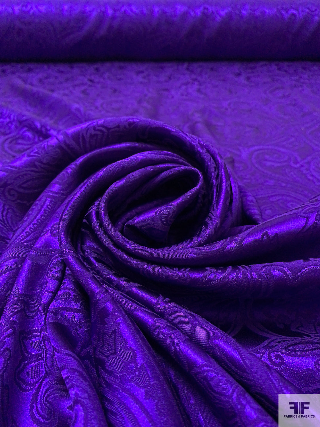 Paisley Jacquard Silk Charmeuse - Royal Indigo