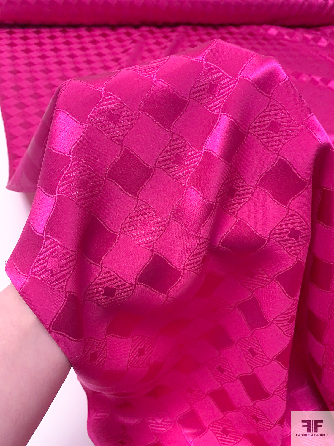 Wavy Diamond Jacquard Silk Charmeuse - Dark Magenta