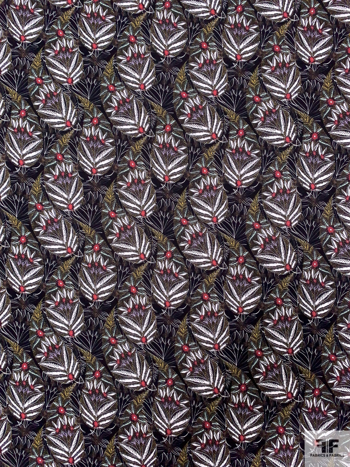 Blooming Leaves Matte-Side Printed Silk Charmeuse - Black / Off-White / Turmeric / Deep Raspberry