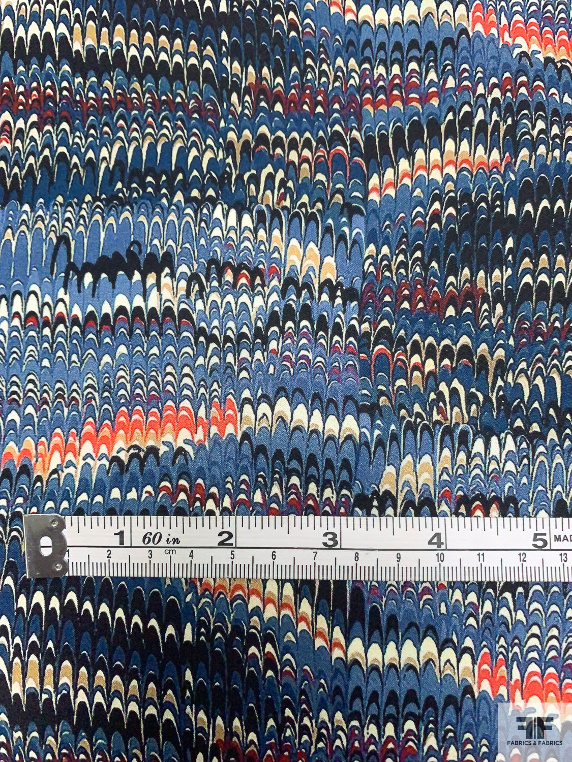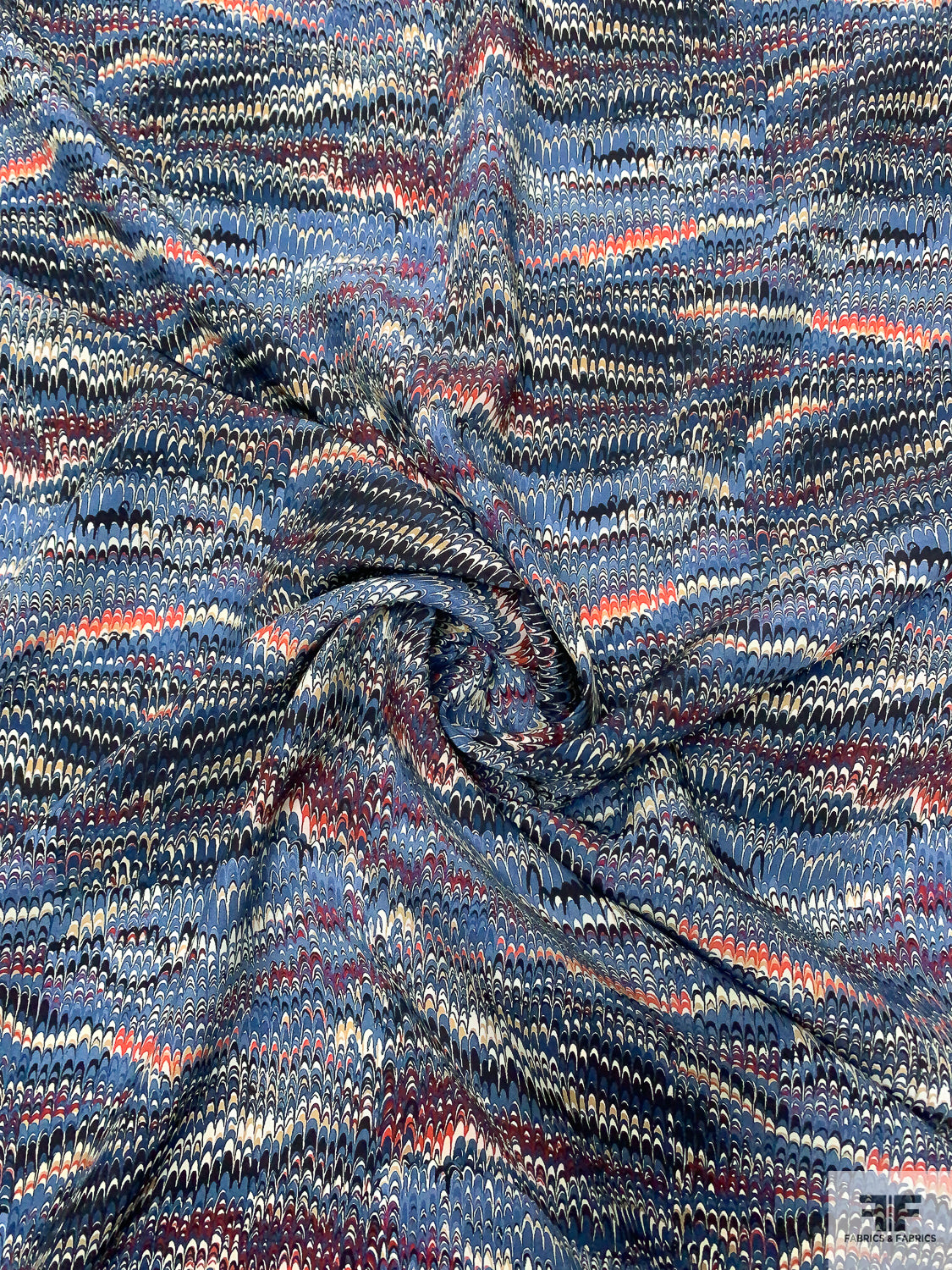 Ripple Wave Matte-Side Printed Silk Charmeuse - Cadet Blue / Multicolor