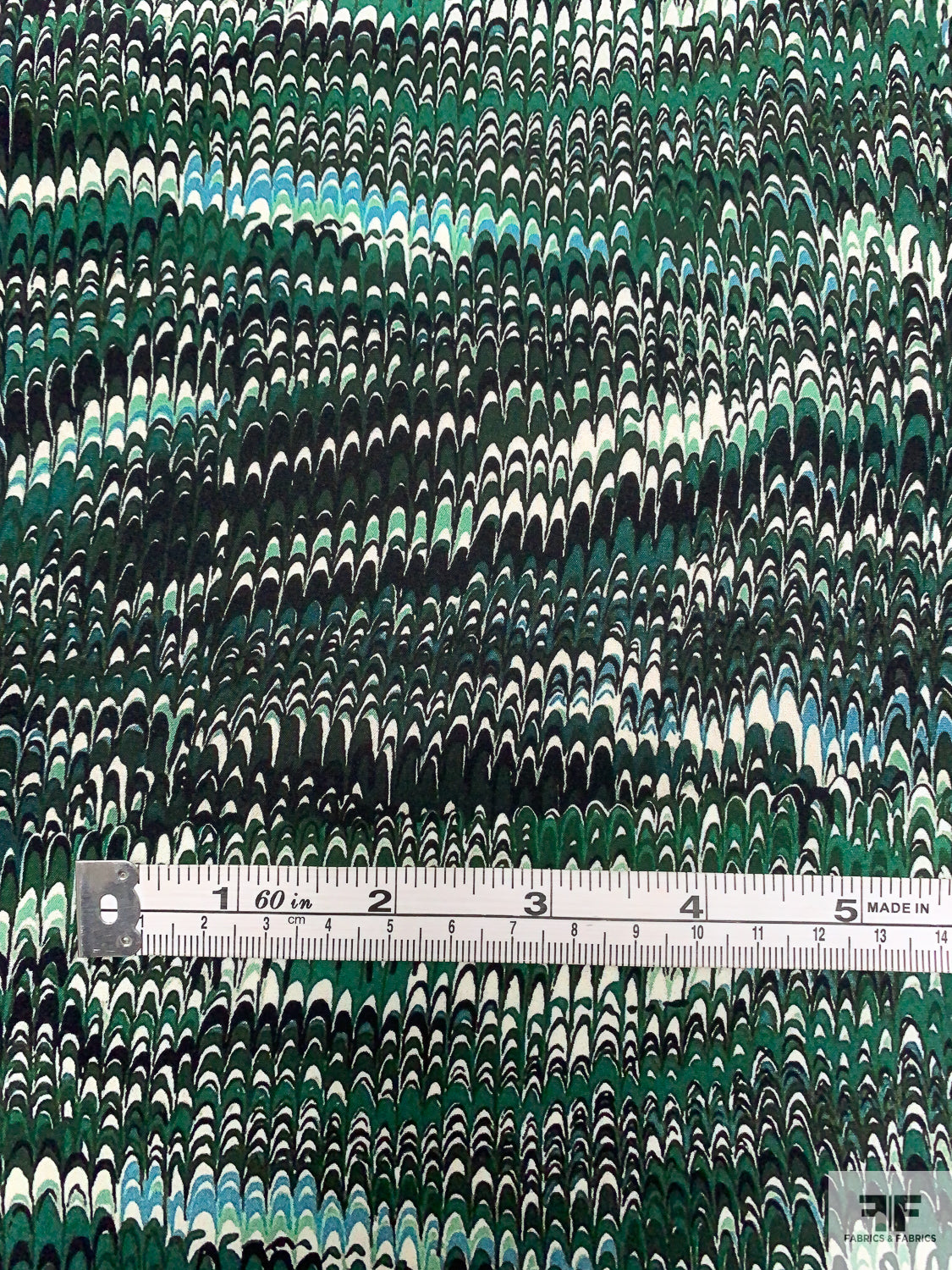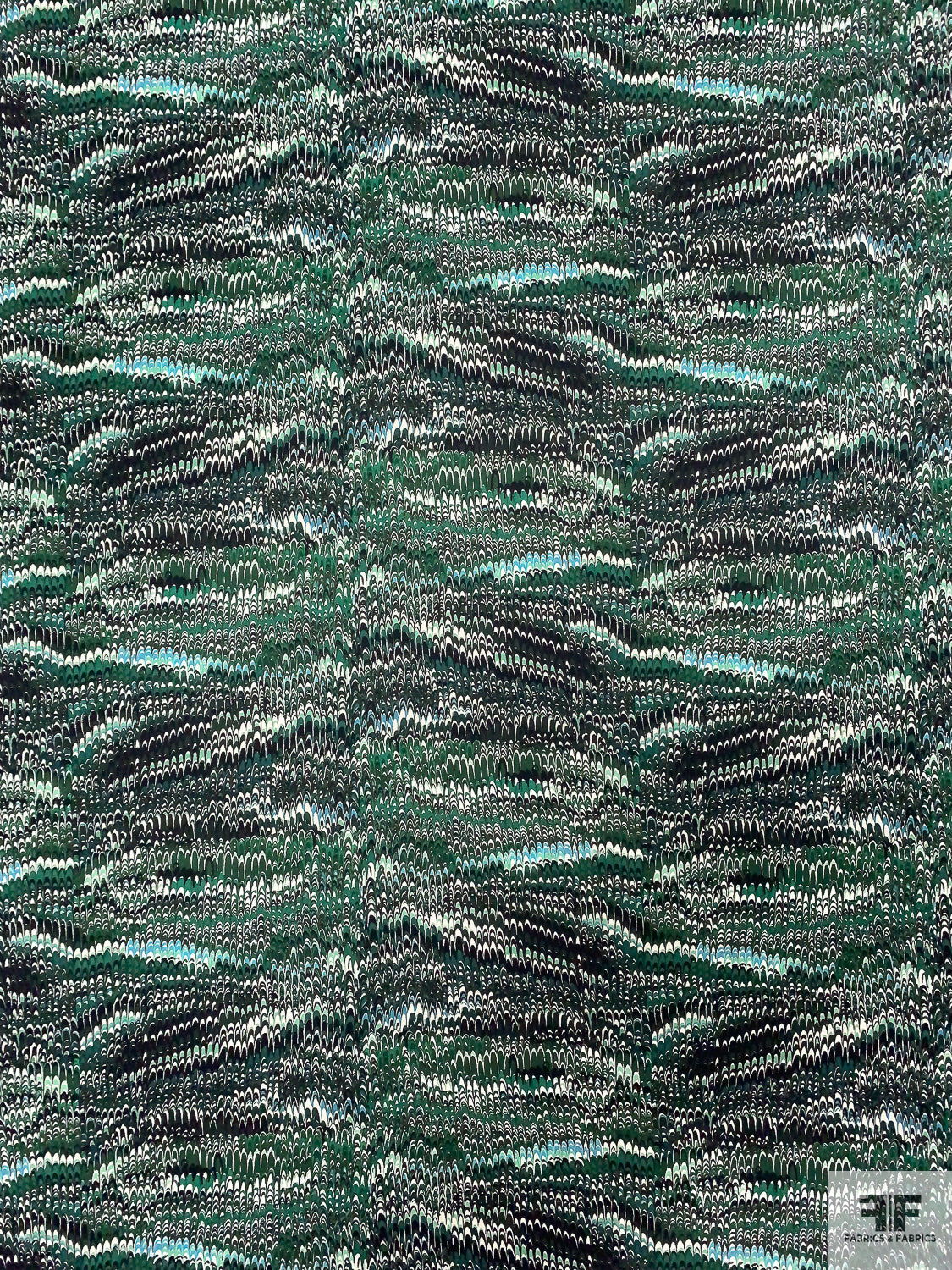 Ripple Wave Matte-Side Printed Silk Charmeuse - Greens / Black / Off-White