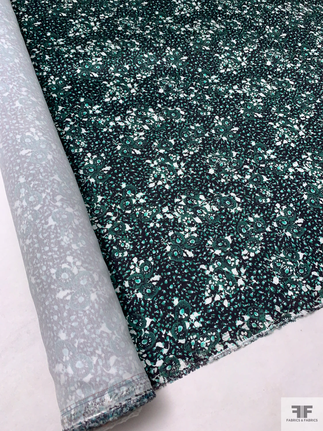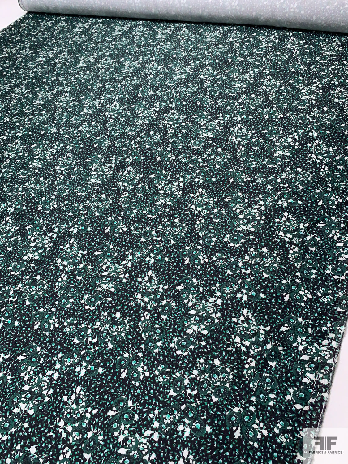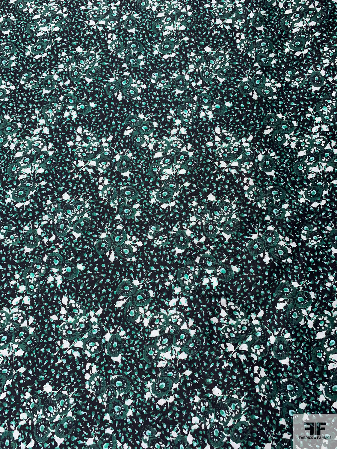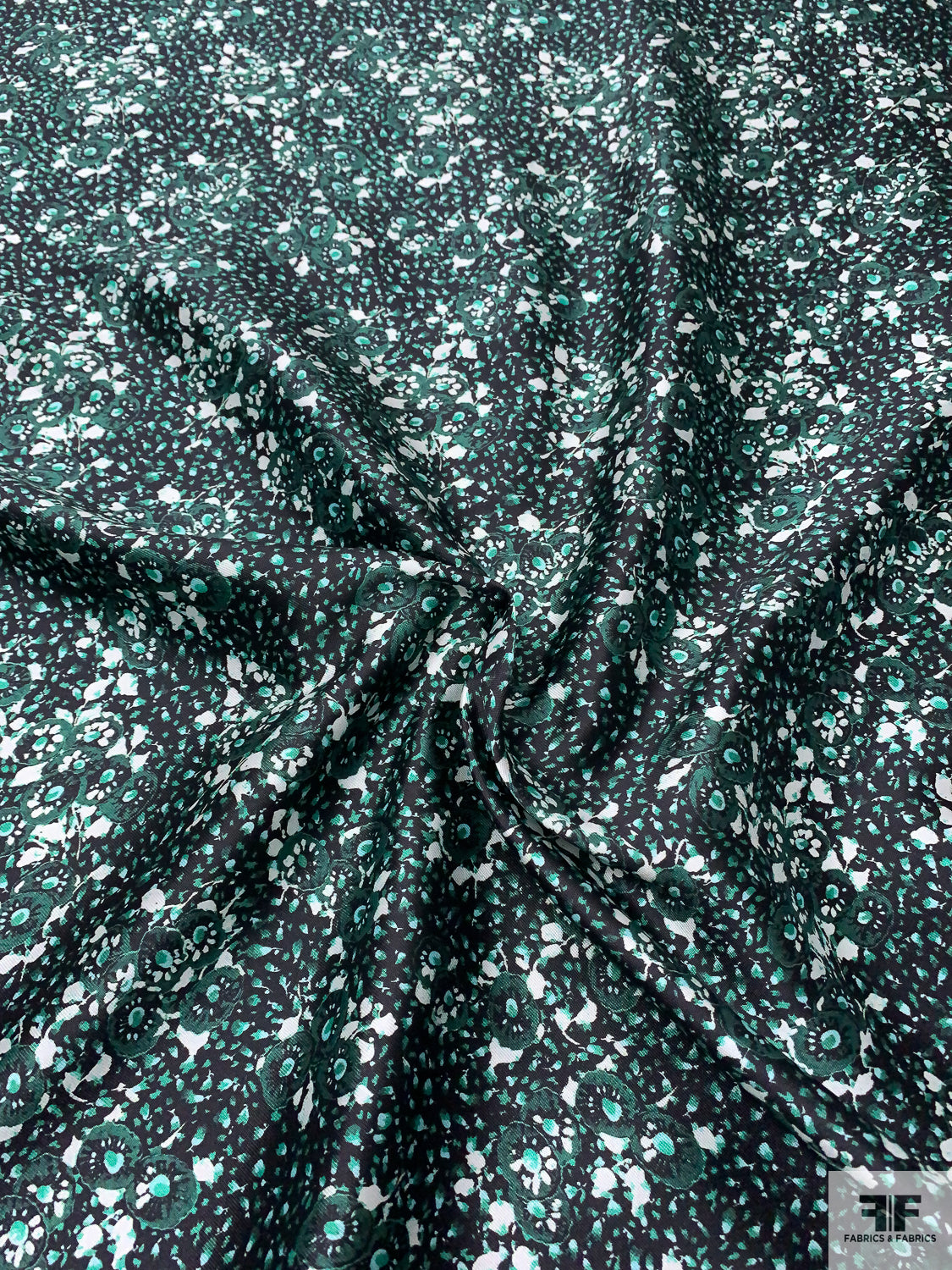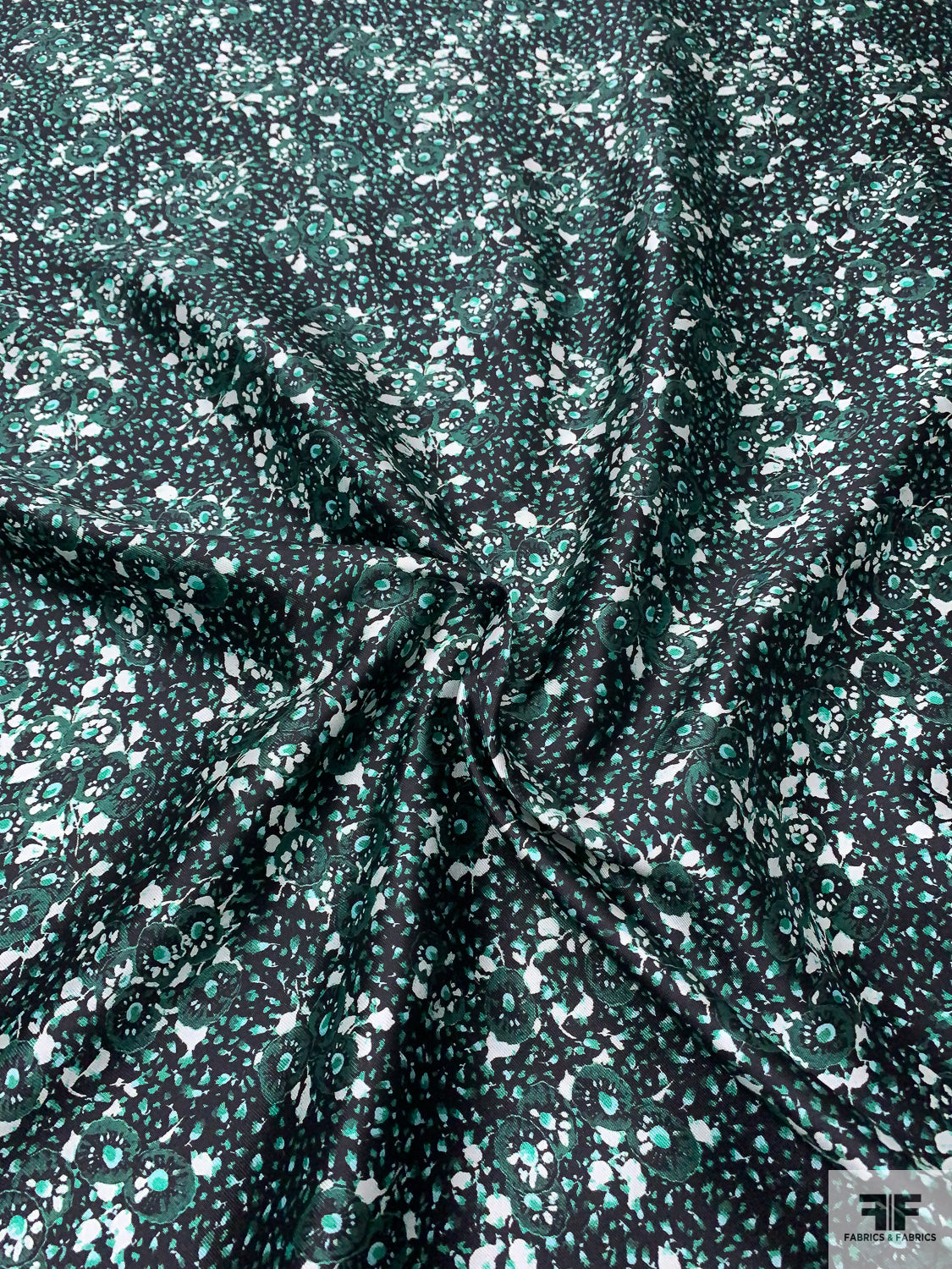 Cluster Graphic Printed Silk-Cotton Mikado - Emerald Green / Black / White