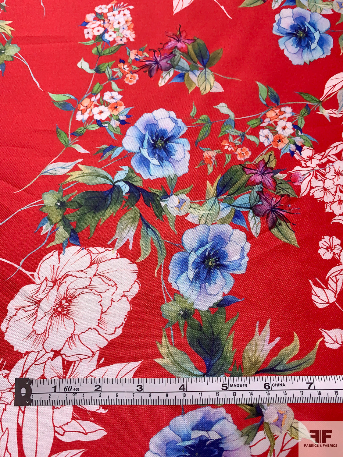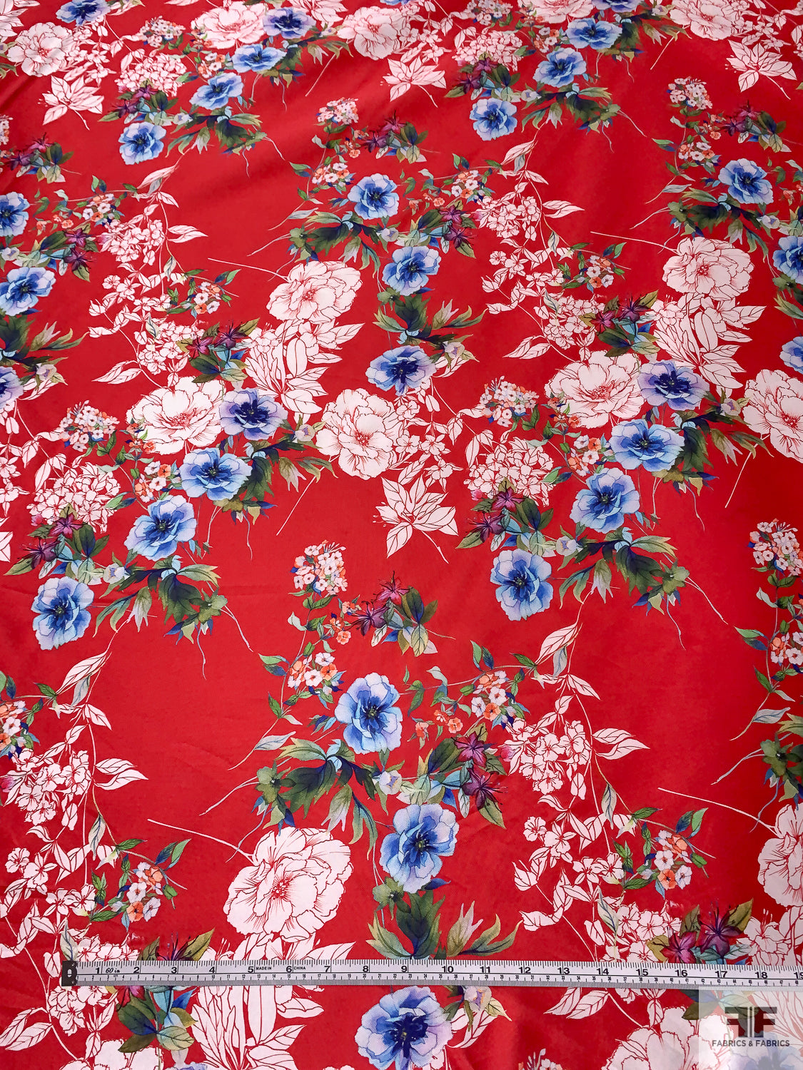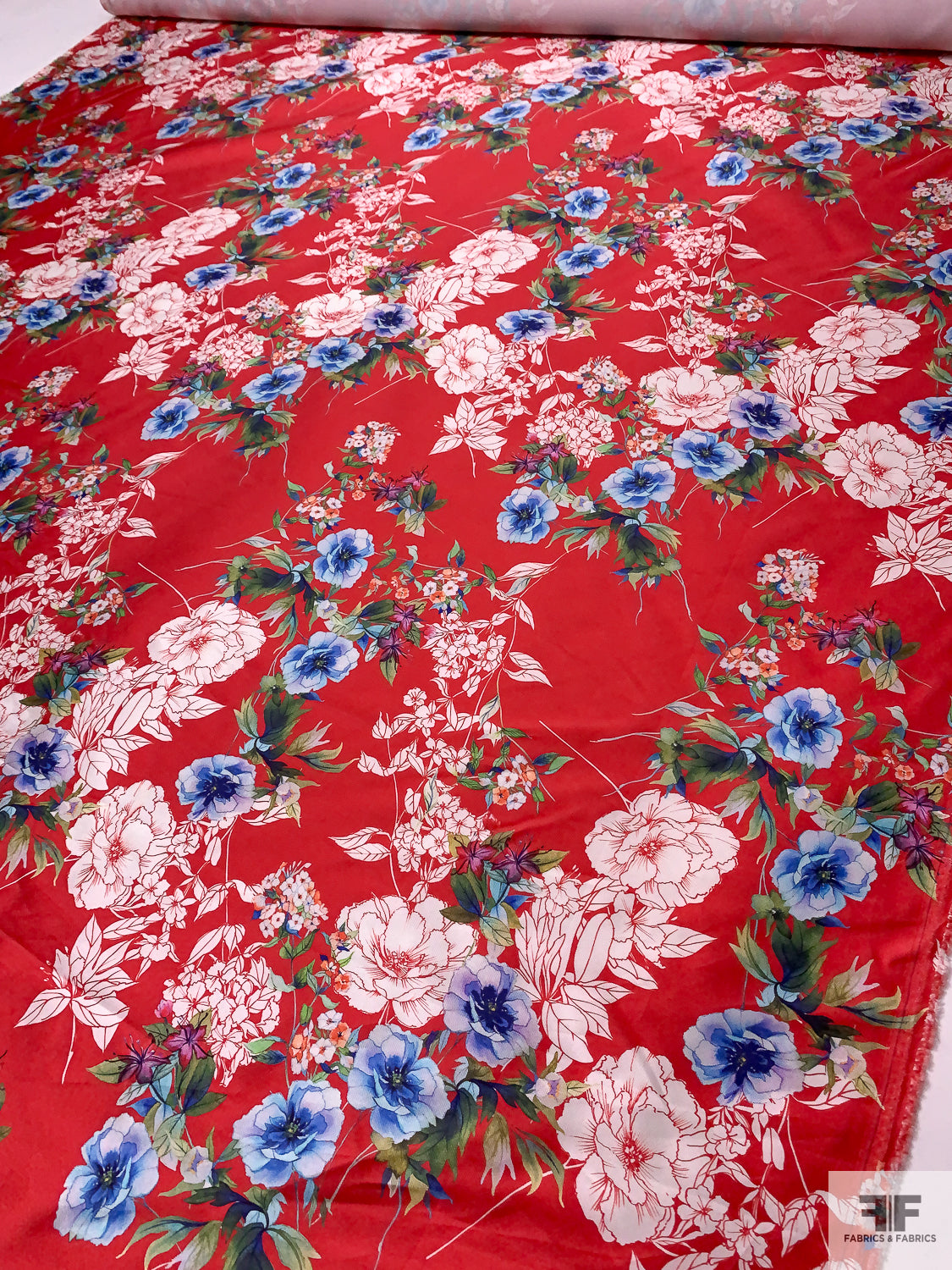 Floral Printed Silk-Cotton Mikado - Red / White / Blues / Greens