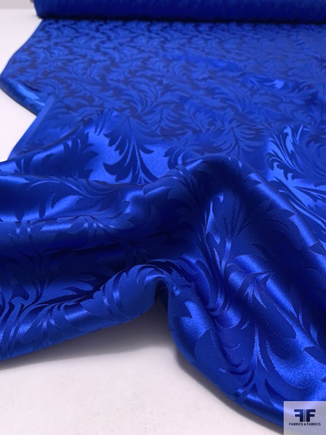 Leaf Jacquard Silk Charmeuse - Royal Blue
