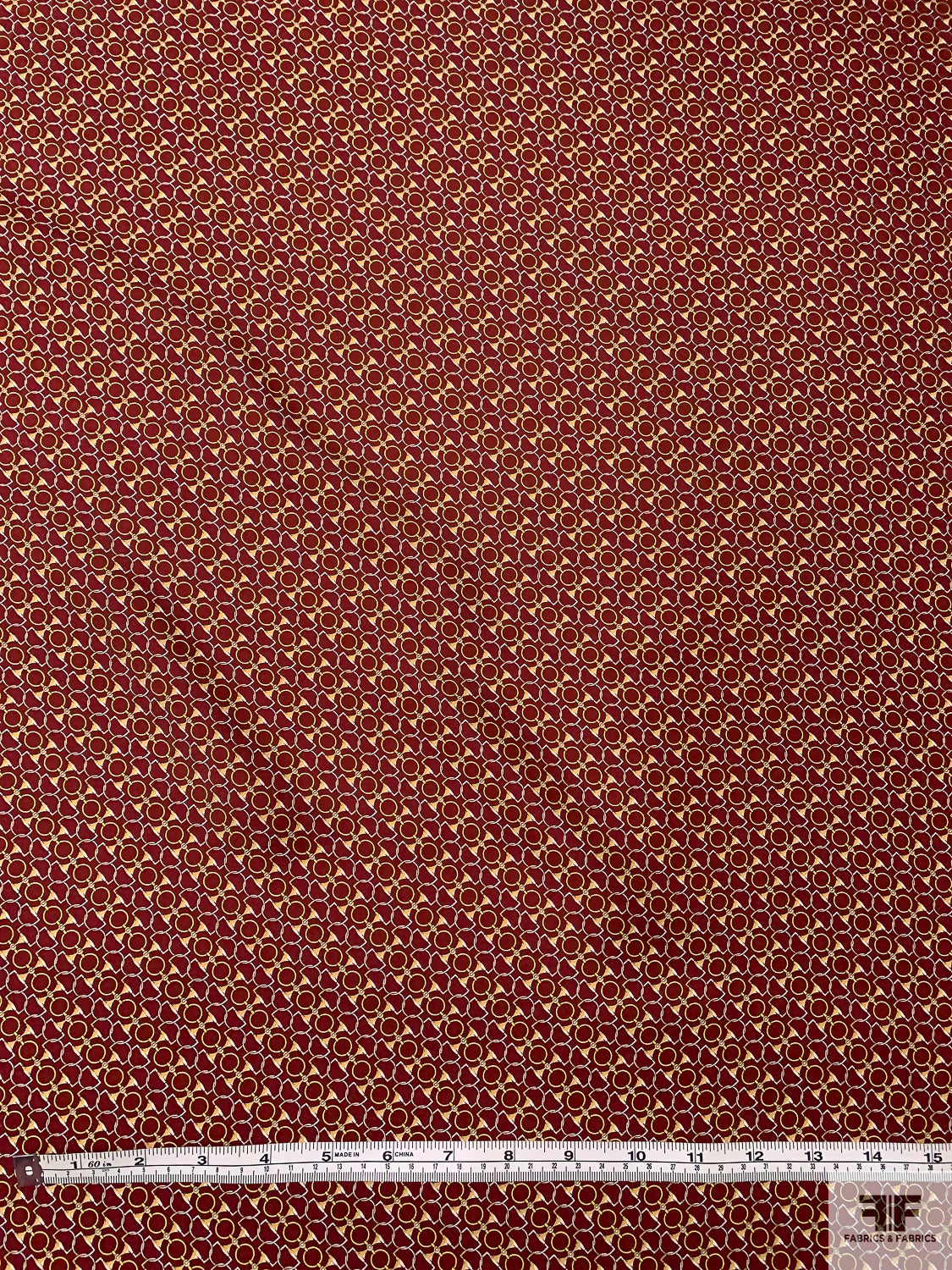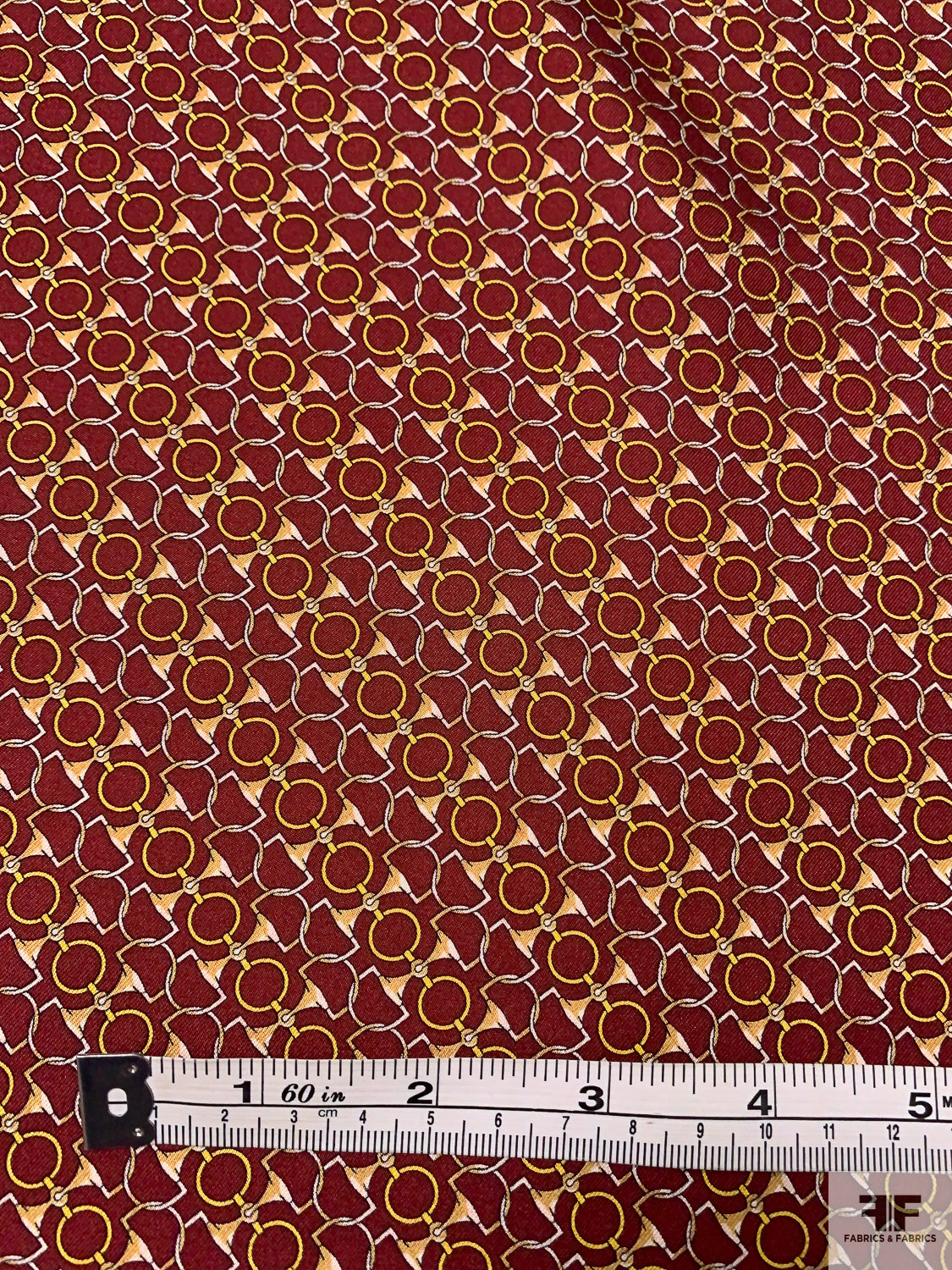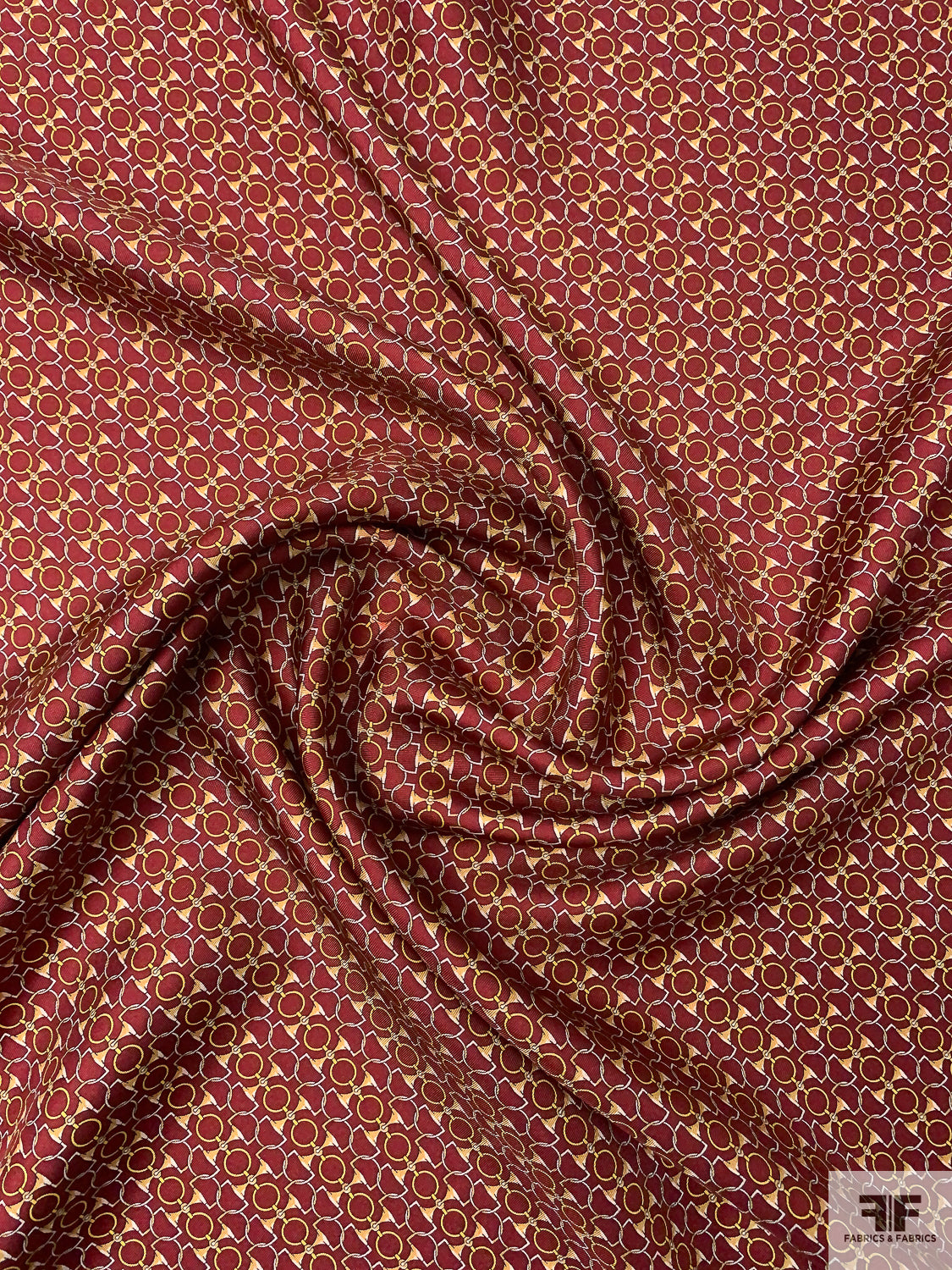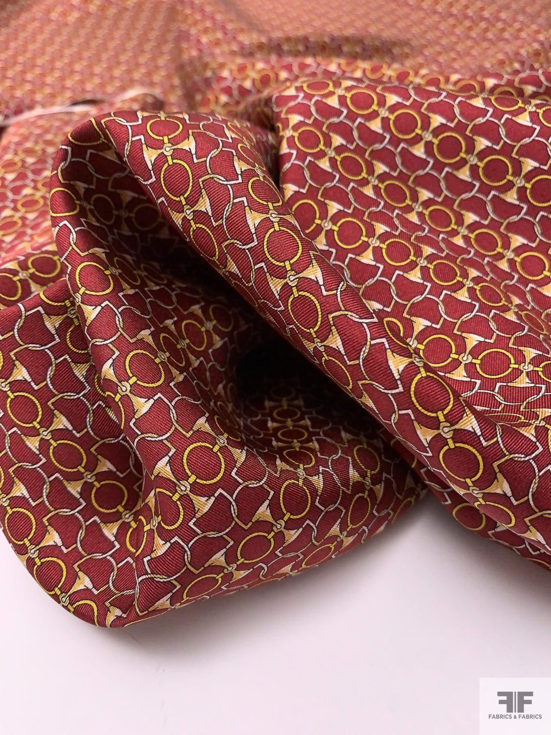 Equestrian Tack Printed Fine Silk Twill Panel - Red / Yellow / Tan / White