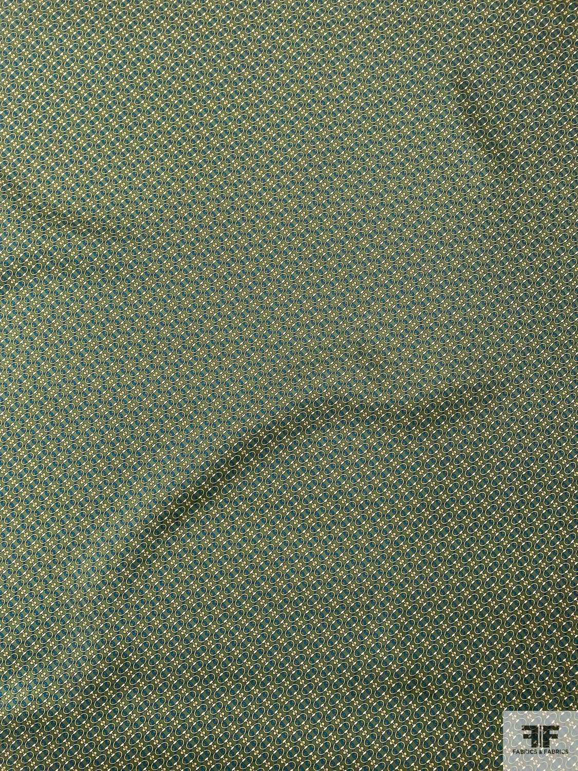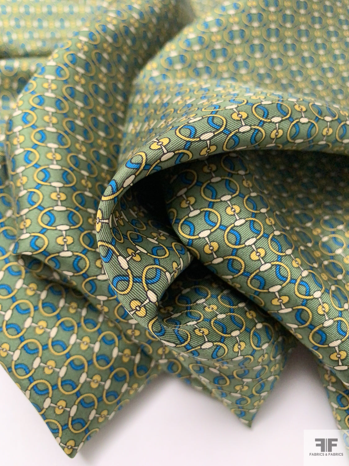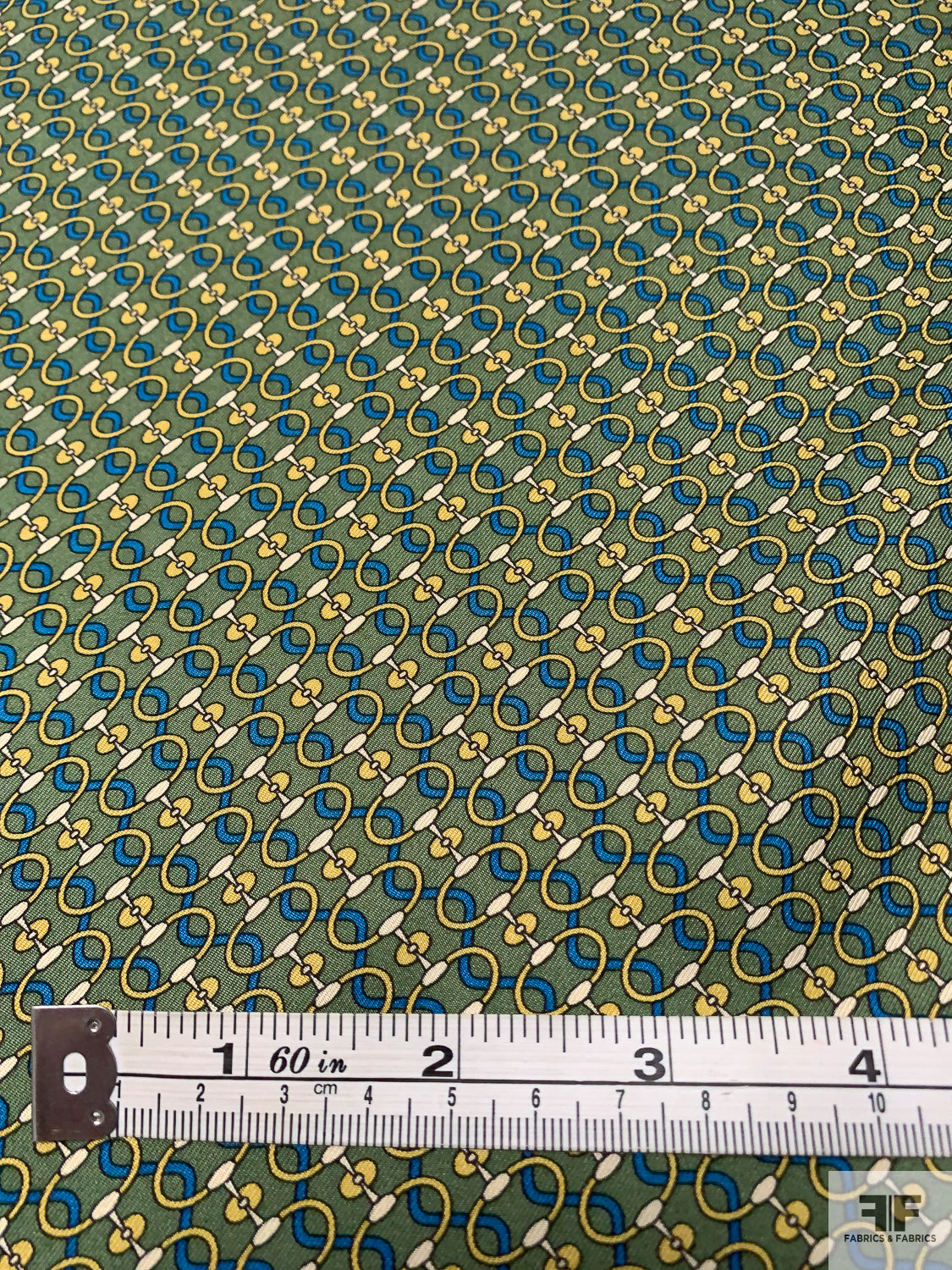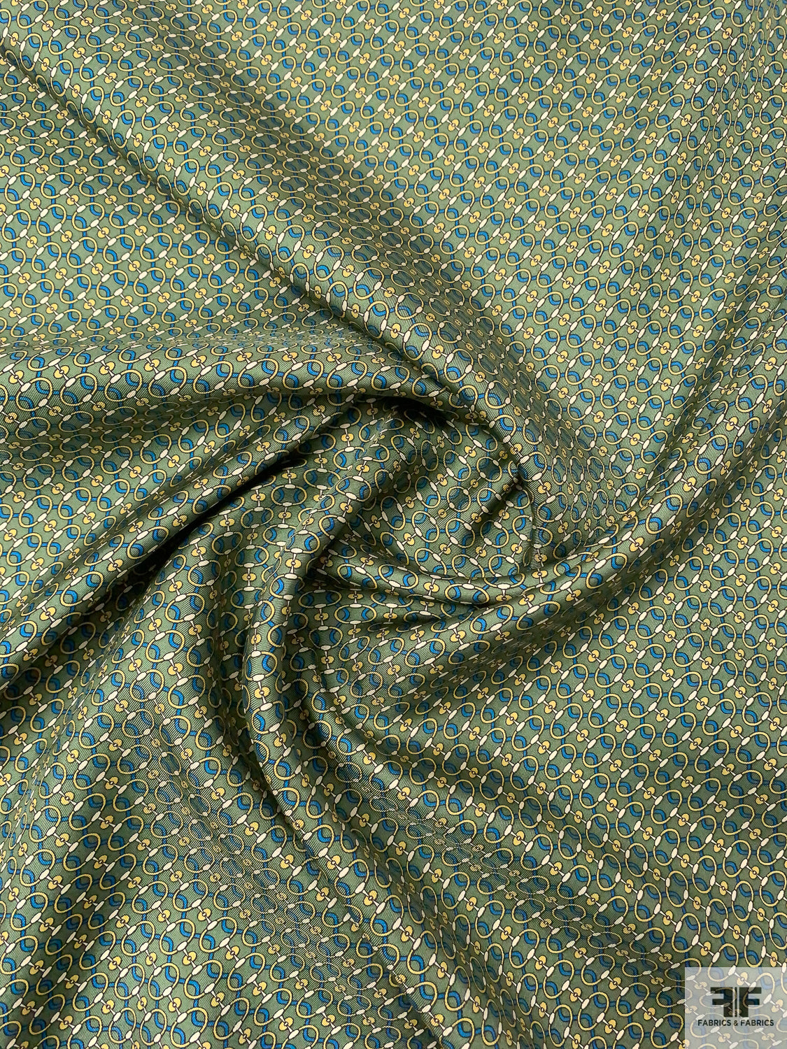 Equestrian Tack Printed Fine Silk Twill Pre-Cut Panel - Pistachio Green / Yellow / Blue