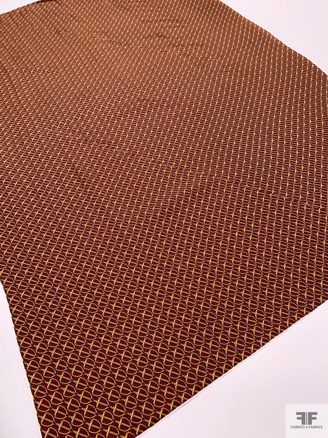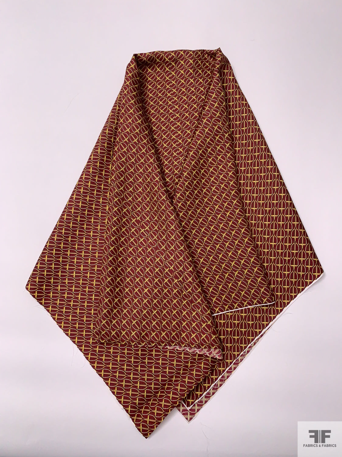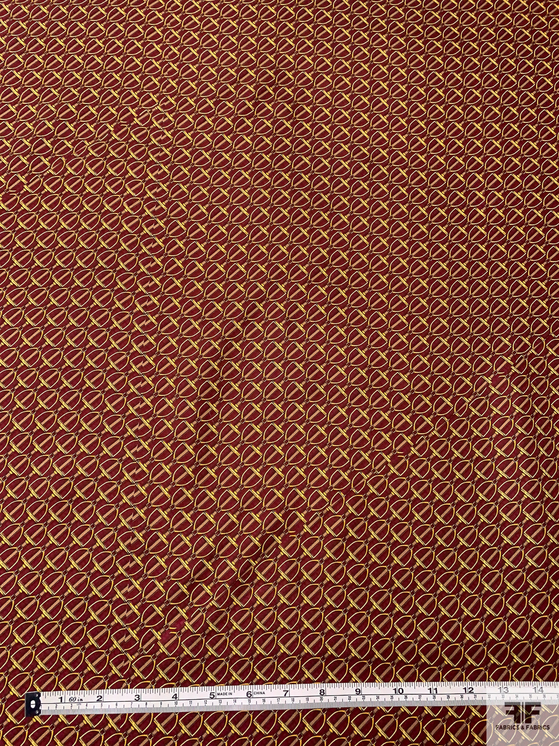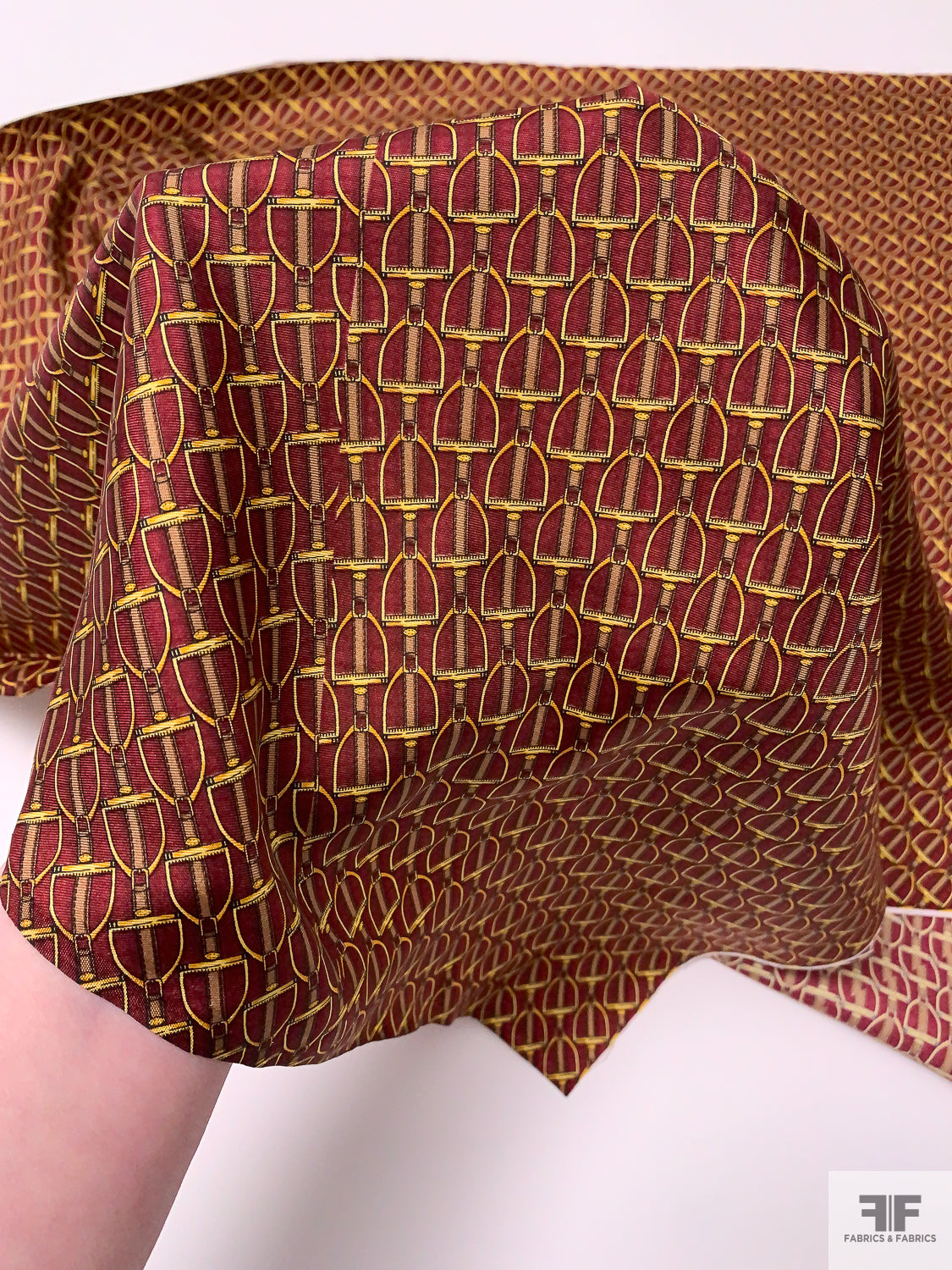 Equestrian Tack Printed Fine Silk Twill Pre-Cut Panel - Red / Yellow-Gold / Tan
