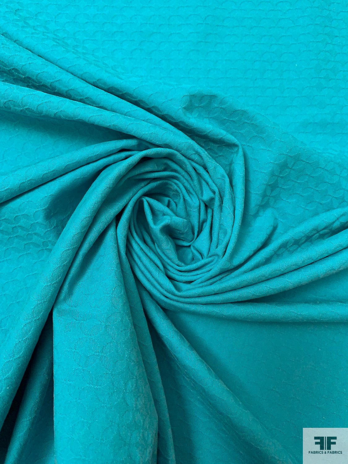 Italian Circle Lattice Stretch Jacquard Cotton Twill - Turquoise