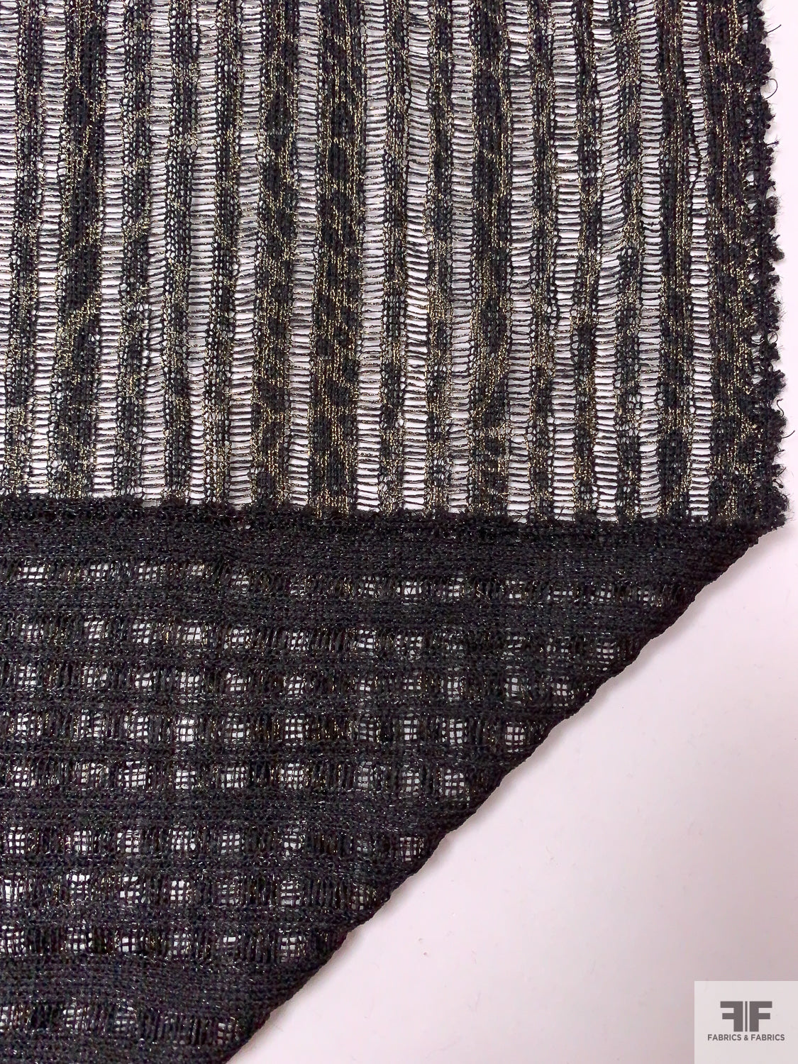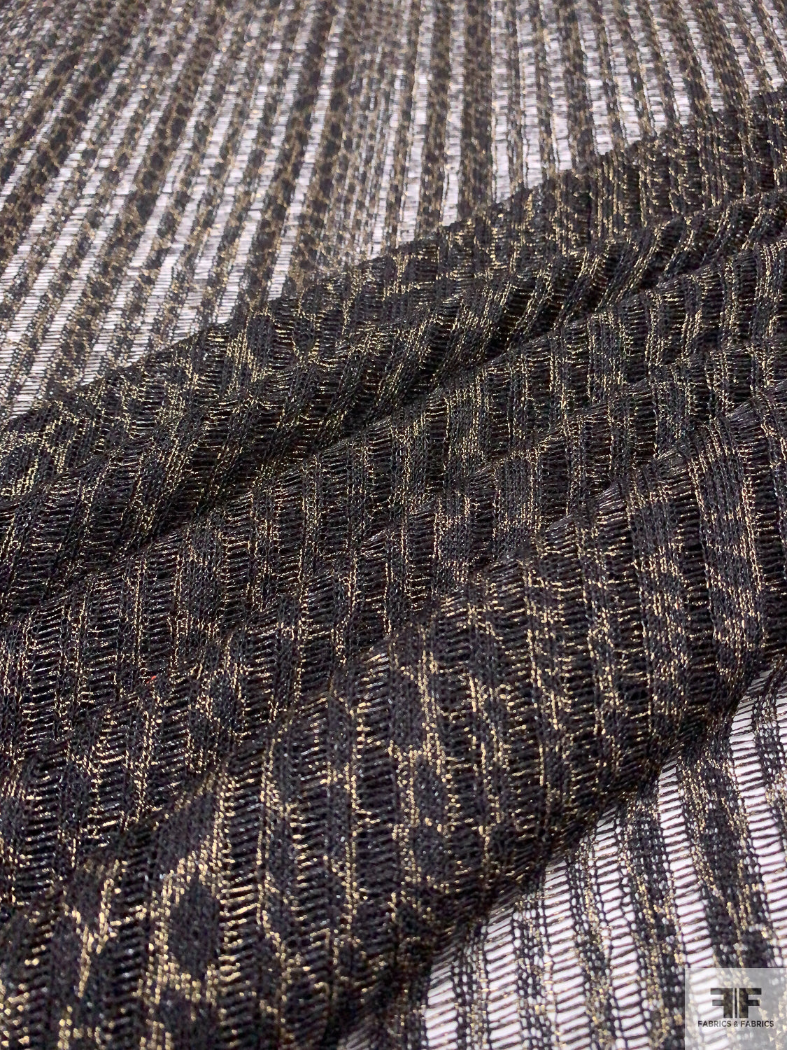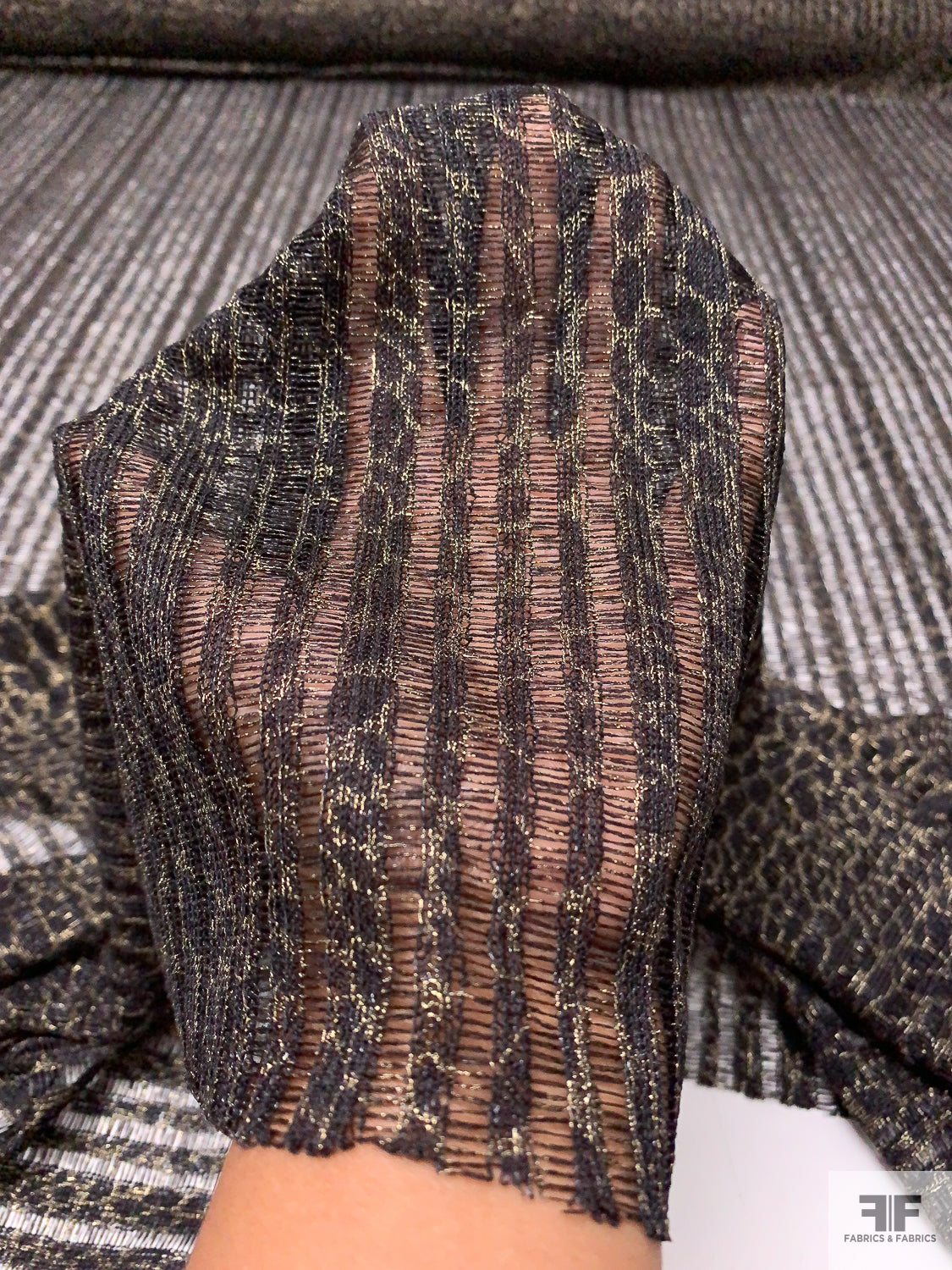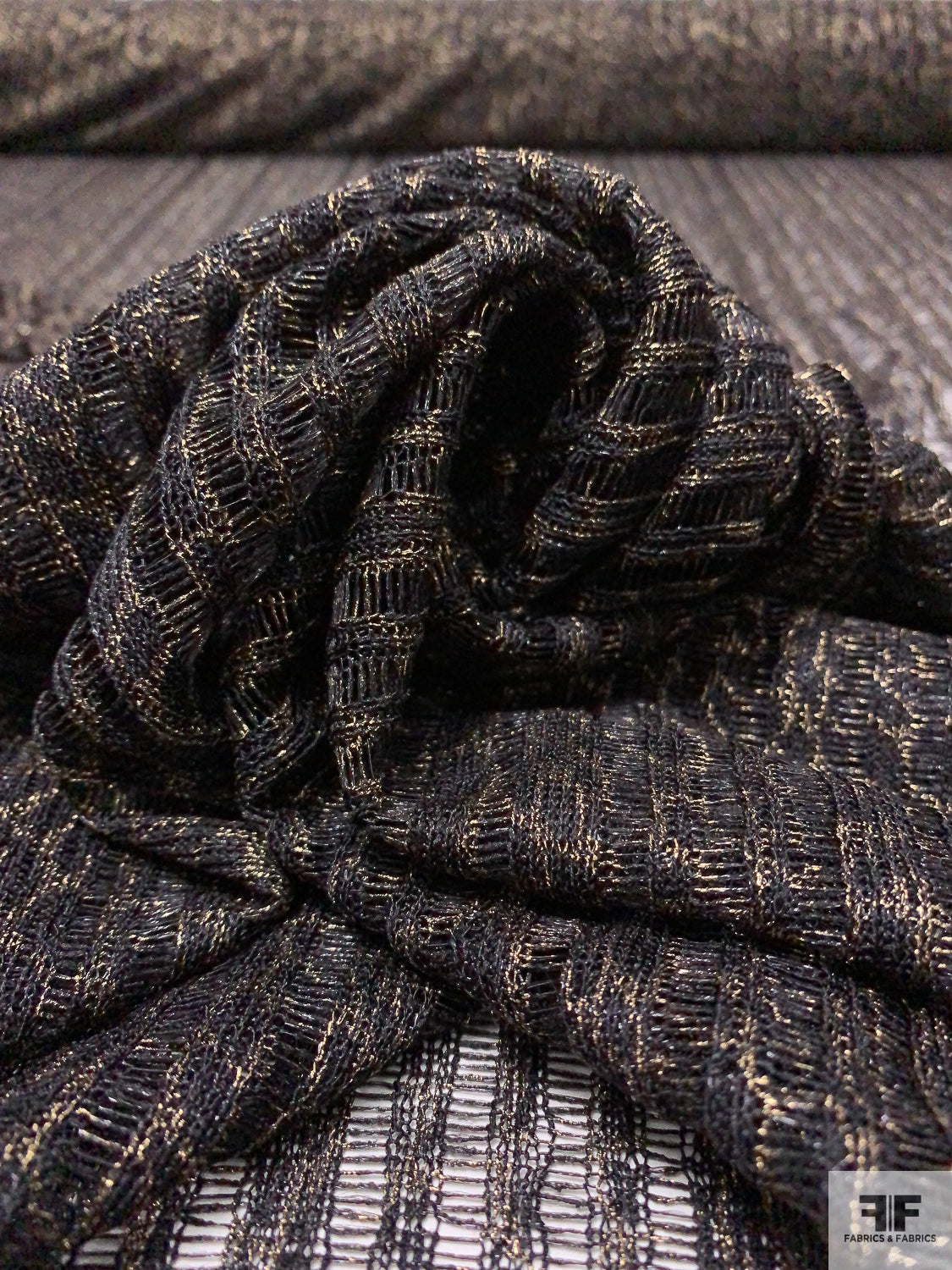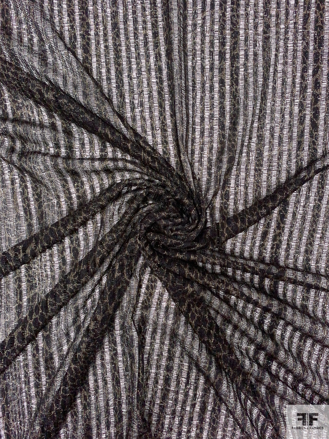 Metallic Printed Striped Ribbed Knit - Black / Gold