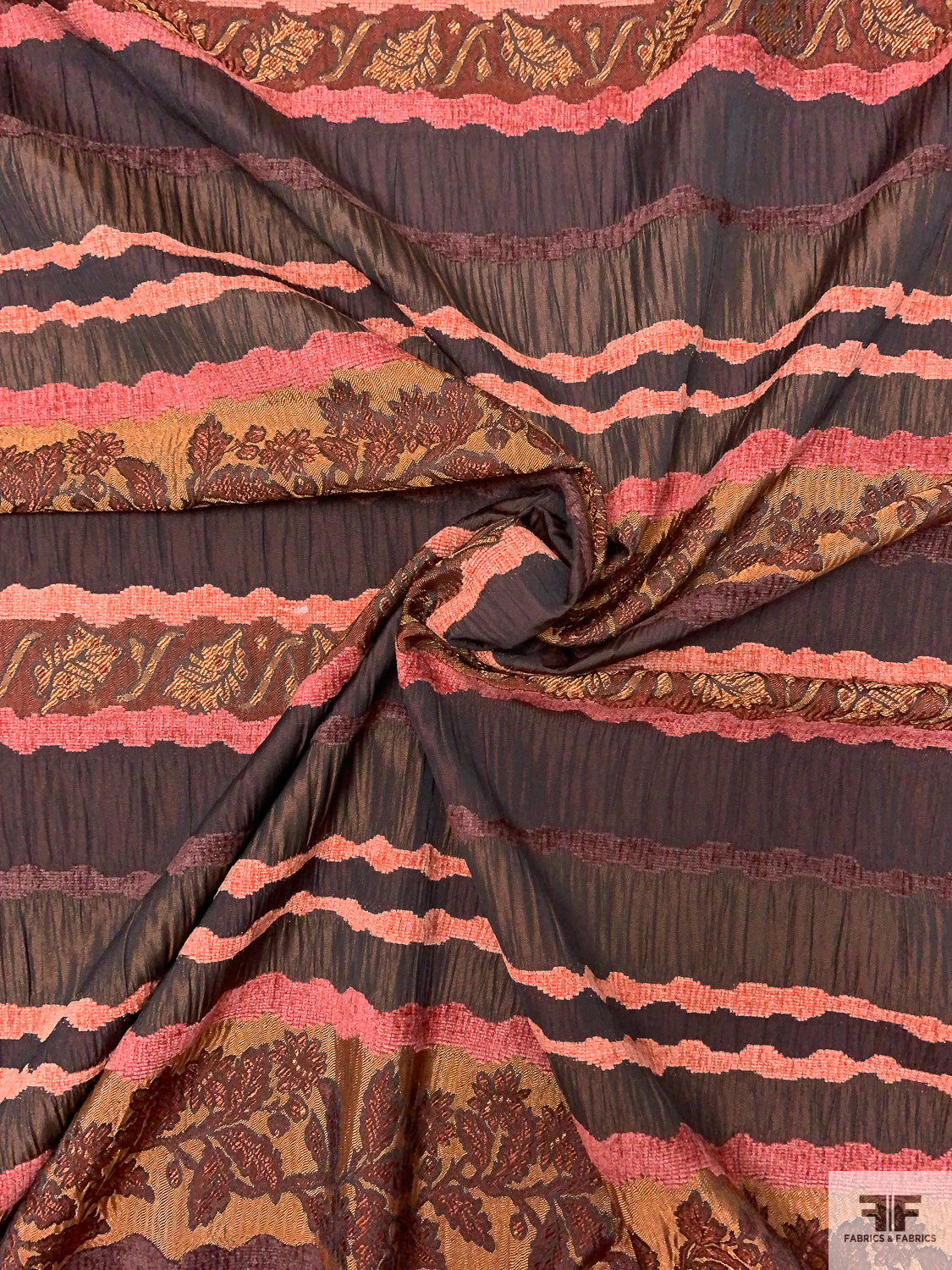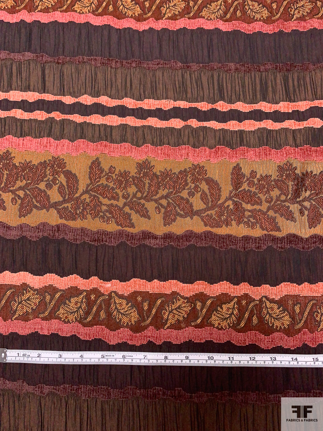 Striped and Chenille-Detailed Textured Brocade - Dusty Strawberry / Browns / Black