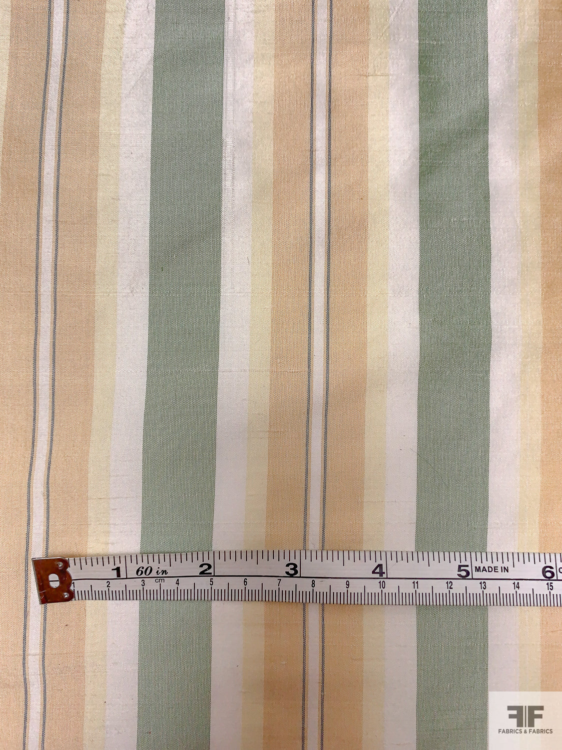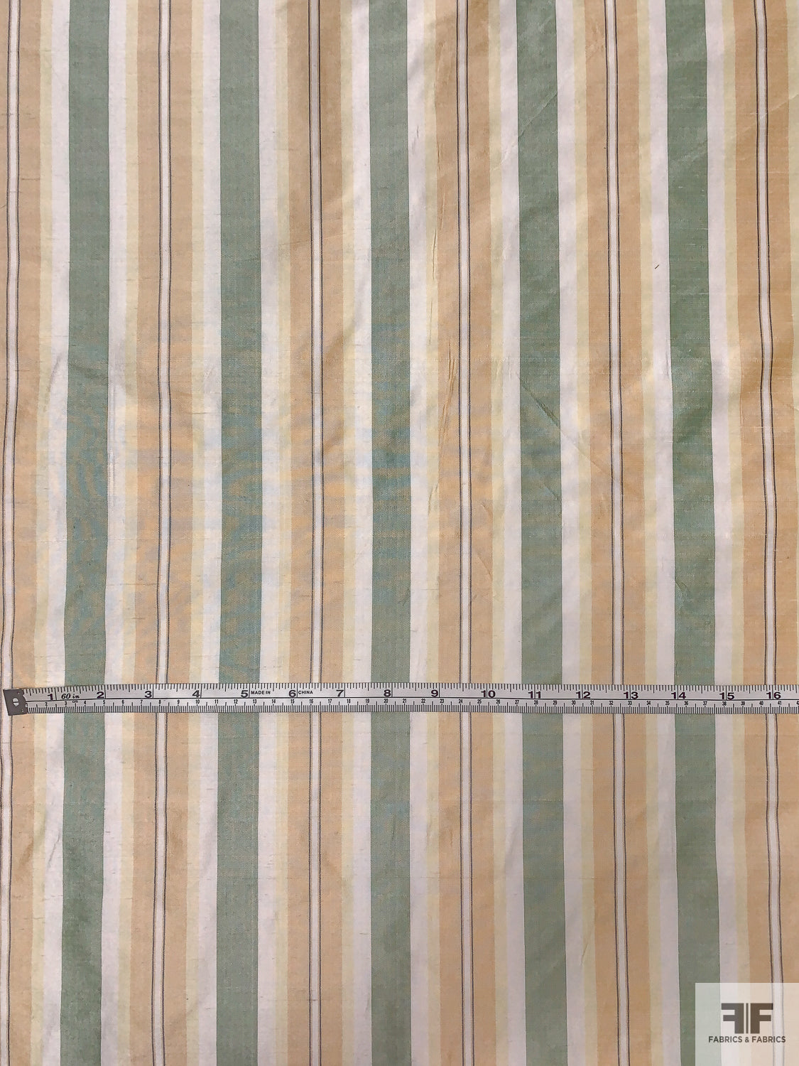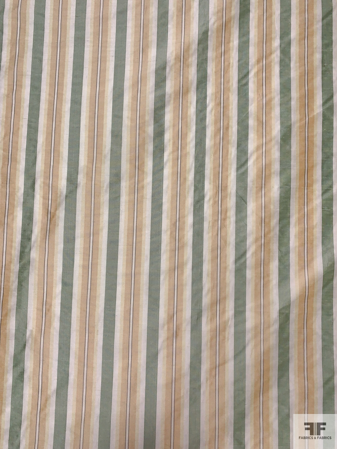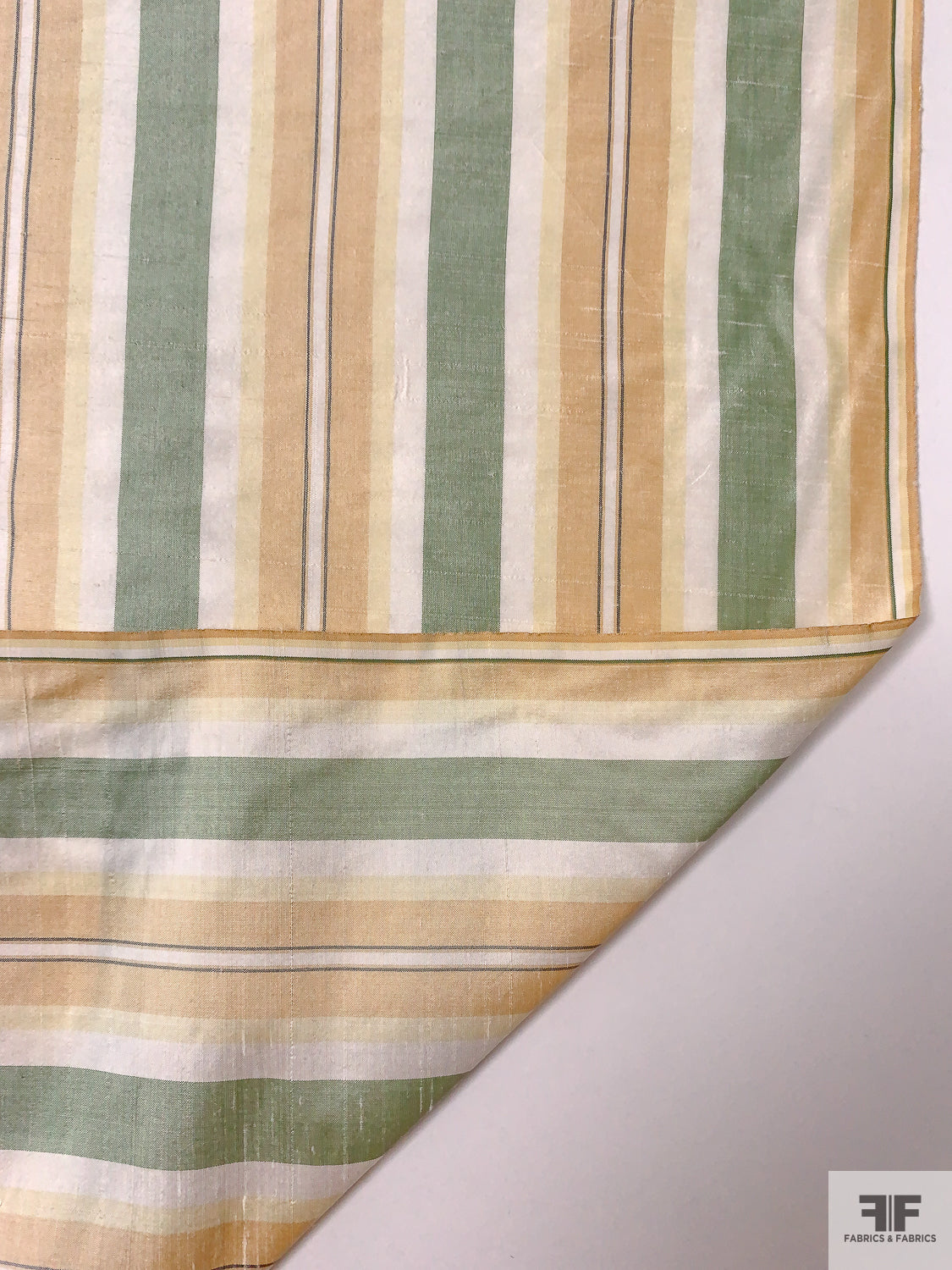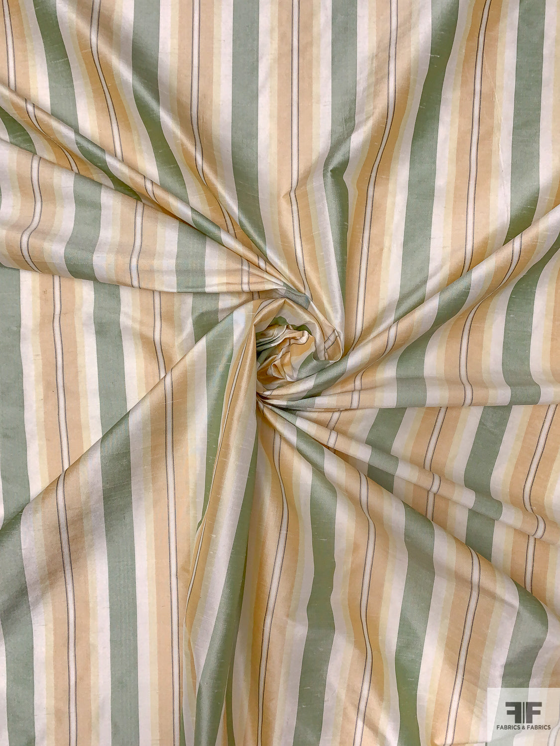 Striped Yarn-Dyed Silk Shantung - Sage Green / Peach / Pale Yellow / White